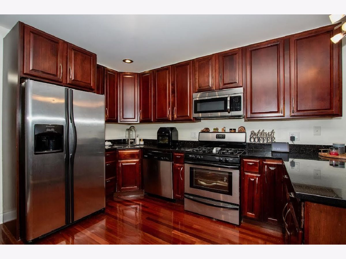 Must see, well maintained 3 bedroom 2.5 bath duplex condo on quiet, tree lined street. Newer construction includes granite countertops, 42" cabinets, SS appliances. Brazilian cherry hardwood floors throughout. In-unit laundry. Gas/wood fireplace. Tandem parking spaces in rear of building. Large balcony off the spacious master suite. Lower level with very tall ceilings includes a family room that separates two extremely large bedrooms.