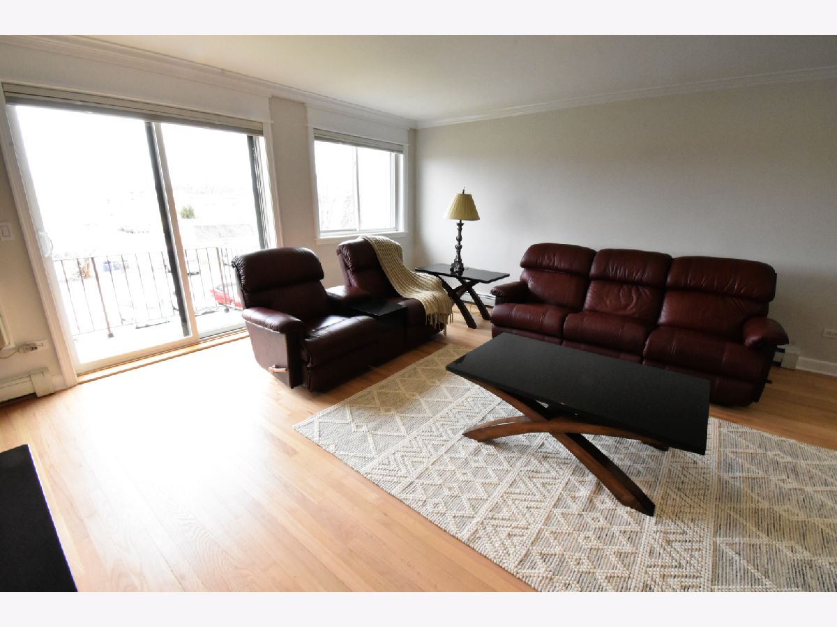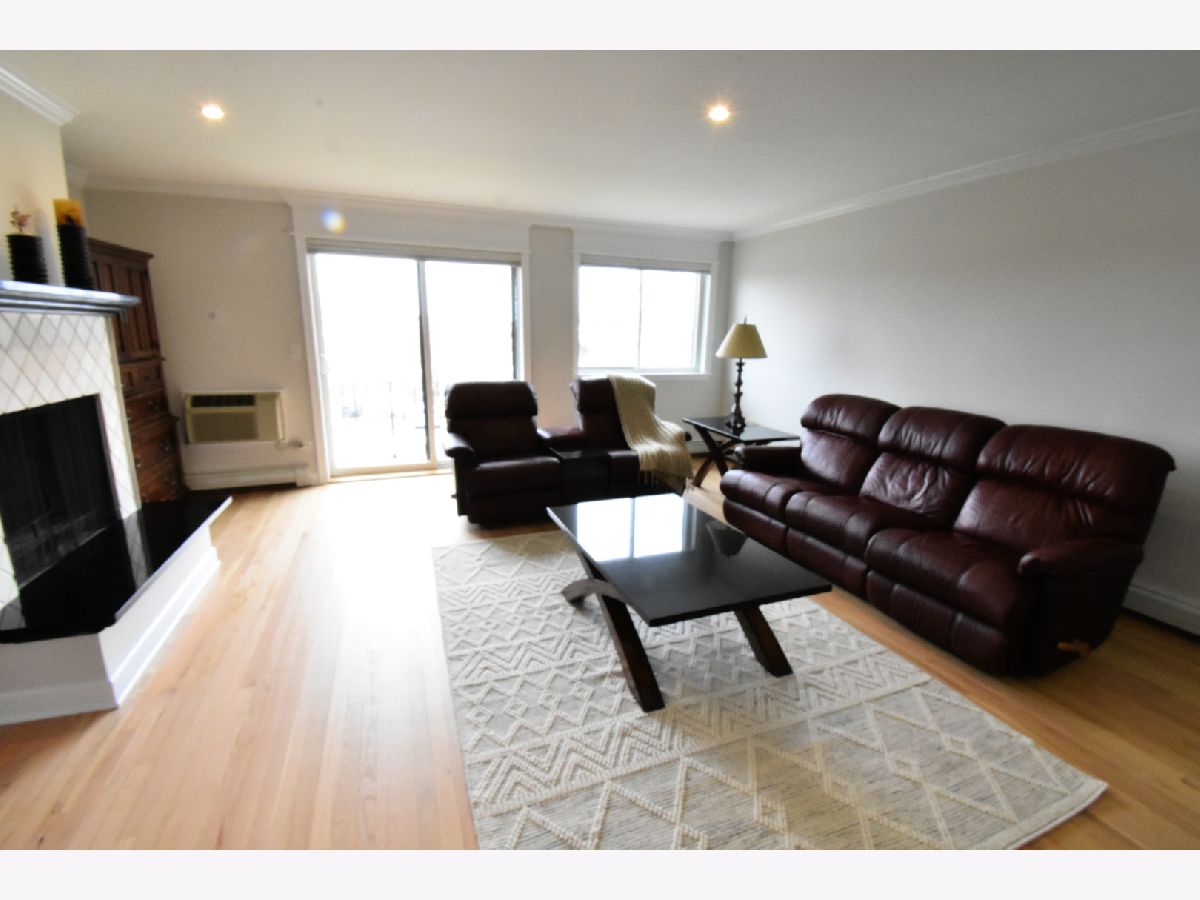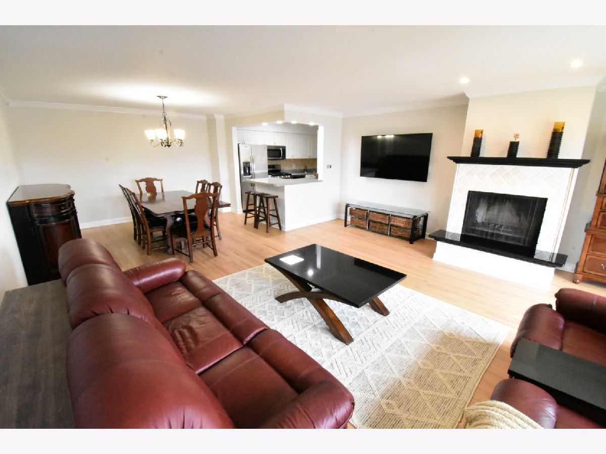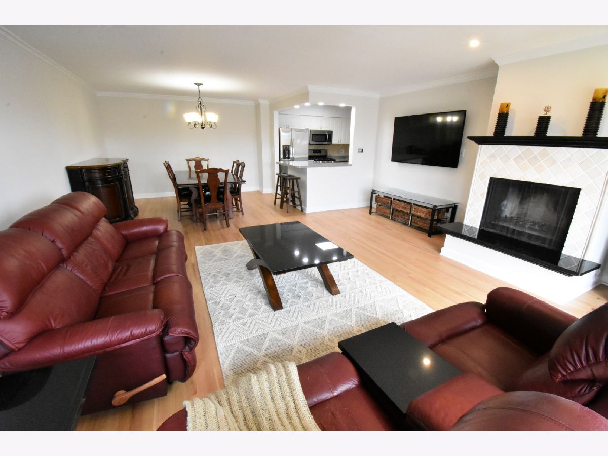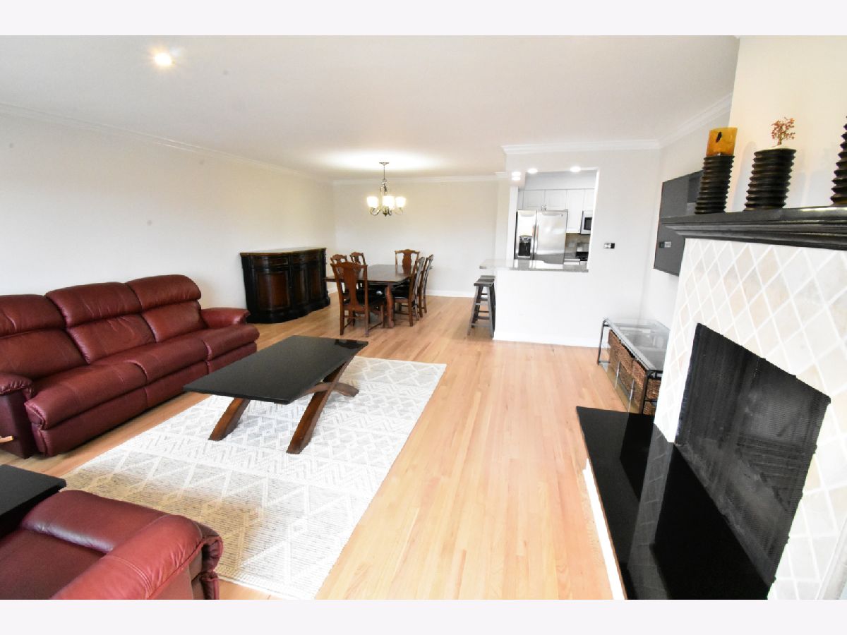 Don't miss out on this Bright and Spacious 2 Bed 2 Bath. Nice and quiet on the top floor, with a skylight, and yes there is an elevator. Ready to Move-In and start entertaining. You'll enjoy preparing dinner in this gorgeous chef's kitchen with spacious counters, large white cabinets, and SS Appliances. A large bonus pantry and double sink complete your kitchen. Did I mention the Breakfast Bar... how convenient is that. Your guests are enjoying conversation in the large living room while you're prepping the meal in the separate dining room. Maybe you'll put on a nice wood fire, depending on the season. In the summertime BBQ on your balcony. You'll love the sparkling hardwood floors. Did you notice the sparkling tiles in the updated bath? Everyone says Ready to Move-In, but this truly is, all new paint and recent hardwood floor. Yes there is an elevator and lots of parking spaces for you and guests. In a few weeks you'll enjoy the outdoor pool. Walk to grocery store, and too many restaurants to mention, banks and more. Great highway access and a short hop to O'Hare.