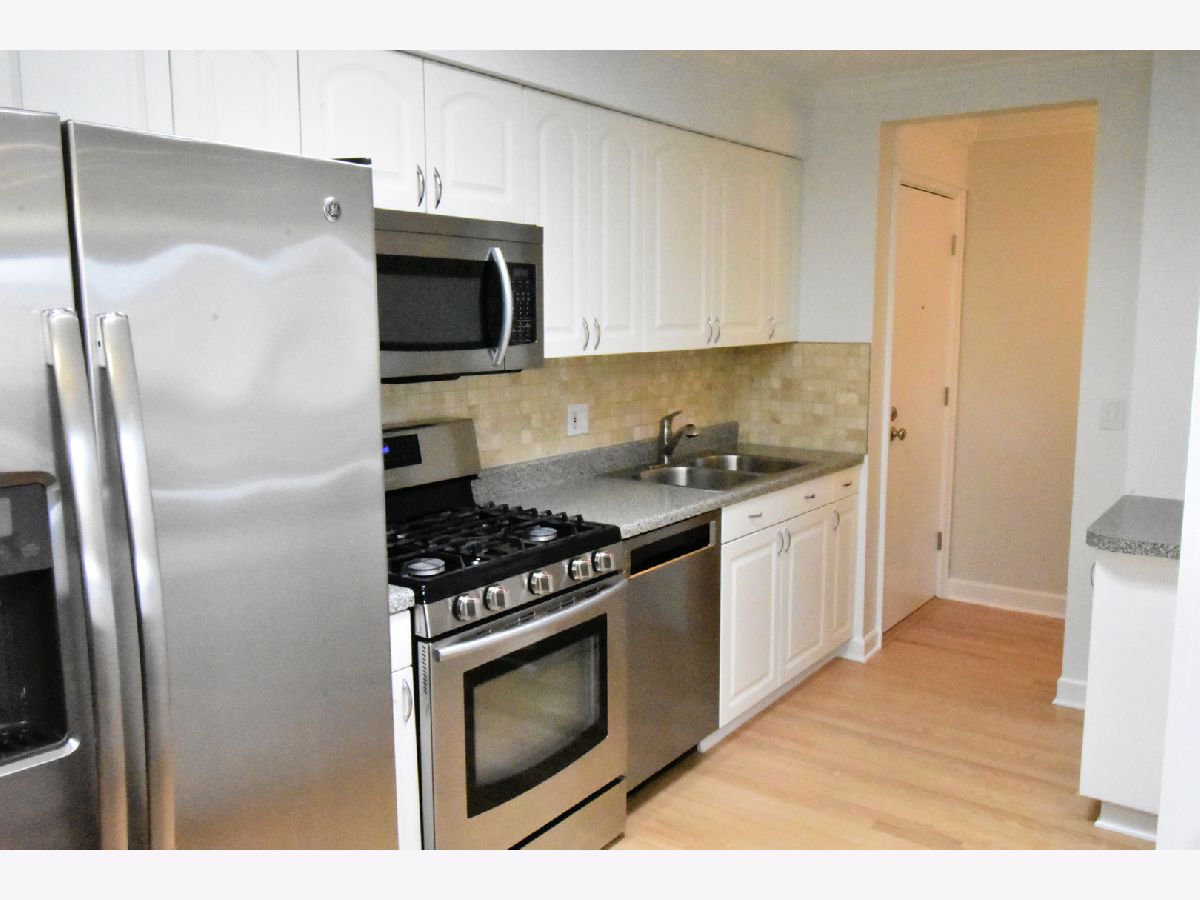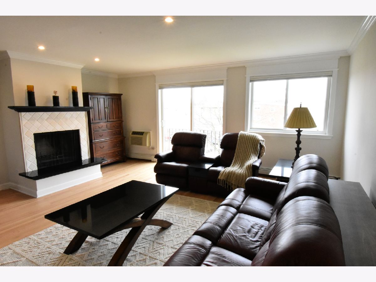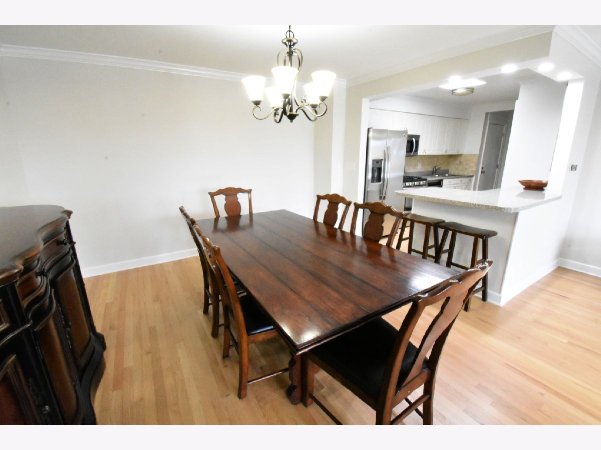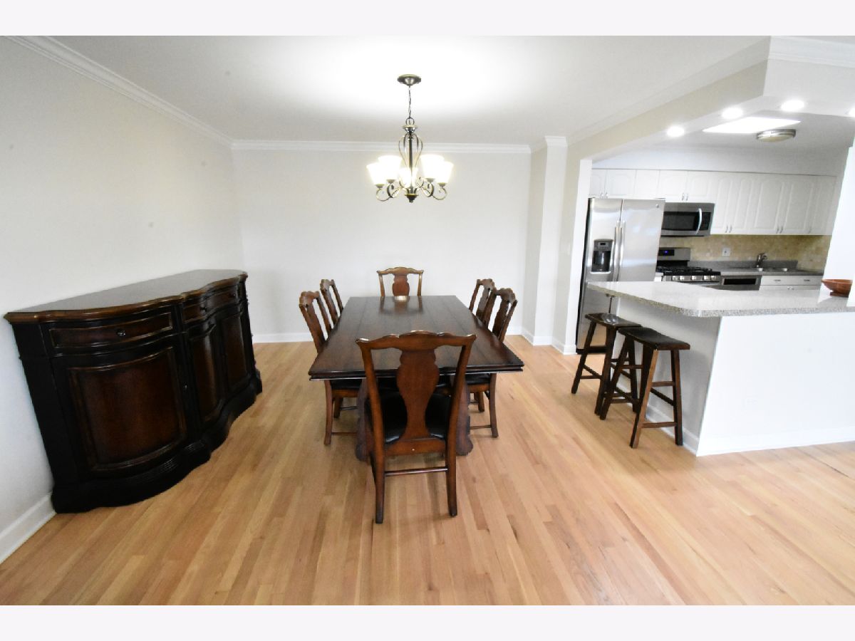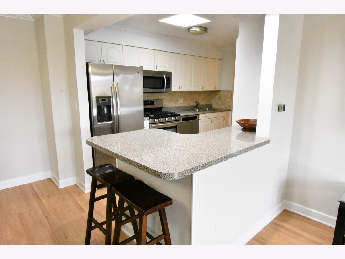 Don't miss out on this Bright and Spacious 2 Bed 2 Bath. Nice and quiet on the top floor, with a skylight, and yes there is an elevator. Ready to Move-In and start entertaining. You'll enjoy preparing dinner in this gorgeous chef's kitchen with spacious counters, large white cabinets, and SS Appliances. A large bonus pantry and double sink complete your kitchen. Did I mention the Breakfast Bar... how convenient is that. Your guests are enjoying conversation in the large living room while you're prepping the meal in the separate dining room. Maybe you'll put on a nice wood fire, depending on the season. In the summertime BBQ on your balcony. You'll love the sparkling hardwood floors. Did you notice the sparkling tiles in the updated bath? Everyone says Ready to Move-In, but this truly is, all new paint and recent hardwood floor. Yes there is an elevator and lots of parking spaces for you and guests. In a few weeks you'll enjoy the outdoor pool. Walk to grocery store, and too many restaurants to mention, banks and more. Great highway access and a short hop to O'Hare.