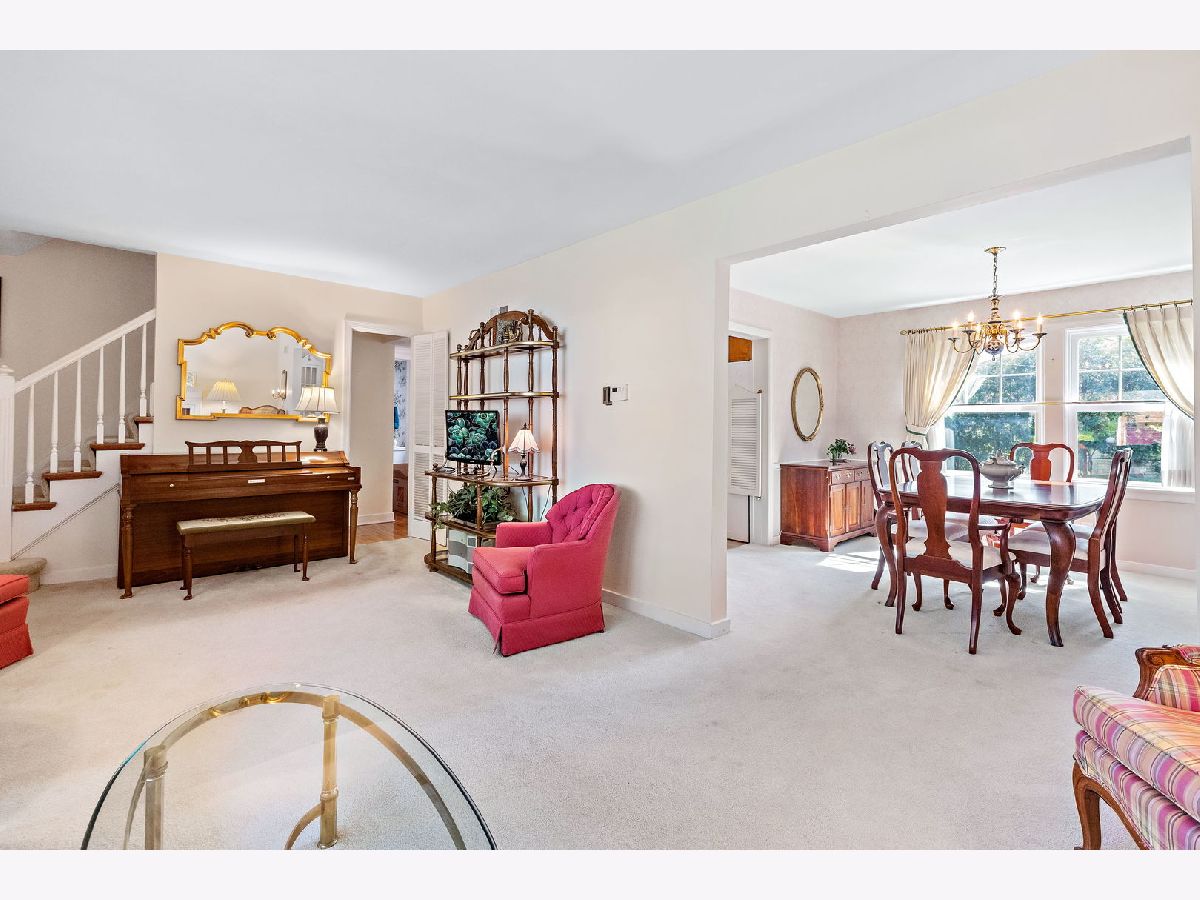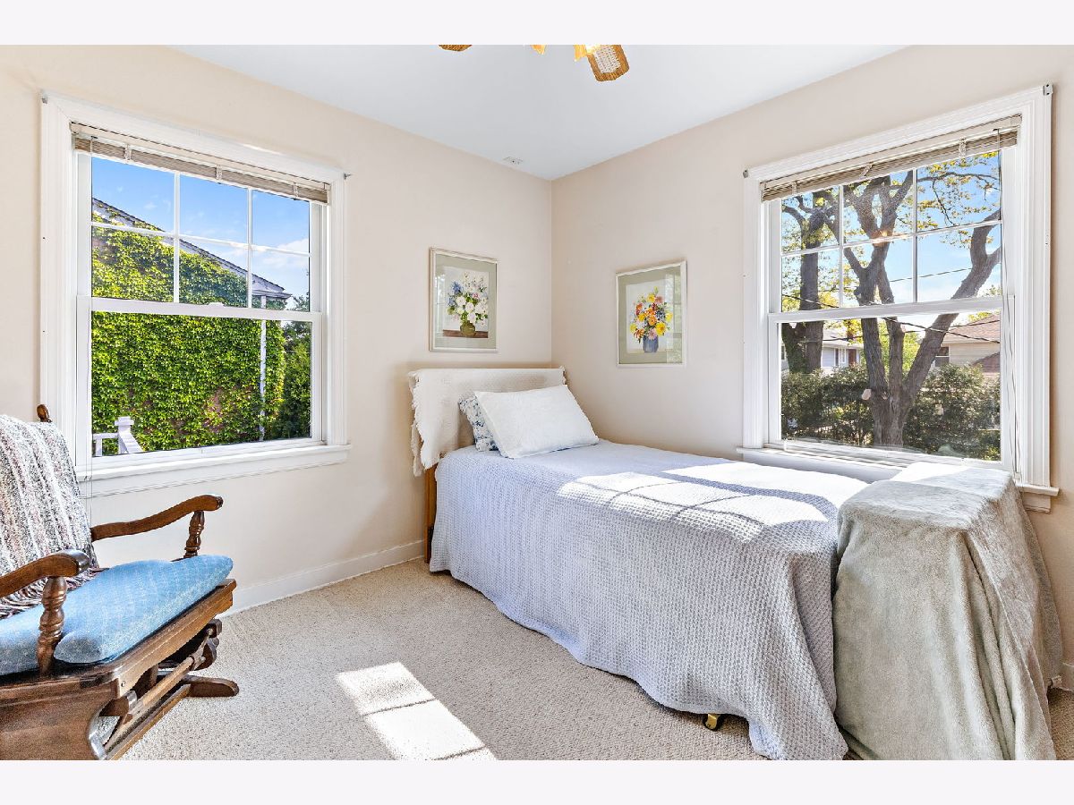 Situated on a mature, tree-lined street in the coveted Harding Woods. This charming Georgian home with stone and brick accents boasts a traditional floor plan, light-filled rooms and replacement windows. The spacious Living Room with huge a picture window and wood-burning fireplace with wooden mantle flows to Dining Room overlooking the beautiful back yard. Dining Room features 2 built-in corner hutches. Kitchen, with east view has granite countertops and a cozy table space perfect for morning coffee. Pantry closet and door directly to Backyard. 1st floor Powder Room and access to Garage complete this floor. Second floor has 3 Bedrooms and full Bathroom. Primary Bedroom is very large (15x13). 2nd Bedroom has built-in desk and shelves. 3rd Bedroom has built-in shelves and storage. Unfinished basement designed so part of it could be finished as a Recreation Room and is currently great storage. Brick paver driveway leads to 1 car attached garage with room for your car plus storage. Backyard beautifully landscaped with perennial flowers and circular paver patio perfect for entertaining, family time, or that quiet cup of coffee! Great walk-to-town location and easy access to expressways. Walk to both Ogden Avenue School and Park Junior High without crossing a major street. This is a wonderful opportunity to make your own mark on this lovingly maintained home!
