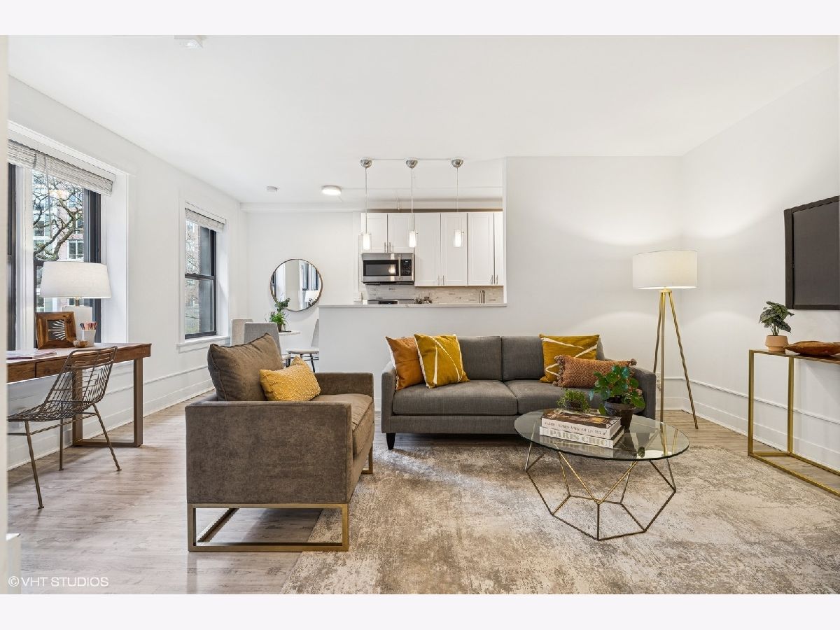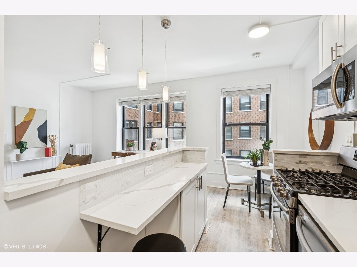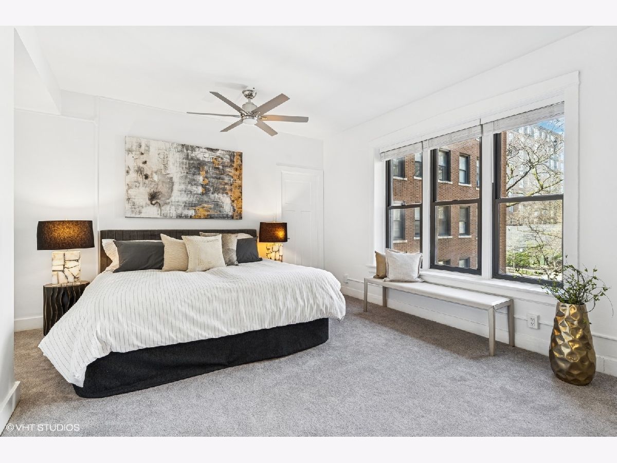 *Multiple offers received | Highest and best due Saturday, April 19th at 7pm | No escalation clauses.* Located in a 1920s courtyard building on Sheridan Road in Lakeview, this charming 2-bedroom, 2-bathroom (with parking) is sure to check all of your boxes. #302 is a sprawling combined unit with a primary suite, spacious second bedroom, open-concept kitchen & living, & an entire in-unit laundry room with a full-size washer & dryer. Windows in every room offer picturesque courtyard views & bring in lots of light all day long. As you make your way through the home, you'll first visit the living space. With enough room for a sofa, coffee table, chairs, & separate desk space, this room makes for a delightful entertaining space. The kitchen was renovated to allow for open-concept living. Discover quartz countertops, crisp white cabinetry, & stainless appliances, as well as an adjacent dining nook. Next, visit the primary bedroom on the other end of the home. This room's XL footprint can accommodate a king bed, nightstands, bedroom furniture, & so much more. Plus, it offers an en-suite bathroom & en-suite laundry room. In the second bedroom, bay windows enhance this space, & a thoughtful floorpan makes this room the perfect size. Don't miss the hall bath, freshly updated for the next homeowner. #302 has been completely reimagined since purchase with new lighting, updated luxury vinyl flooring, laundry room renovation, kitchen renovation, fresh paint, & more. This sought-after mid-rise elevator building is a short walk away from the lake, transportation, bars & restaurants, & Wrigley Field - the friendly confines! Last of all, there is one deeded outdoor parking spot included in the price.