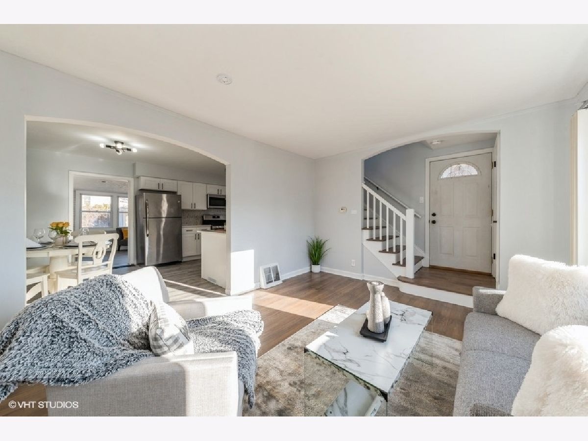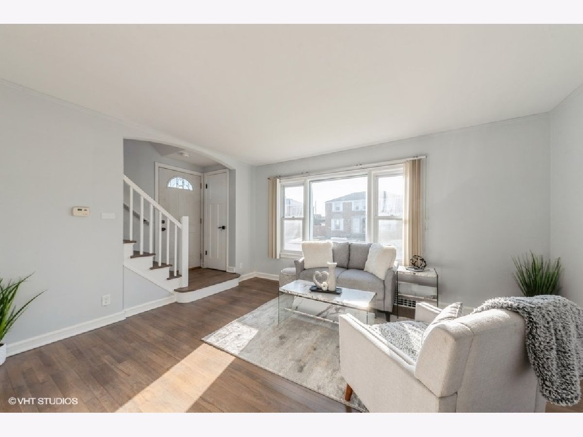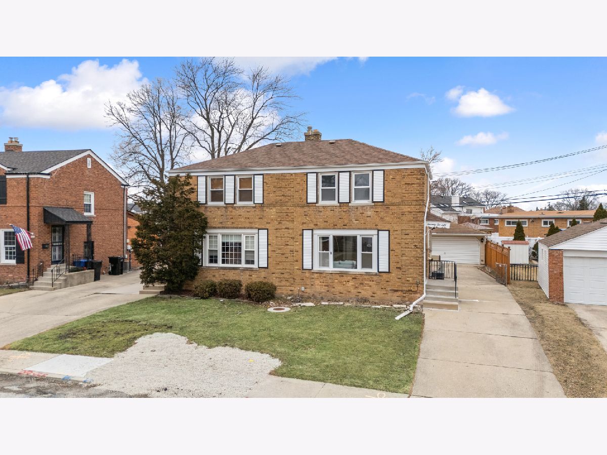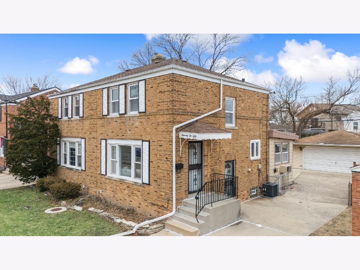 Beautifully updated 3-bedroom, 2-bathroom 2 story brick duplex in sought-after Oriole Park. The kitchen features brand-new cabinets, quartz countertops, a stylish backsplash, and stainless steel appliances, all open to the dining area that flows into the living room with large windows and abundant natural light. Three bedrooms, including one on the main level, offer flexible living options. Both bathrooms are fully updated-one with a walk-in shower and one with a tub. Hardwood floors have been refinished in the living room and upper level, with luxury vinyl flooring in the kitchen, dining area, and third bedroom. The finished basement adds extra living space. Brand new doors. Updated LED Lights. Recent updates include a new roof (2022), furnace (2019), A/C (2019), and water heater (2021). Enjoy the spacious, fully fenced backyard and fantastic 2-car garage. No HOA fees and low taxes. Conveniently located near Oriole Park School, parks, library, shopping, blue line, I-90, and bus lines. Freshly painted and move-in ready!
