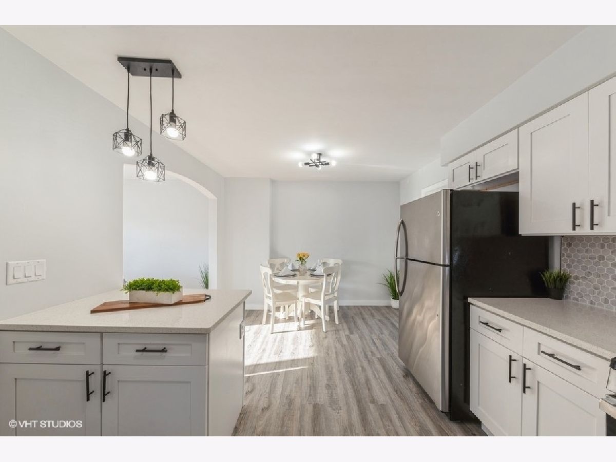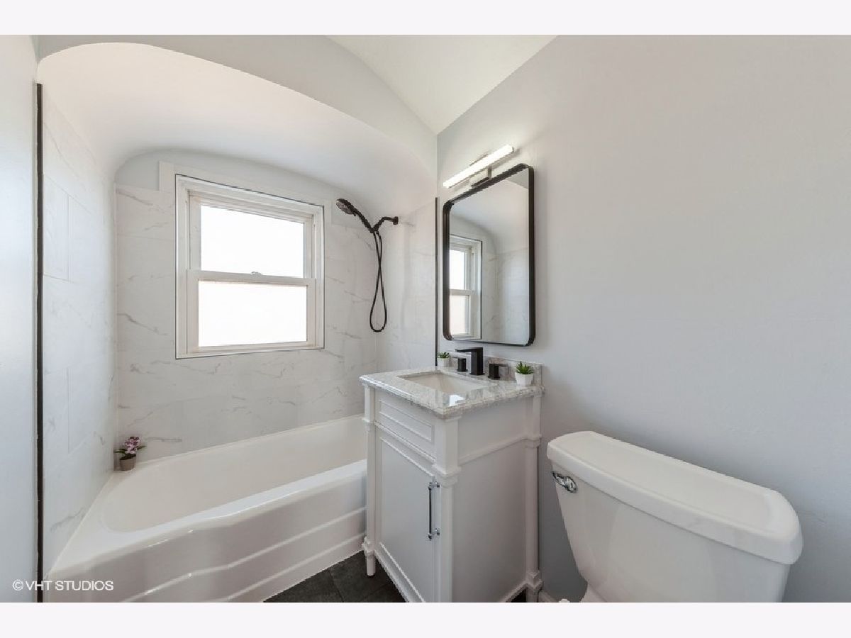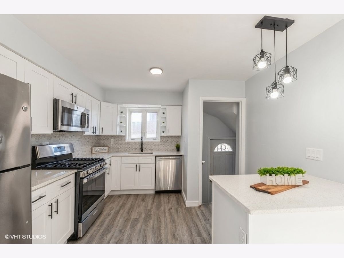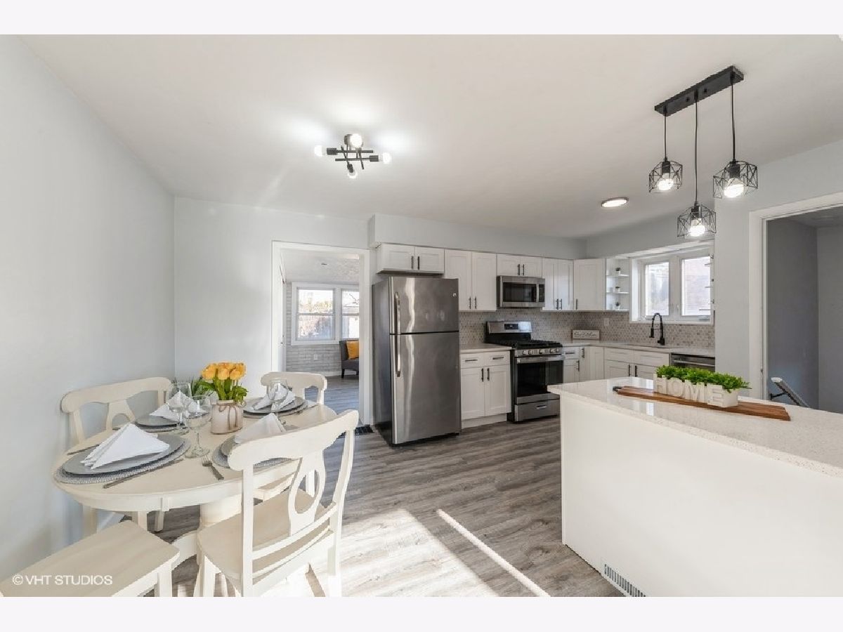 Beautifully updated 3-bedroom, 2-bathroom 2 story brick duplex in sought-after Oriole Park. The kitchen features brand-new cabinets, quartz countertops, a stylish backsplash, and stainless steel appliances, all open to the dining area that flows into the living room with large windows and abundant natural light. Three bedrooms, including one on the main level, offer flexible living options. Both bathrooms are fully updated-one with a walk-in shower and one with a tub. Hardwood floors have been refinished in the living room and upper level, with luxury vinyl flooring in the kitchen, dining area, and third bedroom. The finished basement adds extra living space. Brand new doors. Updated LED Lights. Recent updates include a new roof (2022), furnace (2019), A/C (2019), and water heater (2021). Enjoy the spacious, fully fenced backyard and fantastic 2-car garage. No HOA fees and low taxes. Conveniently located near Oriole Park School, parks, library, shopping, blue line, I-90, and bus lines. Freshly painted and move-in ready!