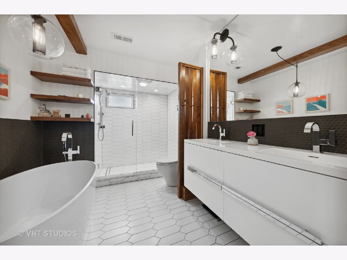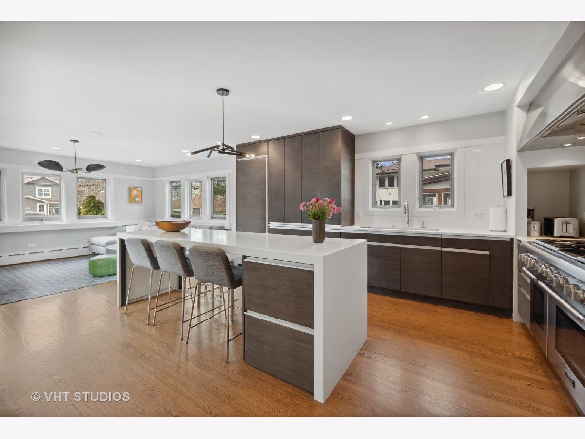 Stunning from every angle and in the perfect walk-to-everything location! 726 William is that coveted blend of architecturally historical elements mixed with the finest modernizations. Take in the herringbone pattern of the parquet floor of the office, the signature banding wood trim in the living room, solid wood custom doors with lever handles, frameless cabinetry, custom woven wood screens in the bathrooms, basketball worthy high ceiling in the basement, custom concrete tile imported from Cuba in the powder room and basement foyer, designer light fixtures, custom Pella windows with interior shades, walk-in closets in the primary bedroom and so much more. Every detail has been thoughtfully and intentionally curated. The first-floor flow is circular, leading you from the foyer to the office to the living room with built-in shelving, a wood burning fireplace and conversation areas. Then the Flos chandelier draws you into the dining room with more custom built-ins, great backyard views and easy flow into the custom kitchen. The kitchen was designed by award winning Chicago designer, Rebekah Zaveloff of Kitchen Lab, and features a Miele fridge, Thermador range with 6 gas burners and a griddle, custom made hood, Kallista custom kitchen sink from Mick De Giulio's designer series, pull out freezer drawers and a Thermador dish washer. The island has seating on both sides, making the kitchen the ultimate gathering place. The full wall built-in gives you a pantry, tons of storage and desk, all expertly hidden behind elegant sliding doors. The kitchen flows seamlessly into the family room, with a custom-made lighting fixture from an LA designer, surrounded by windows, backyard views and sliding door access to the multi-level deck. Heading upstairs, there are 3 bedrooms and 3 full bathrooms on the 2nd floor. The bedrooms are generously sized, have wonderful closets and hardwood floors. The larger hall bath has double sinks, heated floors and high-end finishes. The spacious primary suite has several closets, a private balcony overlooking the back yard, custom Pella windows with interior blackout shades. The primary bathroom is a work of art featuring a free-standing Victoria and Albert bathtub, double sinks, heated floor and double shower. The 4th bedroom and ensuite 4th full bathroom - complete with a generous closet and queen-sized murphy bed - are located in the dry basement with several egress windows and walkout access to the backyard. The basement floors are heated - big bonus! The laundry room doubles as a kitchenette, ready for Friday night popcorn and snacks. The hall of built-in shelving and closets provides outstanding storage. The high ceilings and size of the rec room, make it versatile for working out, playing pool, gaming and more. Now to move outside. The fully fenced in back yard offers several areas to enjoy: hang out in the cozy fire pit area, relax in the hammock shaded by evergreens, entertain or lounge on the multi-level deck with low lighting, play bags in the ample green space, go head-to-head on the sport court designed by Sport Court Midwest, which was newly resurfaced in 2021. The 2-car garage has alley access. Owning 726 William is owning a piece of architectural history. The 700 block of William is historically significant and has received formal architectural recognition for being the first planned development of Prairie-style homes. 726 William is a special treasure that you will want to call home!