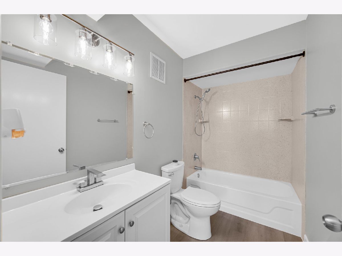 Welcome to this fully renovated and charming 1st-floor 2-bedroom, 2-bath condo located in the desirable Lakewood community in Schaumburg. This well-maintained unit offers a blend of modern updates and convenience, perfect for those seeking a low-maintenance lifestyle. The spacious living room, featuring fresh paint, newly installed ceiling lights and brand-new flooring, flows seamlessly into the dining area and kitchen along with smart remote-controlled lights throughout the unit making it ideal for entertaining. The eat-in fully updated kitchen boasts new flooring, new white cabinets, and updated appliances, including a brand new counter top and a sink. The master bedroom is complete with a large walk-in closet and an updated in-suite bathroom, while the second bedroom offers ample closet space and plenty of natural light along with easy access to the updated 2nd bath. Enjoy your morning coffee or unwind in the evening on your private patio, accessible through sliding glass doors. The association fees provide a hassle-free living experience, covering essentials such as heat, water, gas, exterior maintenance, and more. Additional amenities include a clubhouse with an inground pool, walking paths, and bike storage. Conveniently located just minutes from shopping, dining, expressways, and Metra train stations, this condo is also within walking distance to parks, recreation centers, and top-rated Schaumburg schools. With a prime location, this move-in ready condo is a rare find and an exceptional value. Don't miss your chance to make it your new home!