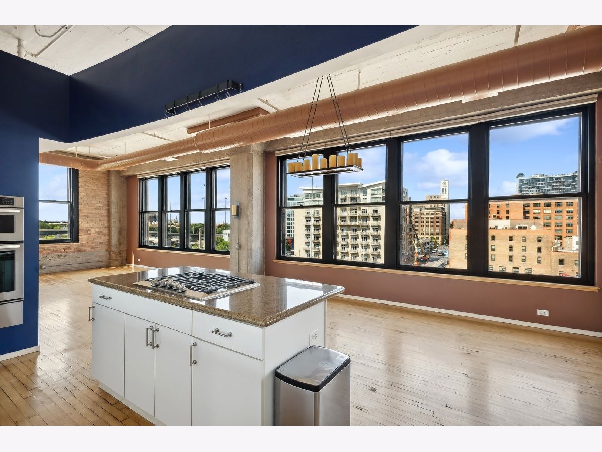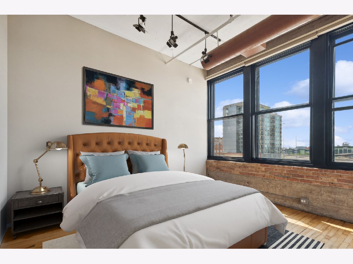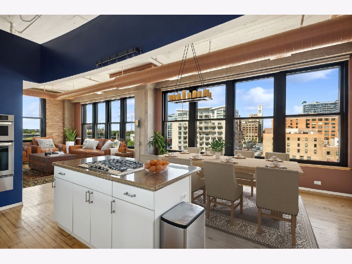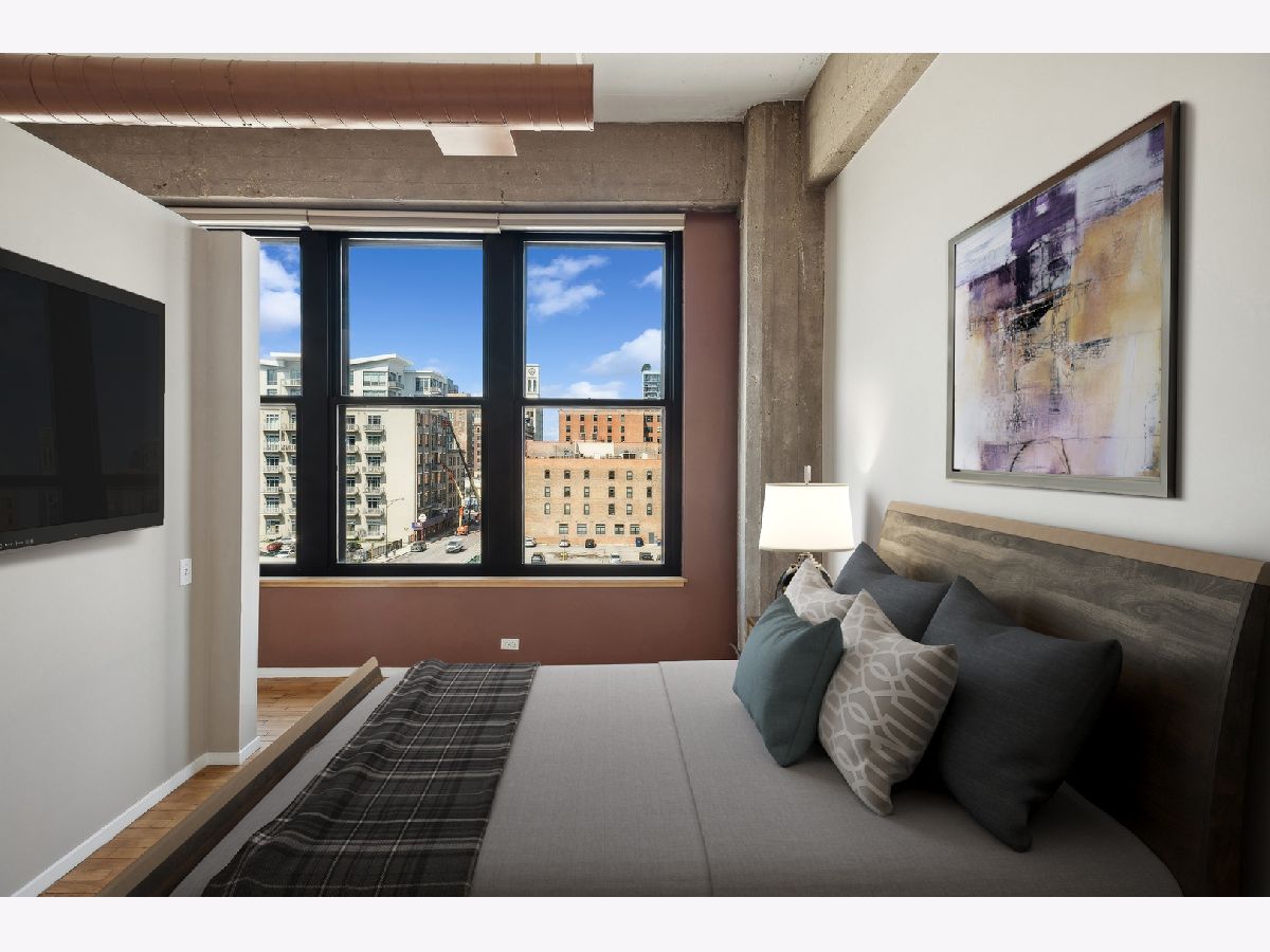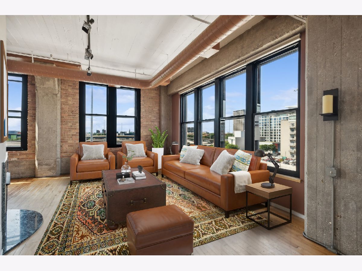 This gorgeous loft is a former model unit on the SW corner of Haberdasher Square Lofts and has 60 linear feet of windows with city views. The split bedroom floor plan is ideal for optimal privacy. Features include original maple floors, 12' ceilings, exposed brick, concrete architectural columns, a gas fireplace and custom remote controlled blinds throughout. The open kitchen has a working island and includes a Viking professional cooktop, wall ovens and a new refrigerator. The primary bedroom boasts a huge walk-in closet and ensuite bath with an oversized soaking tub and a separate shower with dual rain heads. Full-sized washer and dryer in unit . Impressive building amenities include a work-out room, a roof-top deck with stunning panoramic views, a separate deck for grilling and dining, a basketball court, a hospitality room, multiple elevators, on-site manager, and 24 hour door staff. This investor friendly building is walking distance to everything you love about the West Loop: Randolph restaurants, Fulton Market, Greektown, Whole Foods, Mariano's, Target, HMart and more. Convenient to CTA, Metra and 90/94 expressway. Two pets are permitted. A storage locker is on the same floor as the unit. Deeded heated garage parking is an additional $25K.