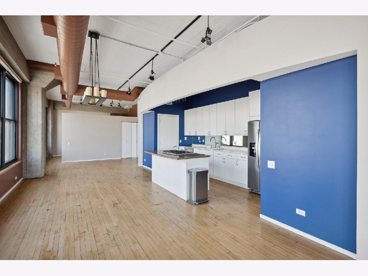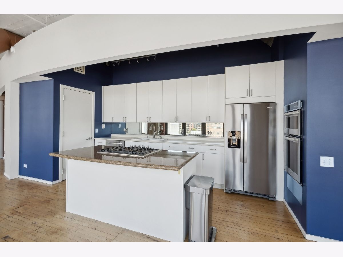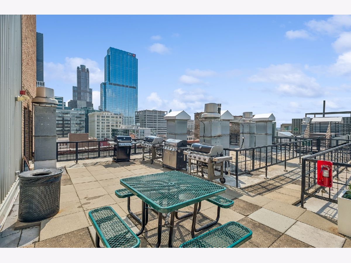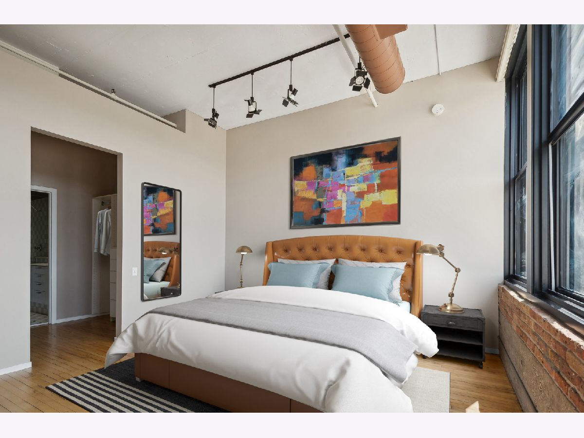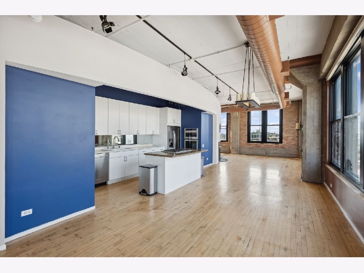 This gorgeous loft is a former model unit on the SW corner of Haberdasher Square Lofts and has 60 linear feet of windows with city views. The split bedroom floor plan is ideal for optimal privacy. Features include original maple floors, 12' ceilings, exposed brick, concrete architectural columns, a gas fireplace and custom remote controlled blinds throughout. The open kitchen has a working island and includes a Viking professional cooktop, wall ovens and a new refrigerator. The primary bedroom boasts a huge walk-in closet and ensuite bath with an oversized soaking tub and a separate shower with dual rain heads. Full-sized washer and dryer in unit . Impressive building amenities include a work-out room, a roof-top deck with stunning panoramic views, a separate deck for grilling and dining, a basketball court, a hospitality room, multiple elevators, on-site manager, and 24 hour door staff. This investor friendly building is walking distance to everything you love about the West Loop: Randolph restaurants, Fulton Market, Greektown, Whole Foods, Mariano's, Target, HMart and more. Convenient to CTA, Metra and 90/94 expressway. Two pets are permitted. A storage locker is on the same floor as the unit. Deeded heated garage parking is an additional $25K.
