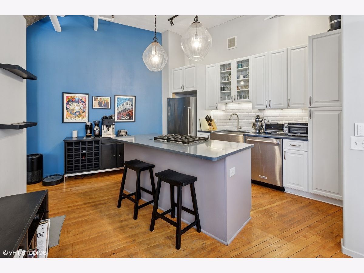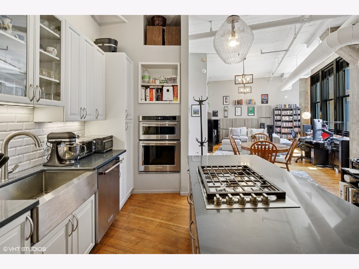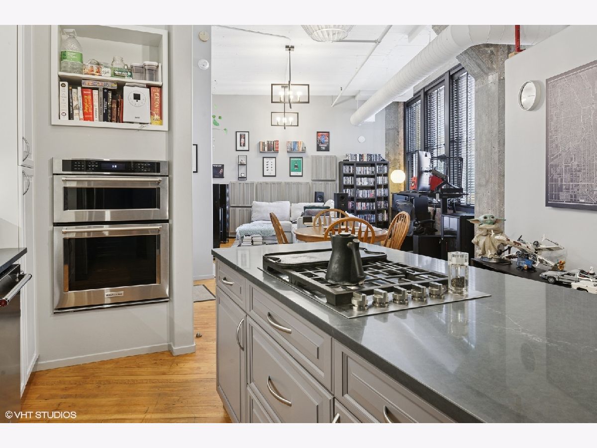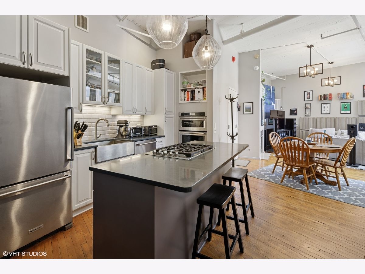 Industrial Charm Meets Modern Luxury in the Heart of the West Loop Step into this 1-bedroom, 1-bath corner loft at the sought-after Haberdasher Square Lofts. This bright and spacious home is flooded with natural light through oversized South and East-facing windows. Soaring 11'9" ceilings, original hardwood floors, exposed brick walls, and a cozy living room fireplace create the perfect blend of industrial character and contemporary comfort. The updated island kitchen is a chef's dream, complete with newer stainless steel appliances, Quartz countertops, and 42" cabinets. The oversized bedroom easily fits a king bed, offers two windows for great light, and features a full wall of closets. The bathroom includes a deep soaking tub and a linen closet for added storage. A washer/dryer is also conveniently located in-unit. Additional perks include a private storage unit (#410) and a heated, well-located garage parking space (#B-32) included in the price. Haberdasher Square Lofts offers top-tier amenities: 24-hour door staff, a newly renovated gym, half-court basketball court, rooftop deck with grills and sweeping skyline views, private park, brand new party room, and on-site management. This investor-friendly building allows rentals with a minimum one-year lease. Located steps from Randolph Street's Restaurant Row, Fulton Market, H Mart, Mariano's, downtown, and the Financial District, plus easy expressway access-this home is the total package for city living. Pet-friendly, stylish, and move-in ready-this is a must-see!