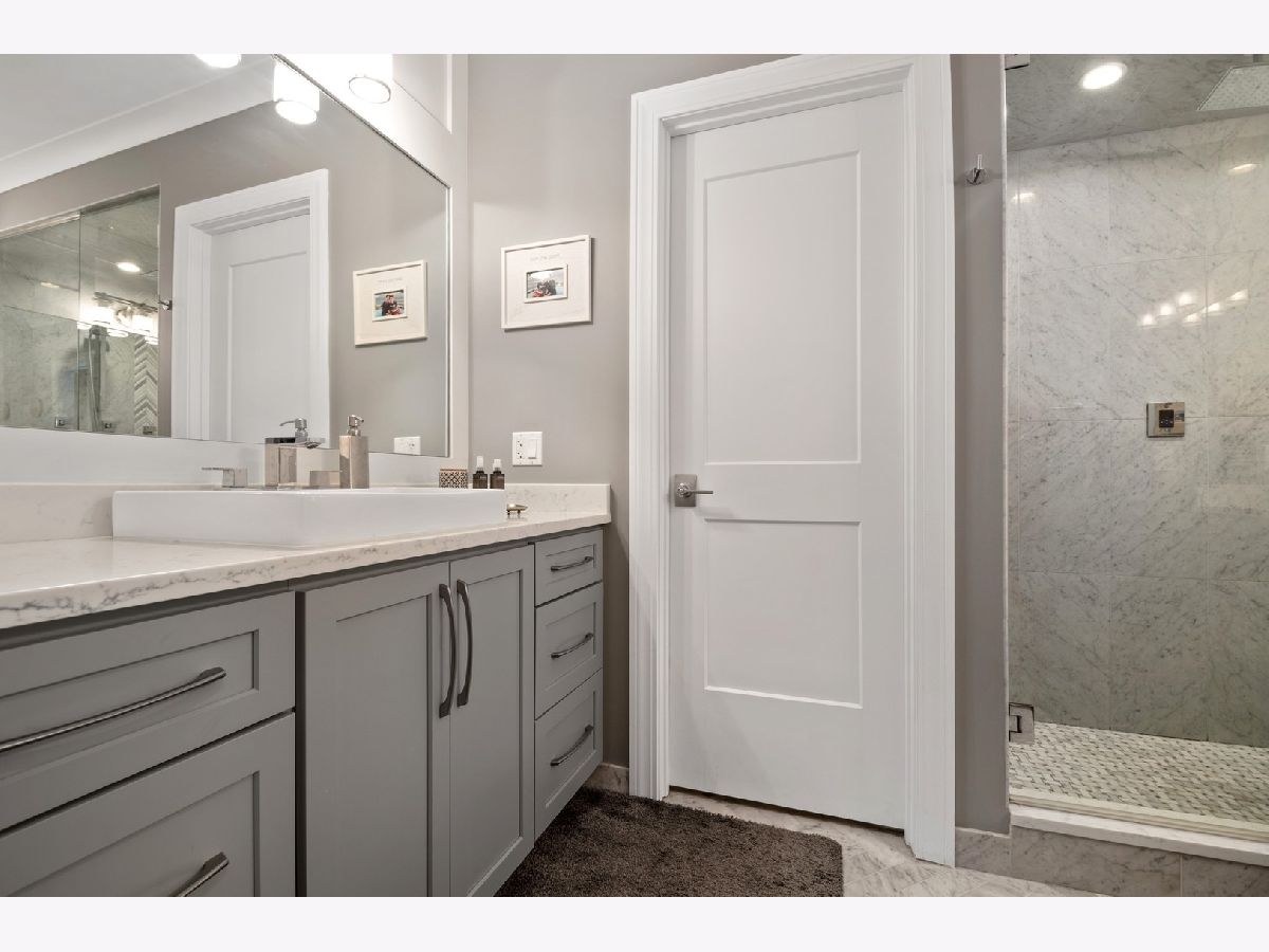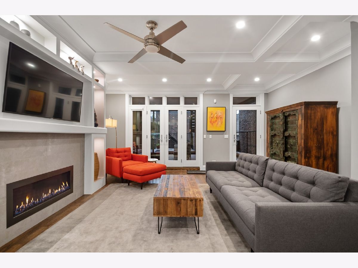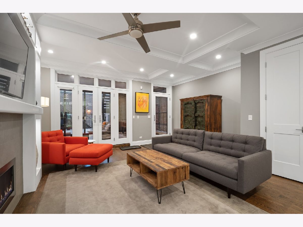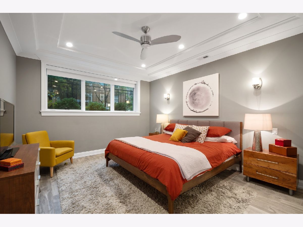 This stunning, spacious, 4 bedroom, 3.5 bath duplex down on a beautiful tree-lined street in East Lakeview has gleaming hardwood floors, soaring ceilings, walls of windows to let the sun shine in and four outdoor spaces. A tiled front balcony, a covered veranda with outdoor fireplace, a back deck and the entire 3-car garage roof deck. A top-chef's open kitchen with SubZero and Wolf appliances, prep sink with insta hot, drawer microwave and 2 beverage centers overlooks the family room with a fireplace. The living room also has a lovely fireplace at the center, the dining room has built in hutch cabinets. The lower level has 4 bedrooms; a huge primary bedroom, 3 other ensuite bedrooms and radiant floors throughout. Spa baths, a sauna, lots of storage. This is the perfect home with plenty of room for whatever you need - a home office, a Peloton area, a classroom and entertaining areas. Garage parking included. Fido and Fluffy are welcome. Close to the lakefront, parks, shopping, dining, entertainment and public transportation. Come home.