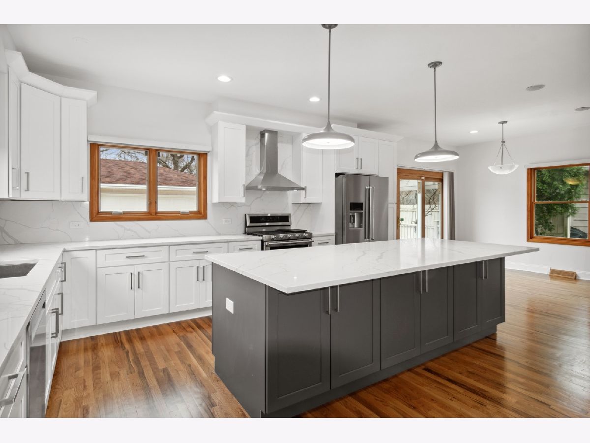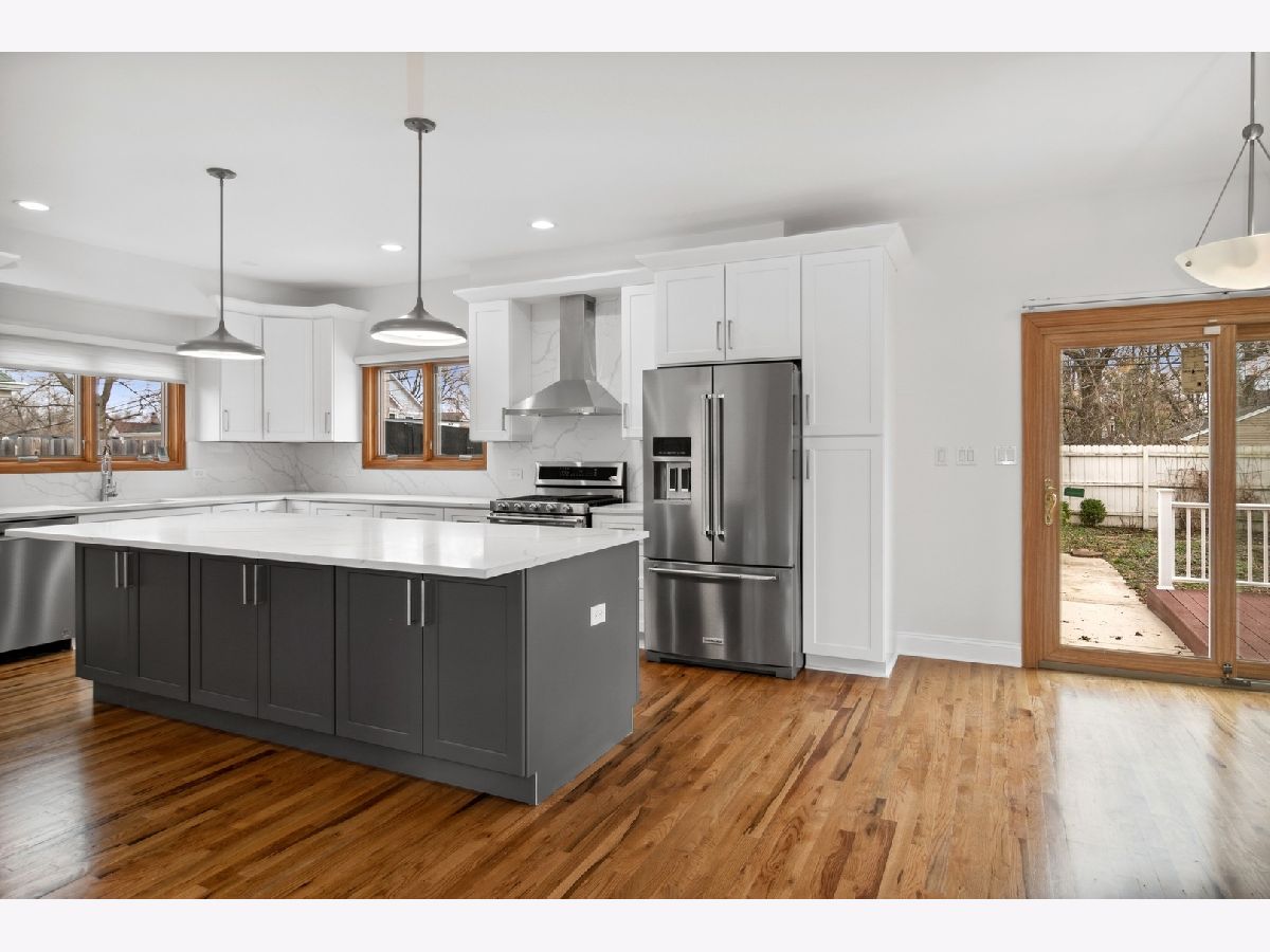 This beautiful multi-story home, nestled into a great neighborhood with the best school Hinsdale offers, close to everything, instantly welcomes you to a gorgeous foyer with an impressive staircase. On the main level, you'll find an open floor plan with light-soaked, bright space large family room with a stunning fireplace, gracious dinning room, and a fabulous new eat-in kitchen featuring 8' build in pantry cabinets, gorgeous island with 6 sitting overhang, quartz countertops, new stainless steel appliances, new light fixtures, rich hardwood floors throughout, breakfasts area. On the upstairs levels, you'll find three large bedrooms and two full baths, including a private primary suite that has it all - walk-in closet, gorgeous master bath with double sinks, separate shower and soaking bathtub. Third floor - huge den connected from the master bedroom that could be used as an office and extra closet space. On the lower level, you'll find a finished basement that would be fantastic recreation room, gym or office, and a full bed and bath, laundry room, and lots of storage, all new carpet. This house also offers a private all fenced backyard with a pleasant deck and three car garage. Newer windows, roof, AC and water heater, radon system. This house is one-of-a-kind charm that won't lasts!