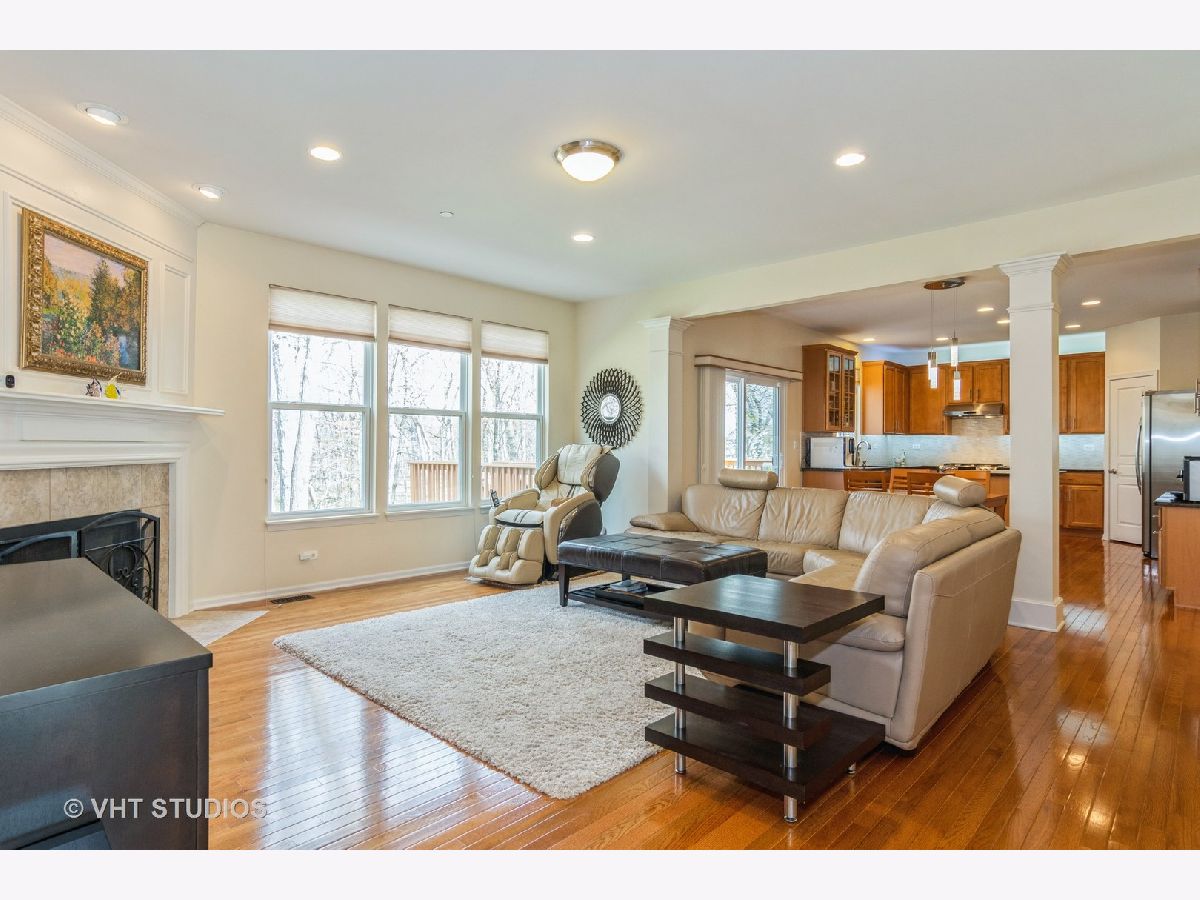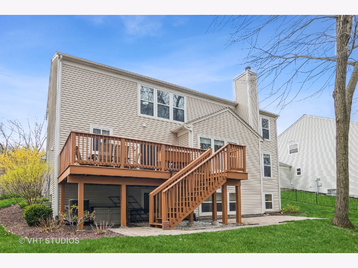 Tendered, Loved and well Cared contemporary home in Buckingham Woods! Two story 4 bedroom + Den with finished look out basement backing to forest preserve and walking path across from the front yard. Open floor plan with the soaring 20 ft vaulted ceilings, 9ft 1st floor ceilings and large windows with pouring natural lights. The main floor features a formal living and dining room, private office/den, cozy fireplace, and a spacious family room for gathering and family time. The kitchen with 42 inch cabinets, granite counter tops, stainless steel appliance with true exterior vent hood, back splash with personal touch, island, pantry and butler's pantry. Sliding door from large eat-in area lead you to resort like backyard on an extended over sized deck to enjoy a cup of coffee every morning or BBQ time with your family and guest or just to look for scenery thru all four seasons. Hardwood floors on the entire house. Master suite with 2 large walk-in closets and a luxury bathroom with a soaking tub and separate shower. Finished lookout basement as 2nd family room, playroom, workout space and etc. An owned irrigation system (automatic sprinkler system). New Extended Deck (2018), New Roof (2019), New Hardwood floors (2015), Kitchen updated in 2019 (New counter tops, New oven, New hood, back splash). Finished living space is 3821 sq. ft (2755 sq. ft above ground & 1066 finished basement area). Come and see your Sweet Home!