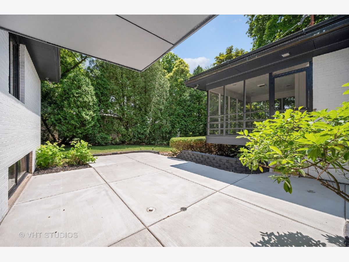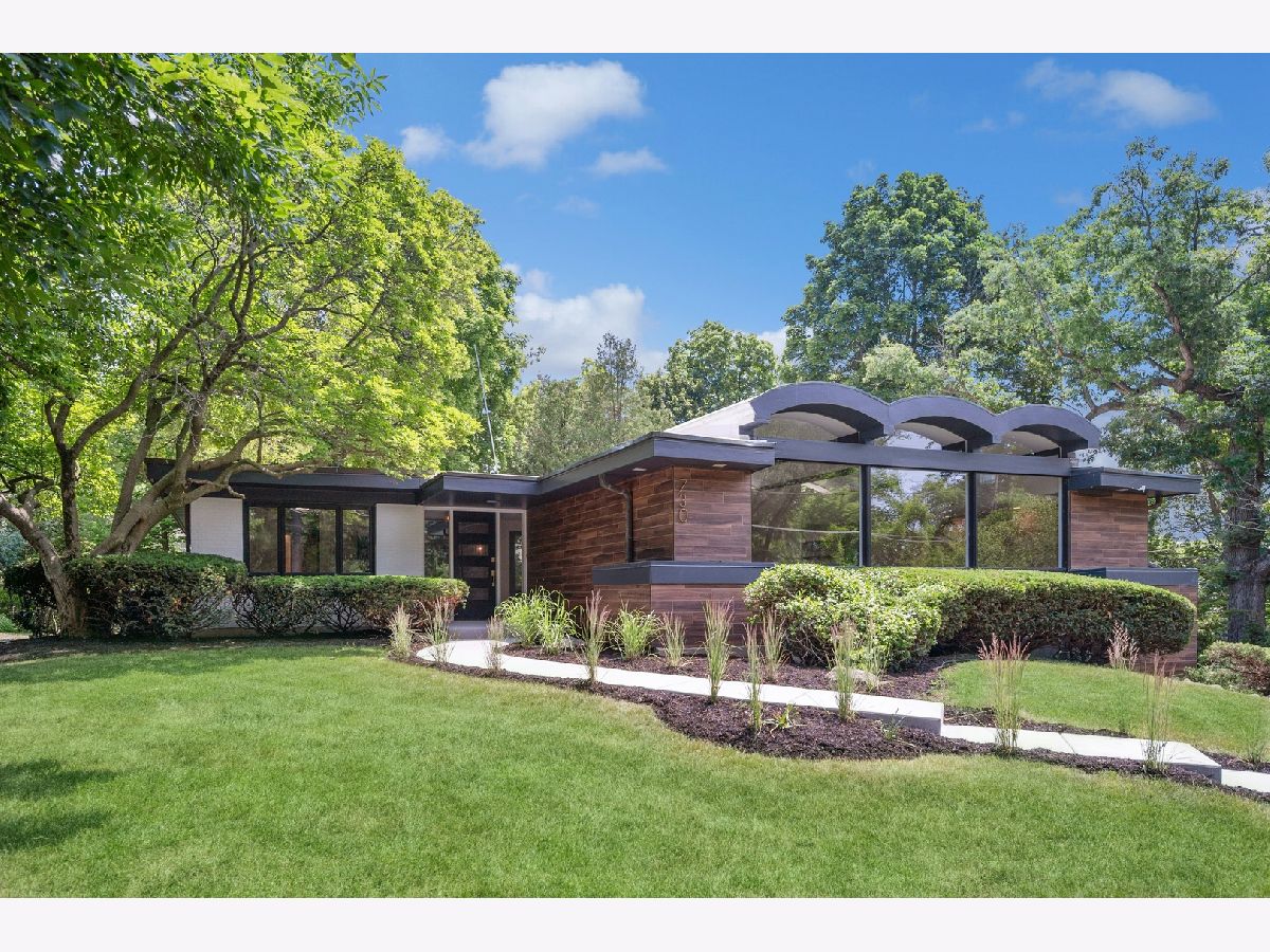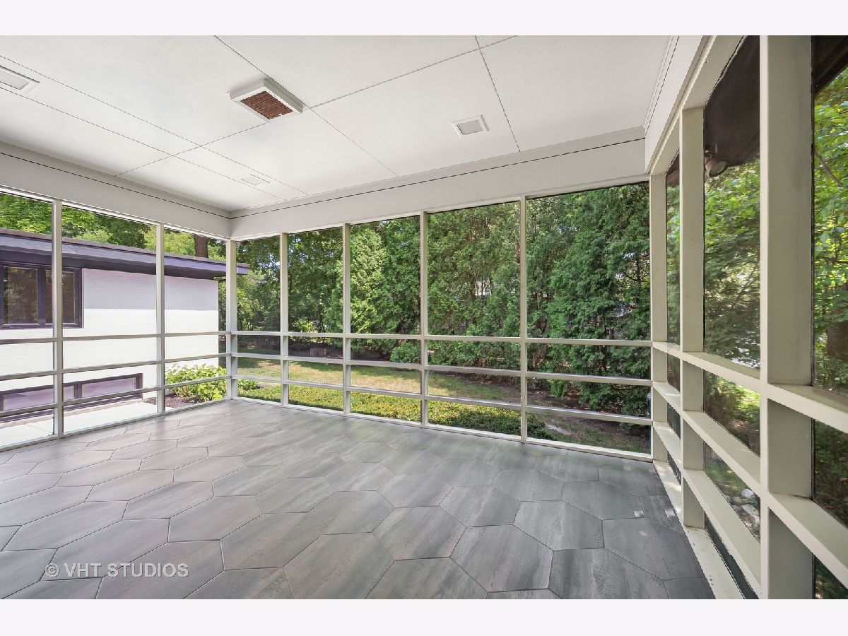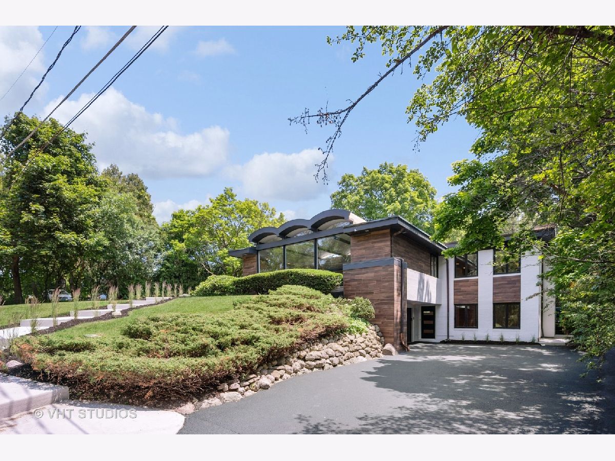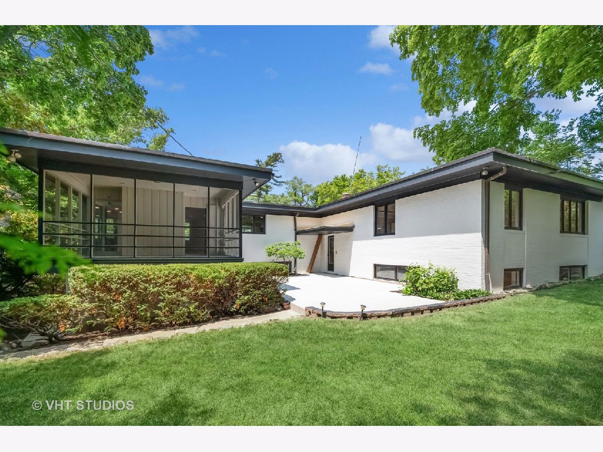 This stunning mid-century modern home is nestled on a picturesque residential street in Highland Park. Perfectly positioned near downtown Ravinia and the festival ground, this magnificent home spans 5,200 square feet, including five bedrooms, four and a half bathrooms, and an oversized two-car garage. The formal living room and raised dining room is bathed in lots of natural light pouring through its magnificent floor-to-ceiling windows. The stylish chefs kitchen, with beautiful walnut finish cabinets, accented by gold hardware is equipped with brand new stainless steel KitchenAid appliances. For a completely different vibe, relax in the family room, where a wood-burning fireplace creates a cozy atmosphere and the large windows overlooking the yard make you feel like you're amongst the trees outside. From here, step in to the screened three-season room, offering warm summer breezes and serene views of the mature backyard. The luxurious primary bedroom suite, features an incredible bathroom equipped with a freestanding tub, double vanity, and an expansive shower. The grandeur continues with a spacious master dressing room. The remainder of the main floor offers two additional bedrooms, a bathroom, laundry facilities, and a powder room. The versatile lower level presents an ensuite guest bedroom, 1 more bedroom and bathroom, an office, a workout room, and an incredible recreation room complete with a dry bar and wine fridge. Outside, a generous patio extends from the three-season room, creating an ideal setting for summer gatherings. Updates include a brand new 2-zone HVAC system, a new water heater, updated electric, plumbing and recent roof replacement. Don't miss this exceptional opportunity to own a contemporary mid-century modern masterpiece in the coveted neighborhood of Highland Park.