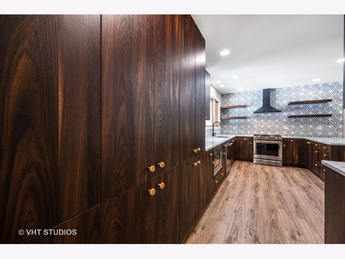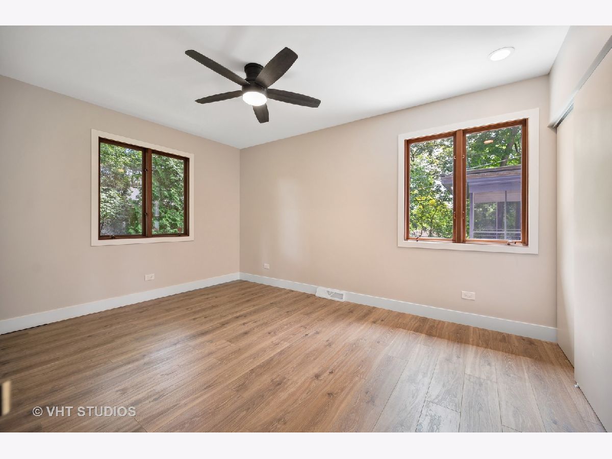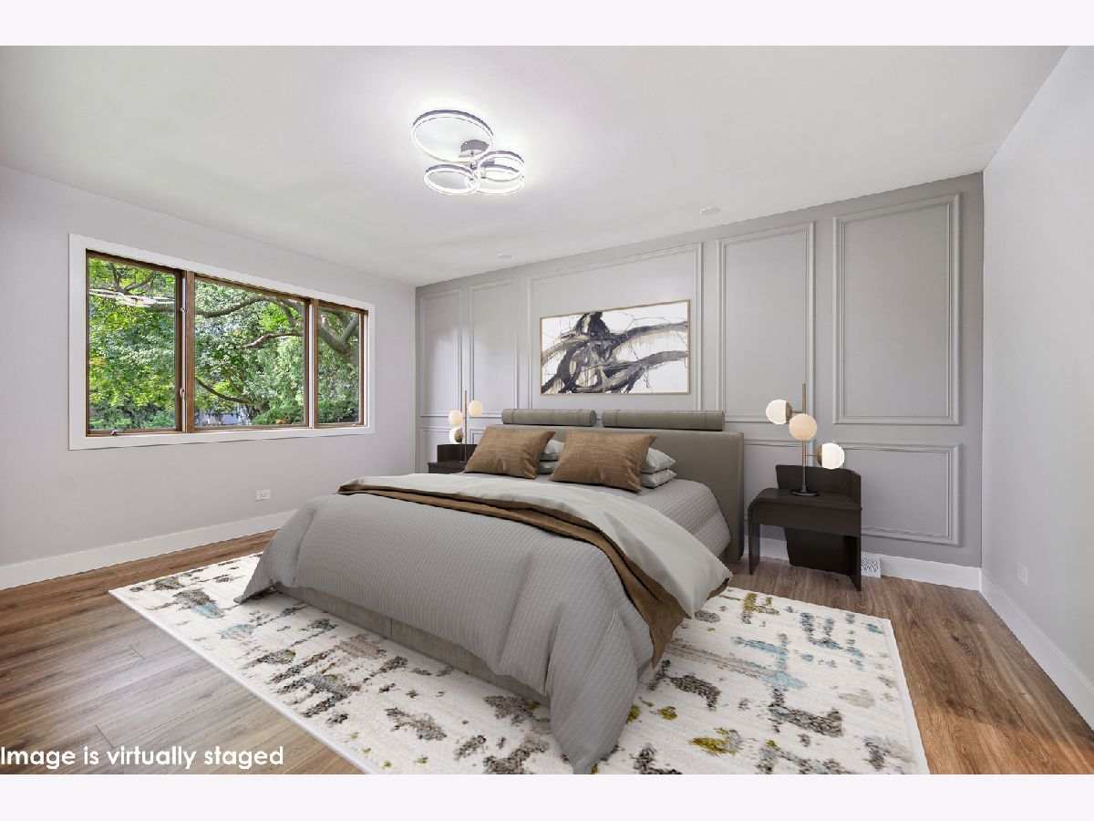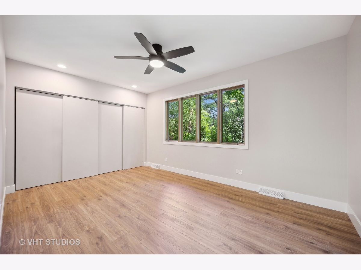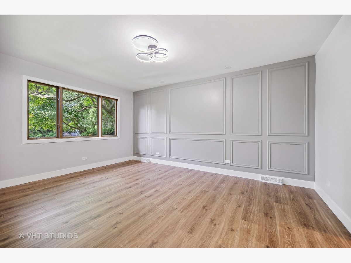This stunning mid-century modern home is nestled on a picturesque residential street in Highland Park. Perfectly positioned near downtown Ravinia and the festival ground, this magnificent home spans 5,200 square feet, including five bedrooms, four and a half bathrooms, and an oversized two-car garage. The formal living room and raised dining room is bathed in lots of natural light pouring through its magnificent floor-to-ceiling windows. The stylish chefs kitchen, with beautiful walnut finish cabinets, accented by gold hardware is equipped with brand new stainless steel KitchenAid appliances. For a completely different vibe, relax in the family room, where a wood-burning fireplace creates a cozy atmosphere and the large windows overlooking the yard make you feel like you're amongst the trees outside. From here, step in to the screened three-season room, offering warm summer breezes and serene views of the mature backyard. The luxurious primary bedroom suite, features an incredible bathroom equipped with a freestanding tub, double vanity, and an expansive shower. The grandeur continues with a spacious master dressing room. The remainder of the main floor offers two additional bedrooms, a bathroom, laundry facilities, and a powder room. The versatile lower level presents an ensuite guest bedroom, 1 more bedroom and bathroom, an office, a workout room, and an incredible recreation room complete with a dry bar and wine fridge. Outside, a generous patio extends from the three-season room, creating an ideal setting for summer gatherings. Updates include a brand new 2-zone HVAC system, a new water heater, updated electric, plumbing and recent roof replacement. Don't miss this exceptional opportunity to own a contemporary mid-century modern masterpiece in the coveted neighborhood of Highland Park.