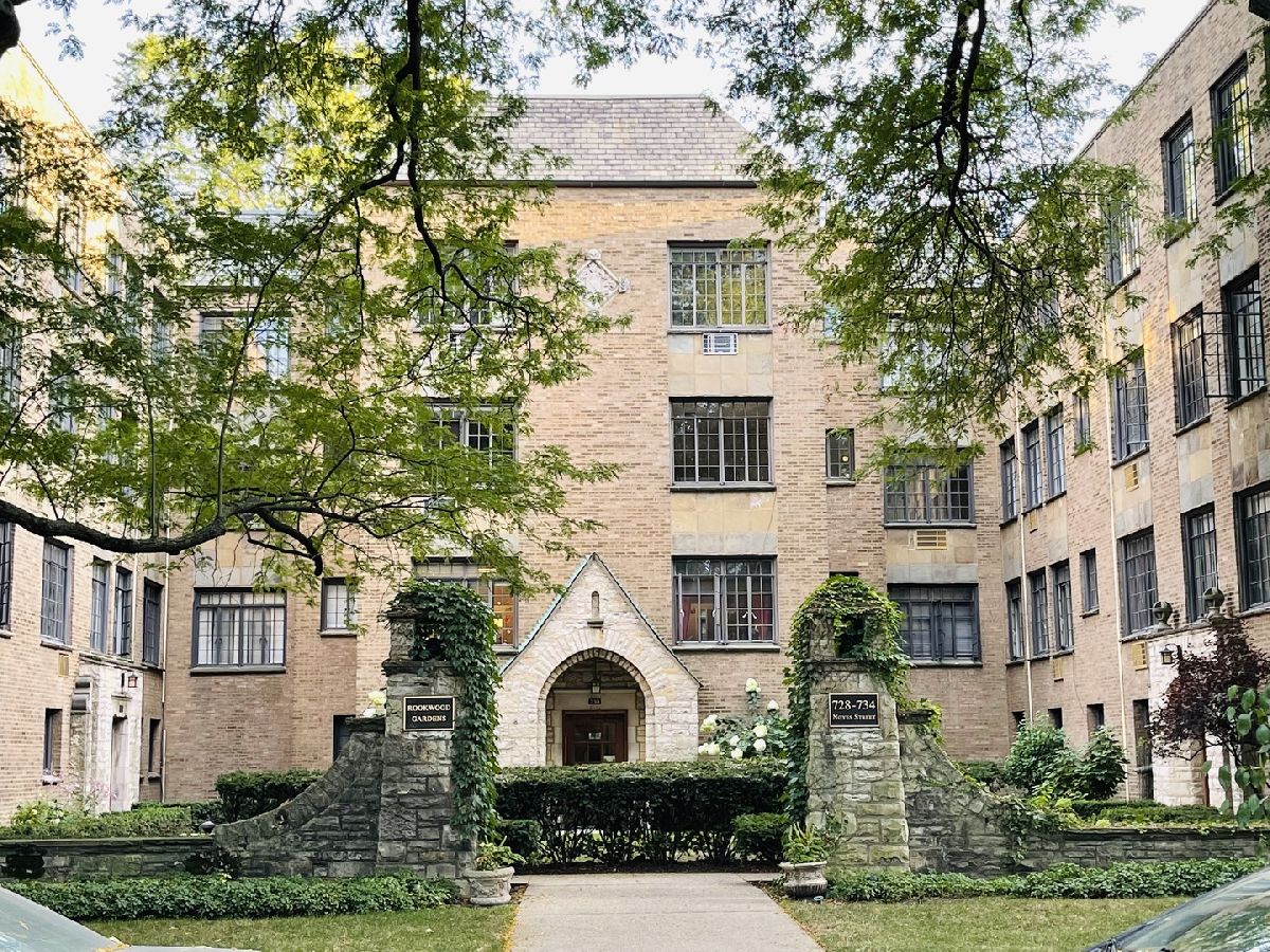 Splendid Location!!! Bring your decorating ideas to 730 Noyes, K-2! Charming, vintage 1 bedroom, 1 bath co-op. Bright and spacious 1 bedroom. Enjoy the North and South breezes when the large wind-out, steel framed English casement windows are opened! The 9' ceilings with crown molding throughout the unit and the custom floor to ceiling built-in bookcase lining the East wall of the study/dining room will not disappoint. There are hardwood floors throughout this airy and light filled, 2nd floor unit. There is also a private enclosed spring bloom garden on the grounds to relax in! The location of the property is located 1-1/2 blocks to Lake Michigan, NWU North Western University, restaurants, and public transportation, right out your door! Free laundry and a personal storage unit both located in the basement. On site bike garage storage also. Enjoy the access to Evanston's beautiful lakefront walking paths, parks, beaches, farmers markets, street fairs. Assessments do include property tax, heat, water, gas, maintenance, lawn maintenance all included in the monthly assessment. Pet friendly building. The Rookwood Garden Cooperative was placed on the National Register of Historical Places in 1984. Take a look at Rookwoodgardensco-op for more info.