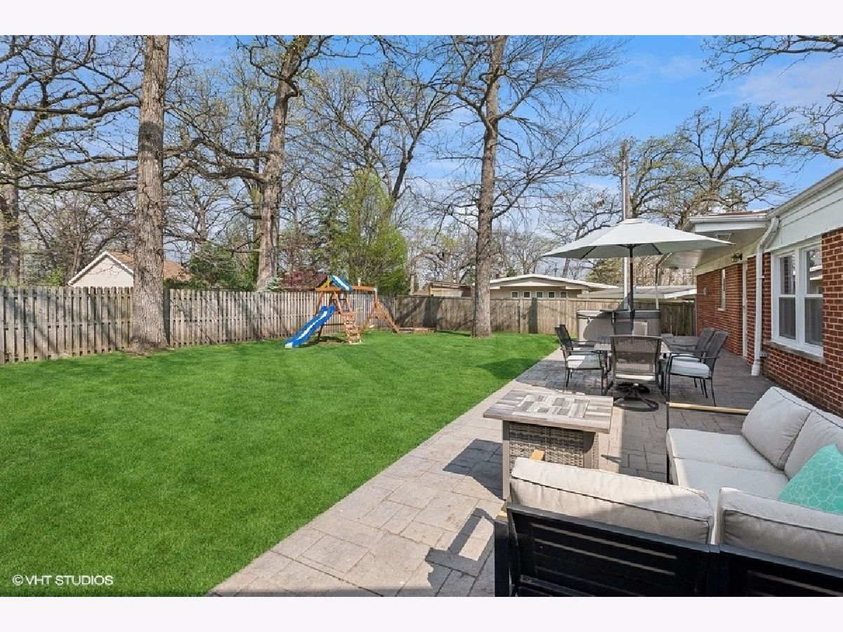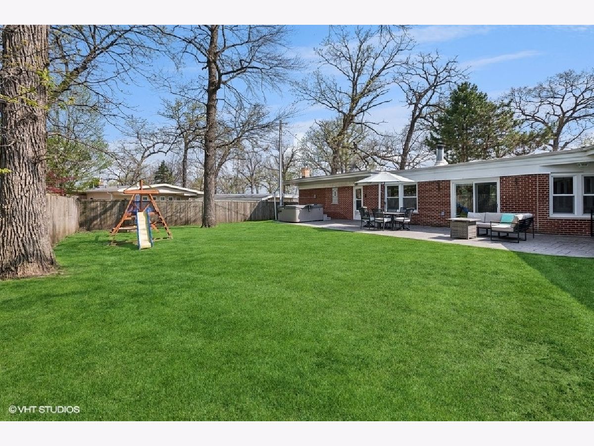 Your new home awaits!! This beautiful, all stone & brick, true ranch, is nestled on an oversized corner lot on a quiet, tree lined street. This home gives off a cozy vibe and is perfect for entertaining. Upon entry you will find a combined formal living & dining room with a stone fireplace. There are 3 nicely sized bedrooms with a full bathroom on one side of the home and a HUGE family room with an additional fireplace & a bar, a fully rehabbed full bathroom and large laundry/utility room with tons of storage on the other side of the home. Situated right in the middle is the generously sized kitchen with a breakfast room and an additional breakfast bar overlooking the family room. All appliances are approximately 5 years old. This home features zoned AC for the summer months and boiler heat for those winter months; wonderful for those with allergies and runs much more efficiently than a traditional gas furnace. All windows are 10 years old or newer. This home boasts curb appeal galore situated as the focal point on an oversized corner lot with a wrap around driveway providing easy access for guests to come visit PLUS a smaller driveway that leads to an attached 2 car garage with TONS of storage. The spacious and serene backyard features a large stamped concrete patio, playset, hot tub and beautiful trees which provide natural shade. Conveniently located within walking distance to schools, the park, Metra and public transportation. Priced to sell, schedule your showing today--this one won't last long!!