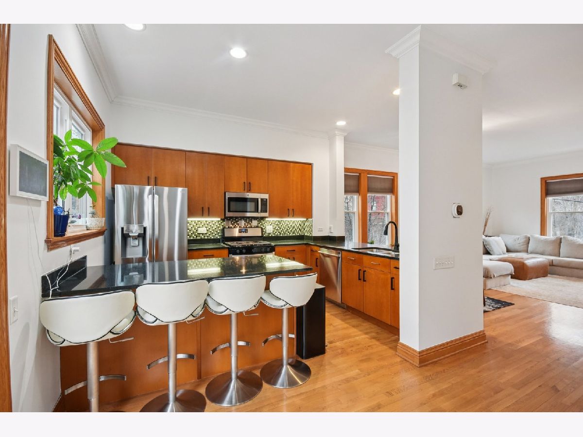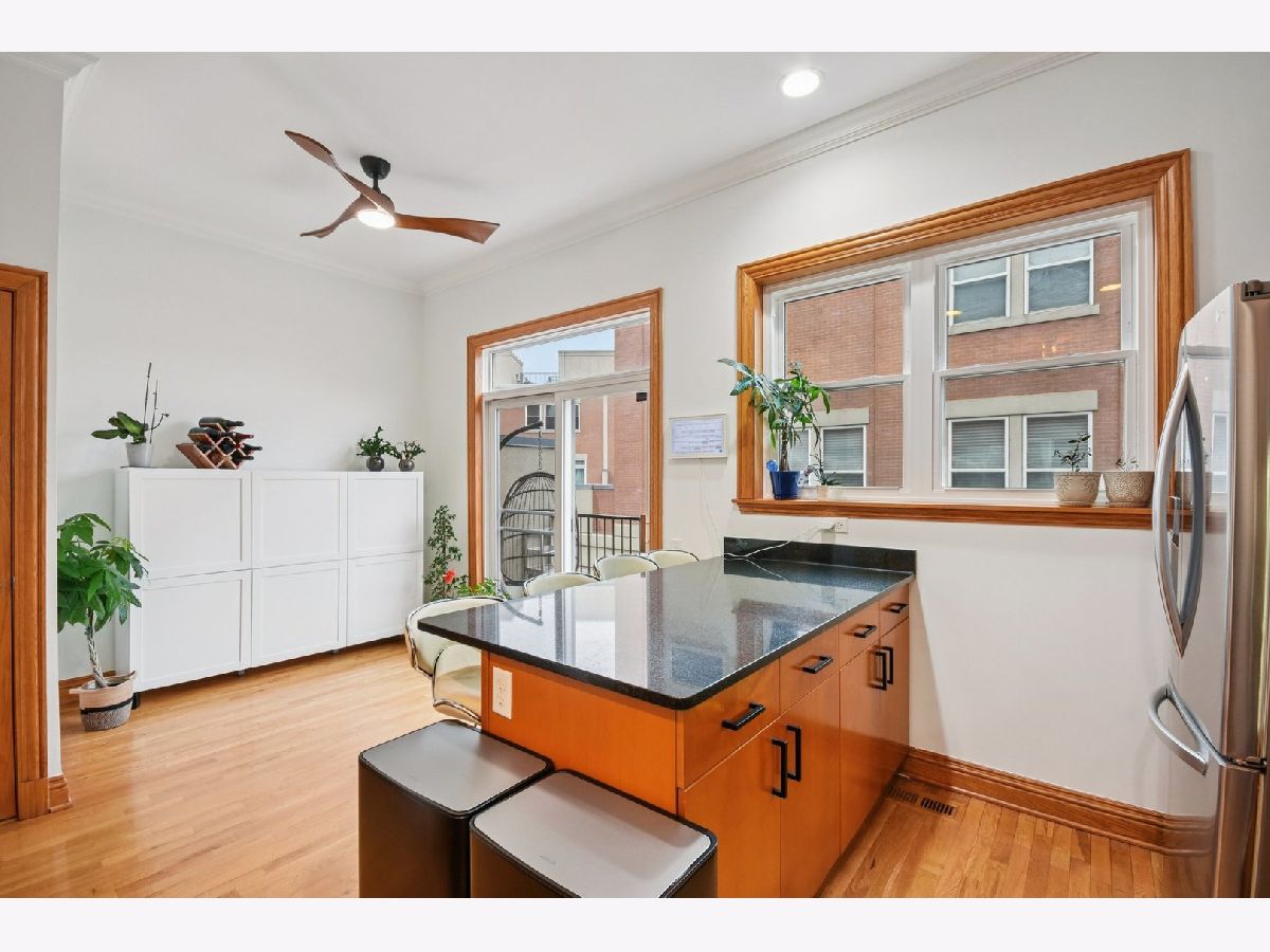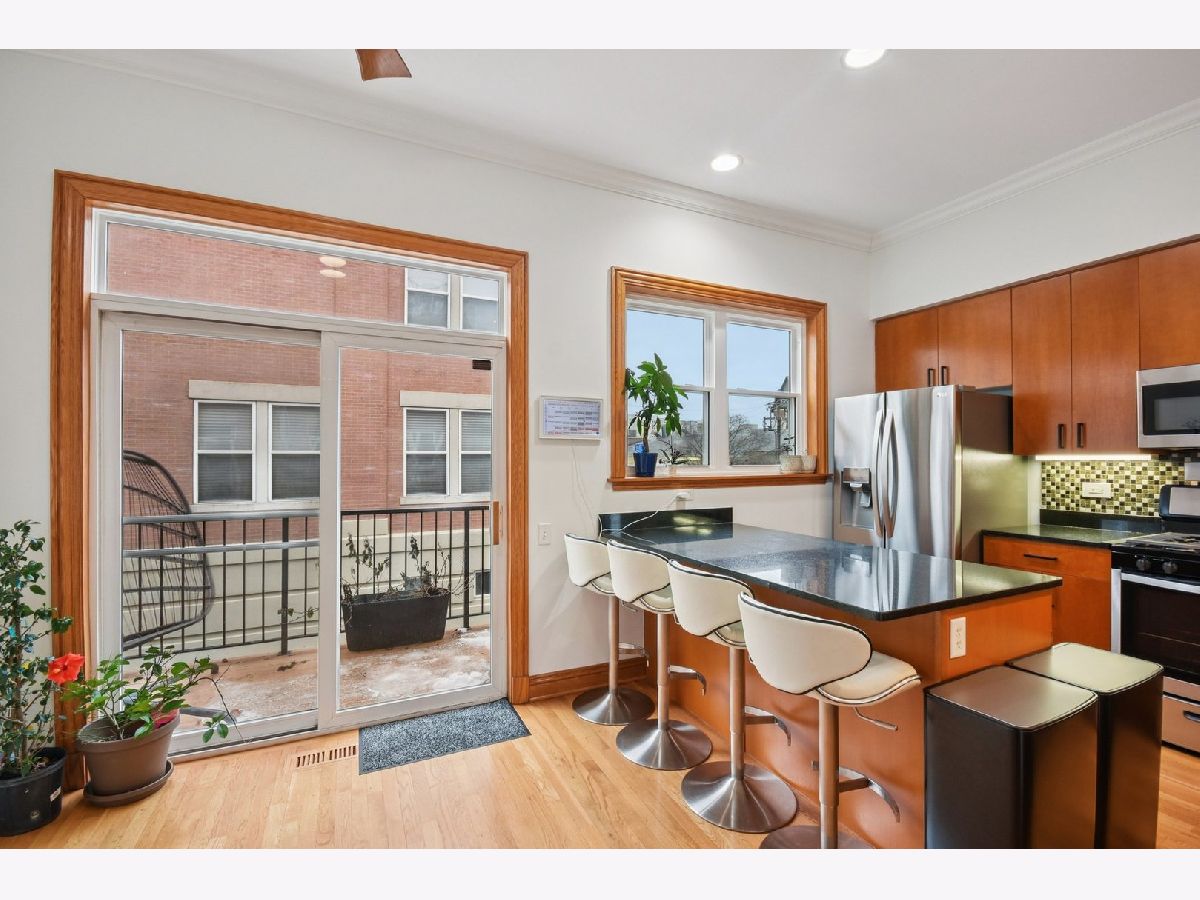 The total package: this updated 3-bed, 3-bath end-unit townhome offers location, space, amenities, and affordability. This 2,200 SQFT home is a five-minute walk to the CTA Green Line and Metra and a mile drive to 290; it's also a five-minute walk to downtown Oak Park and a ten-minute walk to downtown Forest Park. With Southern, Eastern, and Northern exposures, sunlight spills through the brand-new windows (2025) in every season onto a beautiful interior complemented by new paint throughout (2024). The main level of the home lends itself to entertaining with a spacious, open plan living room with a wood burning fireplace, dining room, and kitchen with new LG fridge and Bosch low-decibel dishwasher (2024), plus a temperature-adjustable wine storage/display closet. This space all flows to the kitchen balcony for grill-outs with additional seating at the large granite island. The rooftop deck is the largest in the complex and offers beautiful views in every direction, including East to downtown showcasing the Sears Tower on clear days and sunsets to the West. It has room for ample seating and a box garden that gets tons of sun. All three bedrooms are spacious and comfortable with great light and ample storage; the master, with additional attic storage space, boasts an en-suite with a walk-in shower. All three bathrooms got updated light and plumbing fixtures in 2024. The ground floor bathroom has a new white subway tile shower (2024). The ground floor also features a new LG washer and dryer and water heater (2024). The two-car garage has a storage closet, ample space for storage racks, and a second fridge, making this the perfect home!