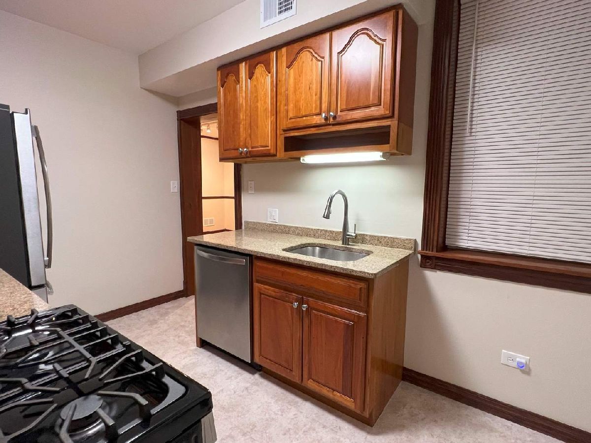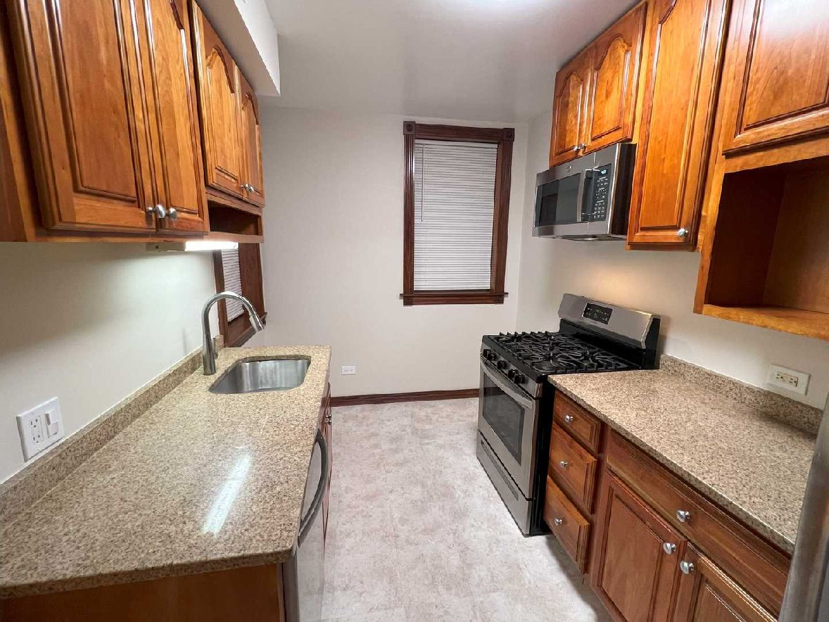 Freshly updated 2 bed & 2 bath condo ready for move in! Many updates in October 2023 including: Custom paint colors, updated light fixtures, outlets and switches, new stainless steel microwave and newer stainless steel appliances, new kitchen floor, bath fixtures and bath cabinet, polished wood trims and more. Kitchen has granite counters, 42" cabinets, undermount sink and a small breakfast area. Huge master bedroom, kitchen and outside deck area. Large storage locker and bike room. In-unit Washer/Dryer and HVAC. A park is 1/2 block north, and there are plenty of area amenities including: Jewel, Walgreens, shops, stores, buses and easy access to major streets. Easy street parking, no permit needed. 1-yr or longer rentals allowed, no cap. Easy to show!