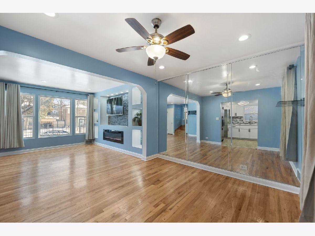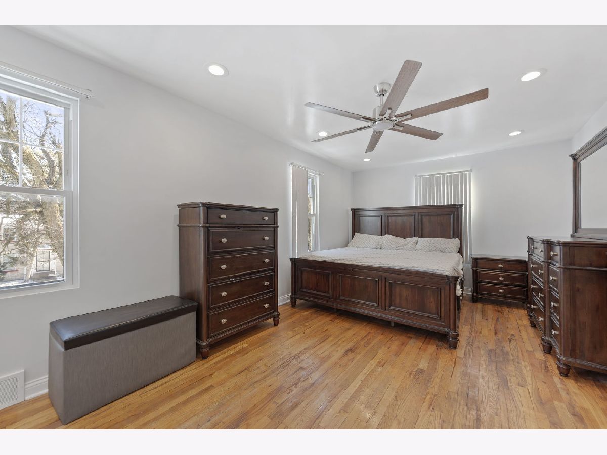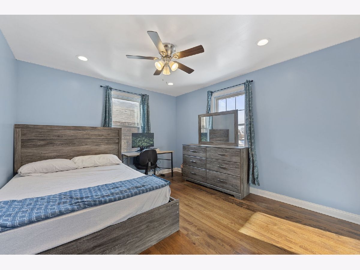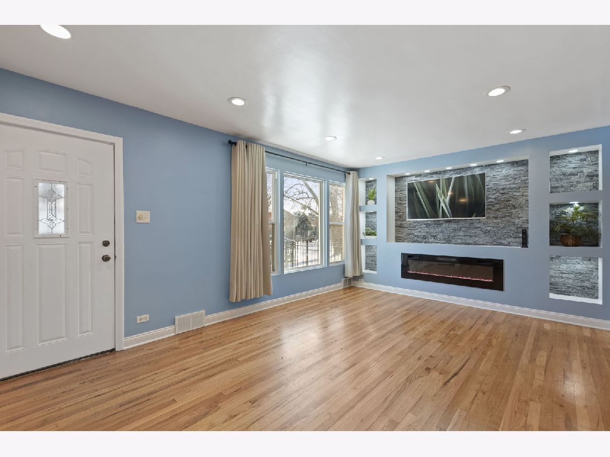 Beautifully Updated Brick Georgian in Excellent Condition! This charming, modern two-story home features 2 bedrooms and 2 baths, with the potential to convert an existing space into a 3rd. bedroom on the main floor! Home is located close to downtown Chicago, this home offers both convenience and contemporary living. You'll be amazed by the impressive entertaining space, featuring a professionally designed, fully lighted stone electric fireplace. The updated kitchen boasts quartz countertops, crystal backsplash and is fully appliance, perfect for modern living. Additional highlights include a newer roof (2021), water heater (2017), newer windows (2021), and refinished hardwood floors throughout. The home also offers central A/C, a huge master bedroom, and a finished basement with a full updated bath and laundry area. The fenced-in backyard with a patio and a 2.5 car garage provides ample space for outdoor activities. There's extra storage in the porch area, which can be used as an office, gym, or whatever suits your needs. The professional front iron fence adds to the home's curb appeal. This move-in ready home is located close to all accommodations, including schools, parks, shops, restaurants, and major highways for easy commuting. Don't miss the opportunity to own this stunning home, waiting for its new lucky homeowner!