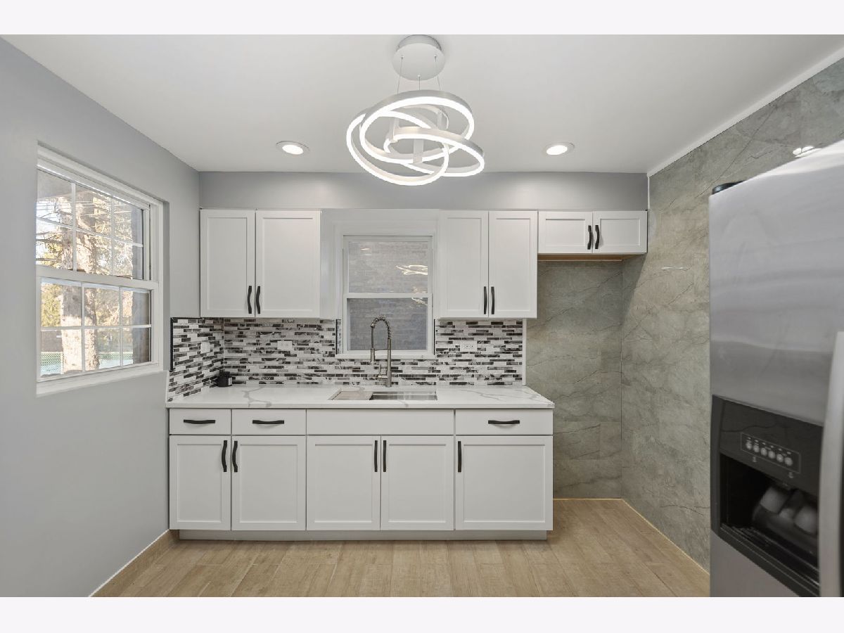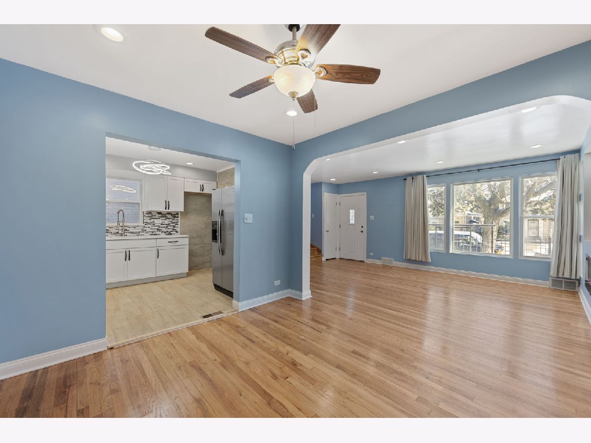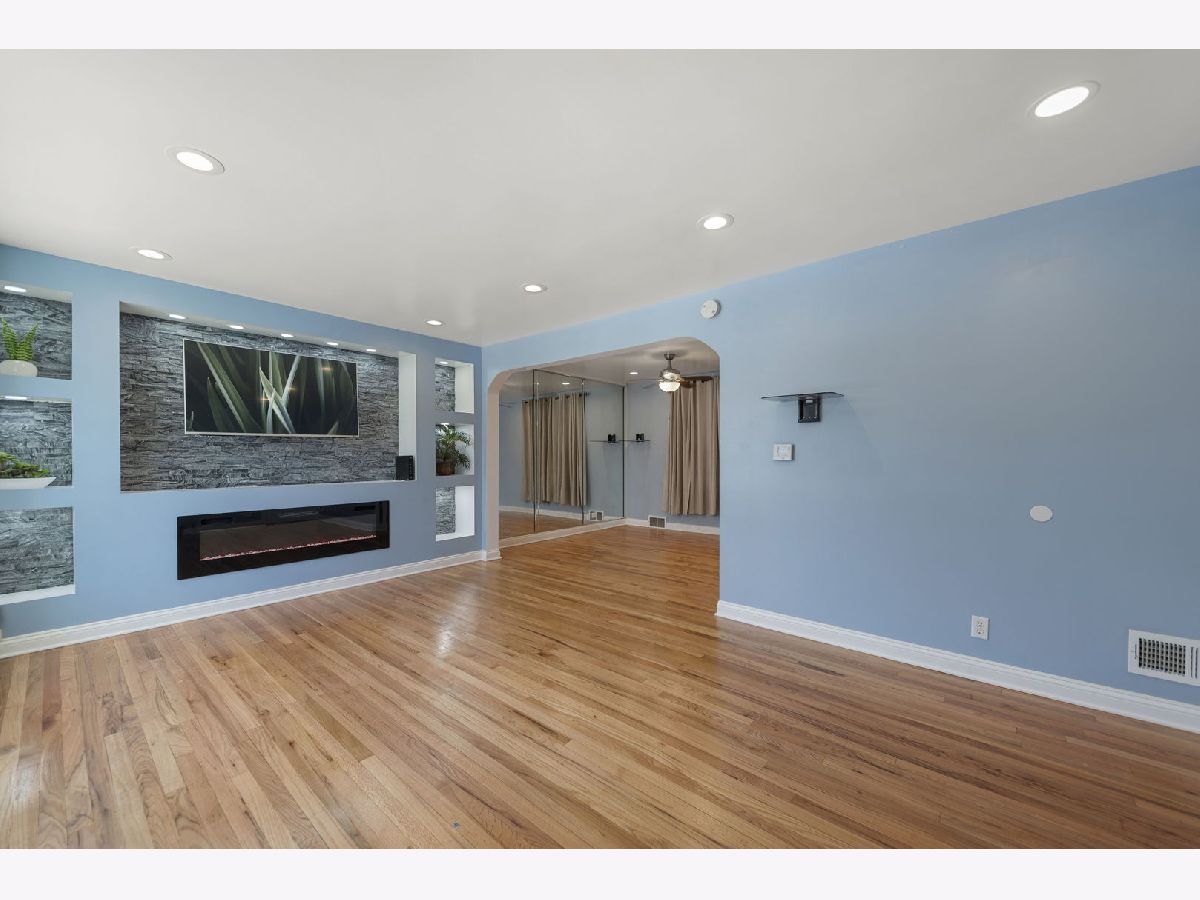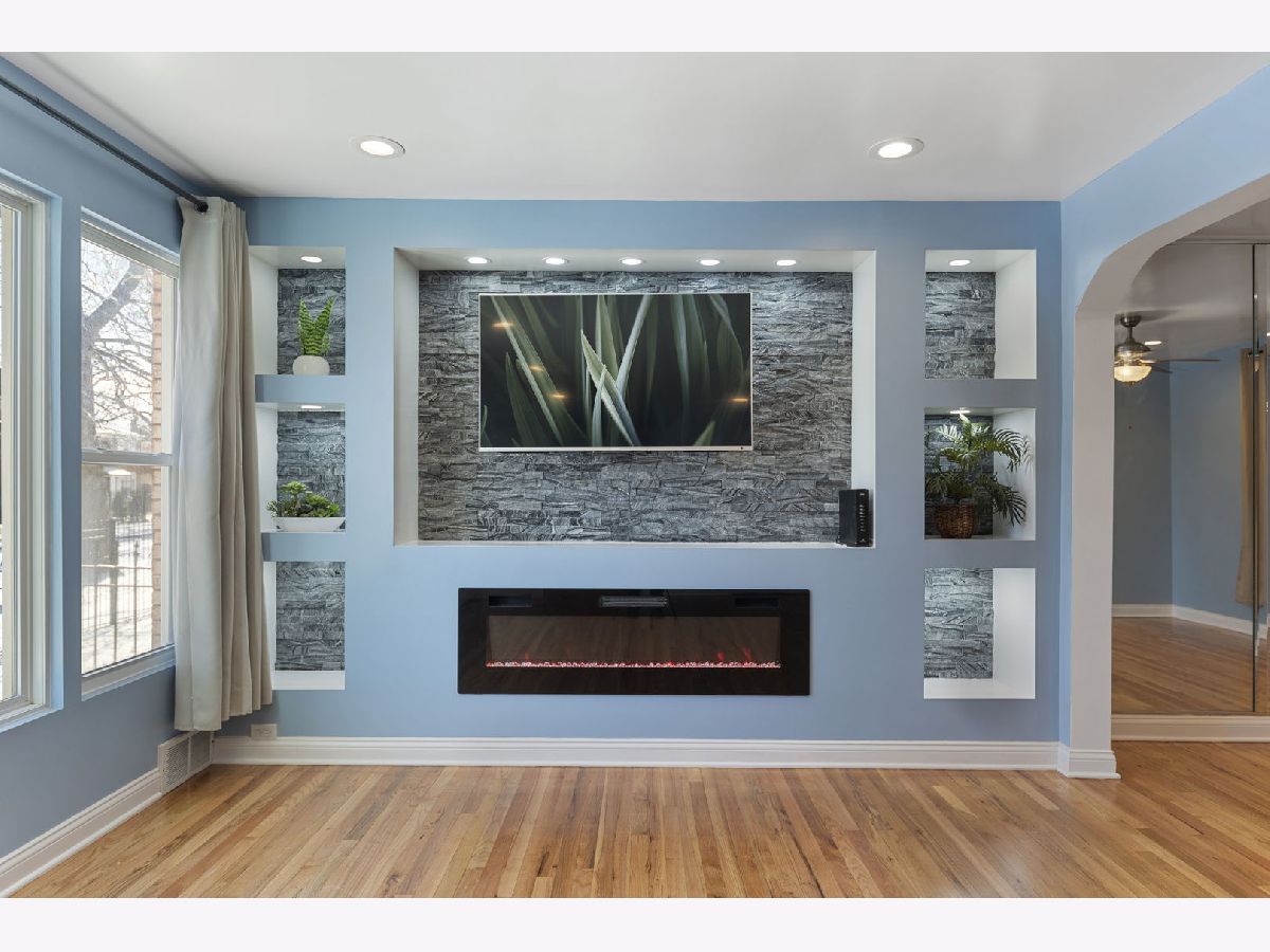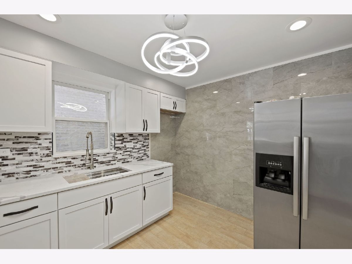 Beautifully Updated Brick Georgian in Excellent Condition! This charming, modern two-story home features 2 bedrooms and 2 baths, with the potential to convert an existing space into a 3rd. bedroom on the main floor! Home is located close to downtown Chicago, this home offers both convenience and contemporary living. You'll be amazed by the impressive entertaining space, featuring a professionally designed, fully lighted stone electric fireplace. The updated kitchen boasts quartz countertops, crystal backsplash and is fully appliance, perfect for modern living. Additional highlights include a newer roof (2021), water heater (2017), newer windows (2021), and refinished hardwood floors throughout. The home also offers central A/C, a huge master bedroom, and a finished basement with a full updated bath and laundry area. The fenced-in backyard with a patio and a 2.5 car garage provides ample space for outdoor activities. There's extra storage in the porch area, which can be used as an office, gym, or whatever suits your needs. The professional front iron fence adds to the home's curb appeal. This move-in ready home is located close to all accommodations, including schools, parks, shops, restaurants, and major highways for easy commuting. Don't miss the opportunity to own this stunning home, waiting for its new lucky homeowner!