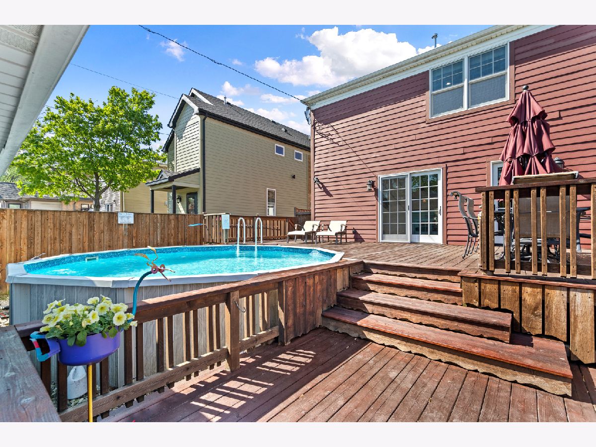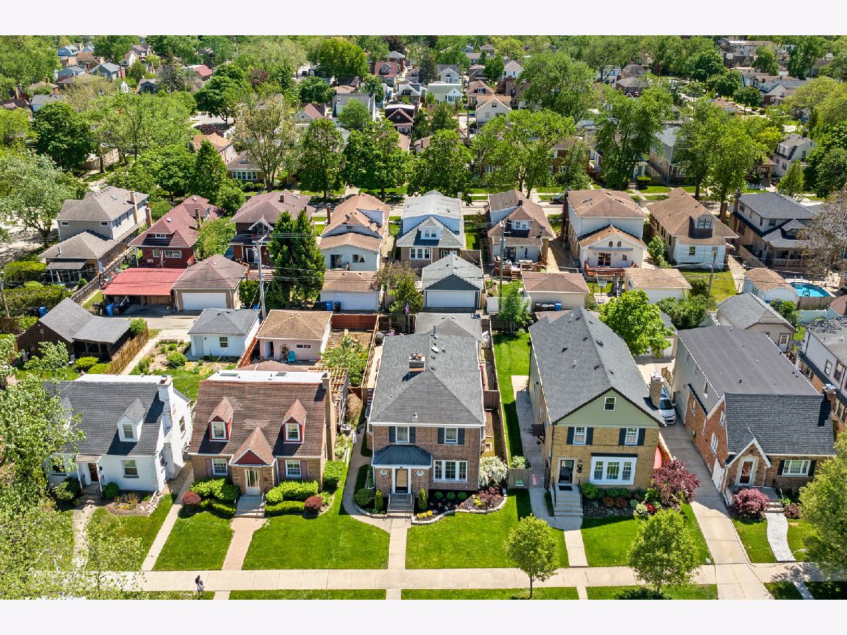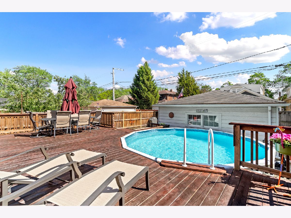 Welcome to your beautiful expanded brick residence in the heart of Edison Park-just steps from Brooks Park and within walking distance to Ebinger and St. Juliana's schools, as well as the vibrant downtown Edison Park dining scene. Set on a beautifully landscaped lot with a backyard that feels like your own private resort, this timeless home blends classic character with thoughtful updates and a two-story addition completed in 2012. Inside, you're greeted by a sun-filled living room with hardwood floors (throughout the first and second floors), elegant crown molding, and an arched entry that flows into a formal dining room and an open floor plan connecting to the expansive kitchen, family room, and backyard deck. Upstairs, the spacious primary suite includes a private office, a walk-in closet, and a spa-inspired bath with a steam shower. Two additional bedrooms share a full bathroom with a soaking tub, offering comfort for family or guests. The kitchen features expanded granite countertops with island bar seating, a built-in pantry, and high-end stainless steel appliances including a double oven, microwave drawer, Wolf range, and a new Bosch dishwasher (2025). An adjacent breakfast nook offers a cozy space for casual meals. A convenient powder room is located near the entrance. The inviting family room features a fireplace and French doors leading out to the private backyard with a multi-level deck with a built-in above-ground pool, patio, and a fire pit and grill area-perfect for entertaining or relaxing. The basement adds flexible living space with a large recreation room, custom bar, wine/beverage fridge, and dedicated laundry/utility area. Two storage rooms offer additional organization space for every need. A detached two-car garage, accessed via the alley, adds convenience and functionality to this exceptional home. Updates include a full roof replacement with the addition (2012), zoned HVAC (2012), water heater (2022), Marvin windows (2021), washer (2020), dryer (2017), and pool filter (2024). A drain tile system has also been installed in the basement for added peace of mind. Located just 15 minutes from O'Hare and close to Metra and parks, this home combines classic architecture with modern convenience in one of Chicago's most desirable neighborhoods. Schedule your private showing today!