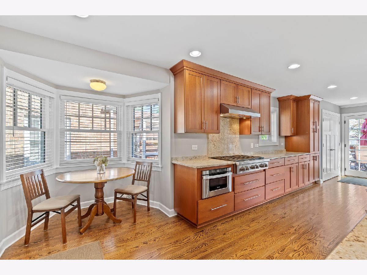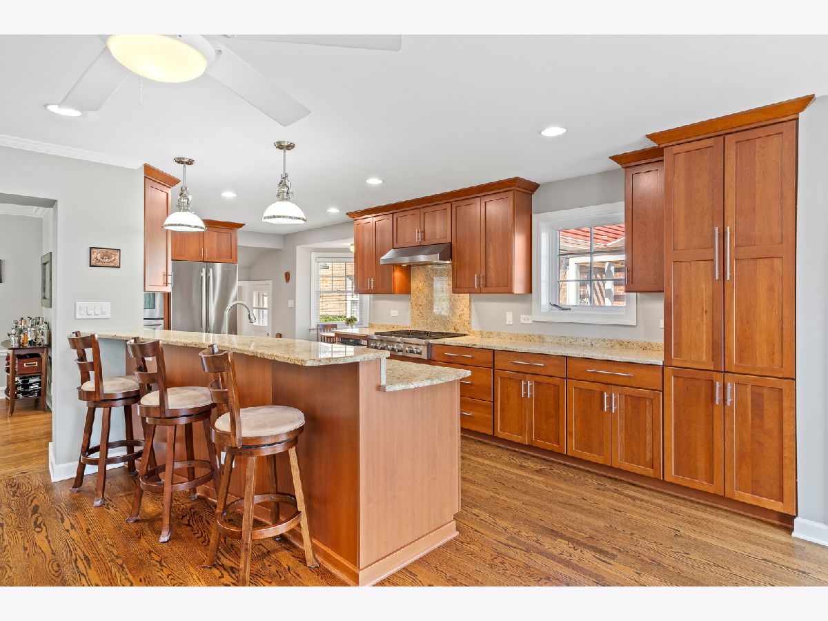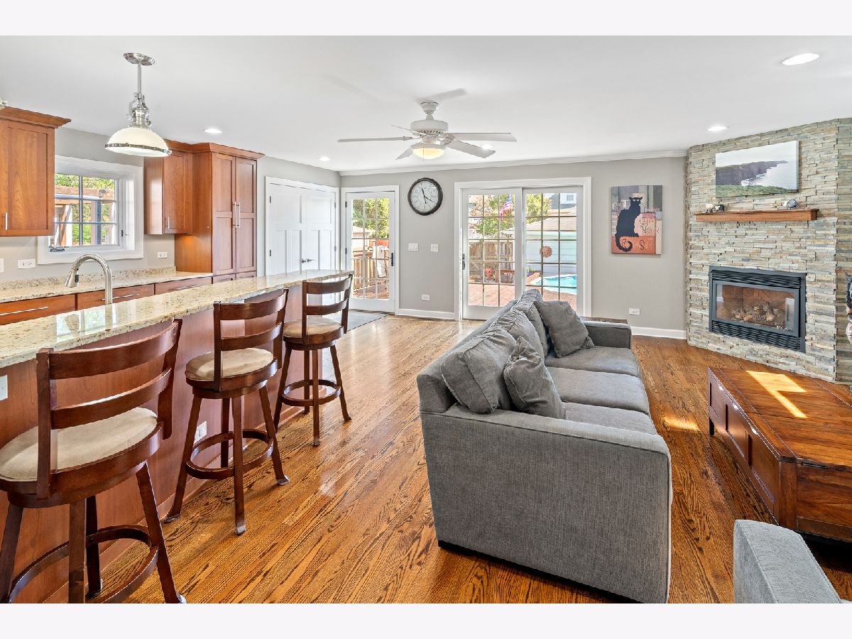 Welcome to your beautiful expanded brick residence in the heart of Edison Park-just steps from Brooks Park and within walking distance to Ebinger and St. Juliana's schools, as well as the vibrant downtown Edison Park dining scene. Set on a beautifully landscaped lot with a backyard that feels like your own private resort, this timeless home blends classic character with thoughtful updates and a two-story addition completed in 2012. Inside, you're greeted by a sun-filled living room with hardwood floors (throughout the first and second floors), elegant crown molding, and an arched entry that flows into a formal dining room and an open floor plan connecting to the expansive kitchen, family room, and backyard deck. Upstairs, the spacious primary suite includes a private office, a walk-in closet, and a spa-inspired bath with a steam shower. Two additional bedrooms share a full bathroom with a soaking tub, offering comfort for family or guests. The kitchen features expanded granite countertops with island bar seating, a built-in pantry, and high-end stainless steel appliances including a double oven, microwave drawer, Wolf range, and a new Bosch dishwasher (2025). An adjacent breakfast nook offers a cozy space for casual meals. A convenient powder room is located near the entrance. The inviting family room features a fireplace and French doors leading out to the private backyard with a multi-level deck with a built-in above-ground pool, patio, and a fire pit and grill area-perfect for entertaining or relaxing. The basement adds flexible living space with a large recreation room, custom bar, wine/beverage fridge, and dedicated laundry/utility area. Two storage rooms offer additional organization space for every need. A detached two-car garage, accessed via the alley, adds convenience and functionality to this exceptional home. Updates include a full roof replacement with the addition (2012), zoned HVAC (2012), water heater (2022), Marvin windows (2021), washer (2020), dryer (2017), and pool filter (2024). A drain tile system has also been installed in the basement for added peace of mind. Located just 15 minutes from O'Hare and close to Metra and parks, this home combines classic architecture with modern convenience in one of Chicago's most desirable neighborhoods. Schedule your private showing today!