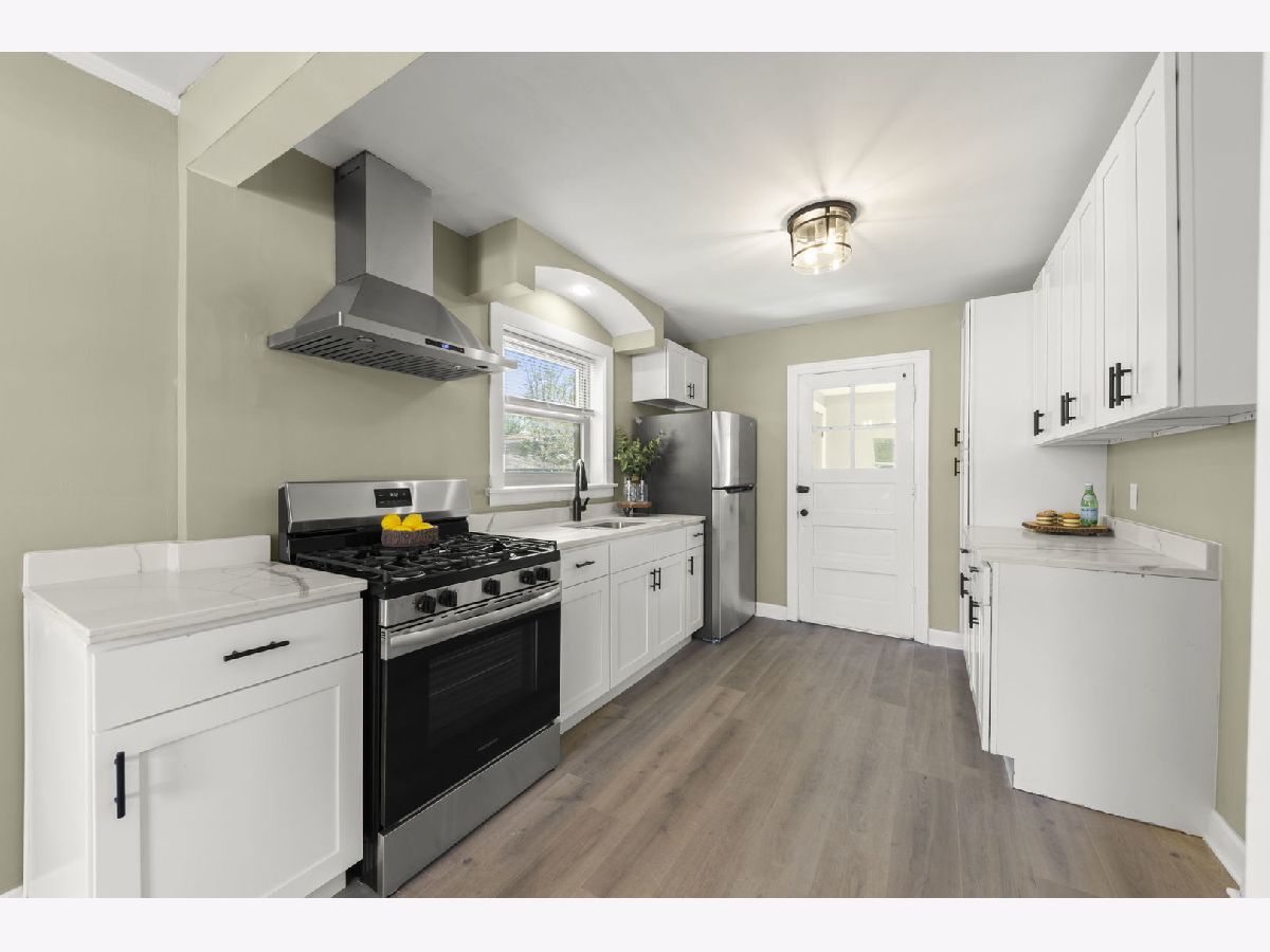 Beautifully updated Cape Cod house on a quiet, tree-lined dead-end street in the heart of Marquette Park! This spacious 3+2-bedroom, 1.5-bath home blends classic charm with modern upgrades throughout. Step inside to find all-new luxury vinyl plank flooring, fresh paint, and an updated kitchen featuring white cabinetry, quartz countertops, and stainless steel appliances. Just off the kitchen, enjoy a cozy four-seasons room/nook-perfect for morning coffee or a relaxing reading spot. The fully finished basement offers extra living space, ideal for entertaining, working from home, or multigenerational living. Major improvements include NEW PLUMBING (2025), NEW ELECTRICAL (2025), WINDOWS (2020), and HVAC (2020). Sitting on an extra-wide, fully fenced lot with a 2-car garage, this move-in-ready home offers both comfort and convenience in a fantastic location near parks, schools, and public transportation!