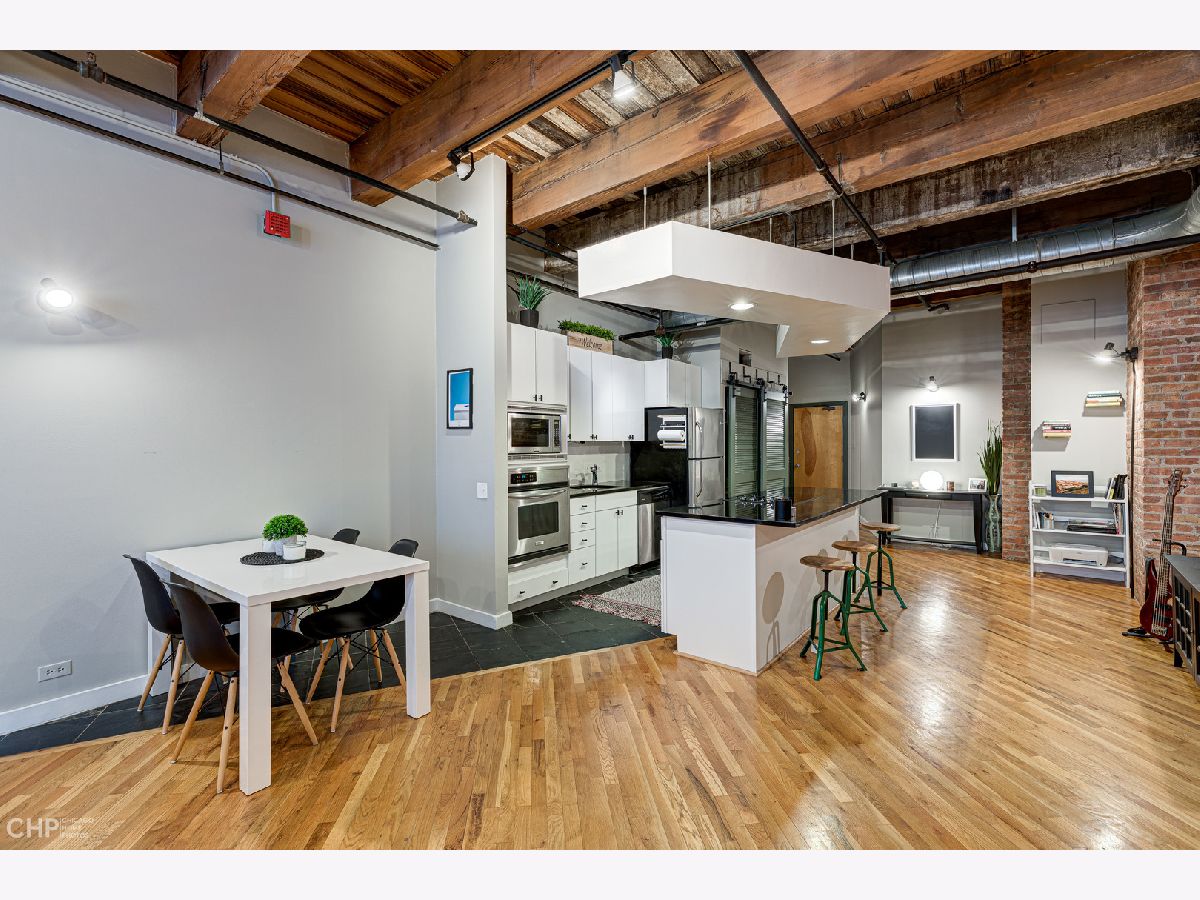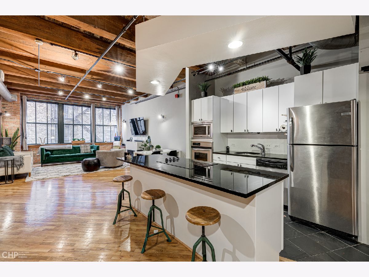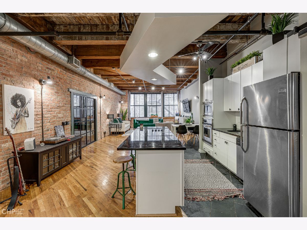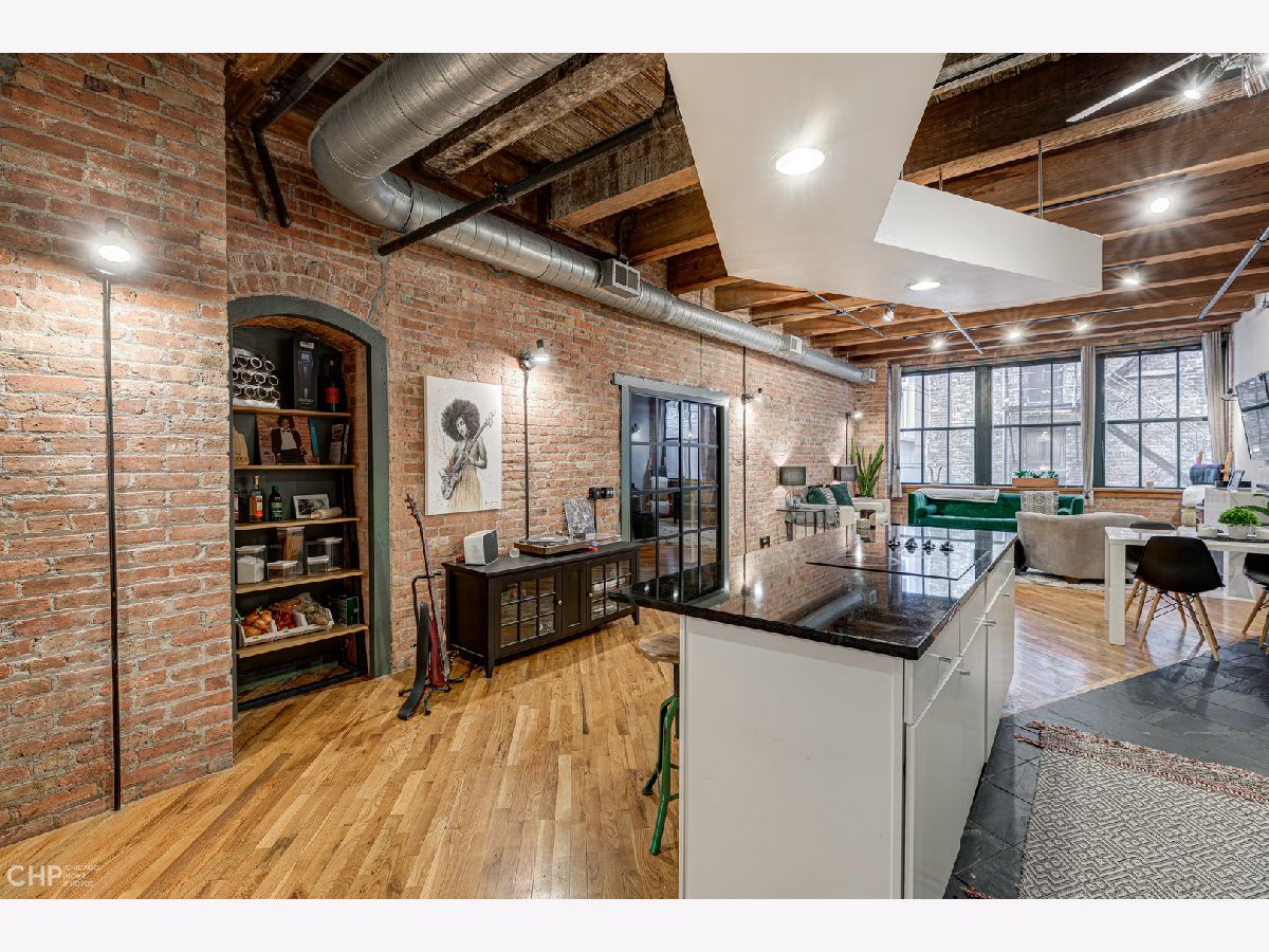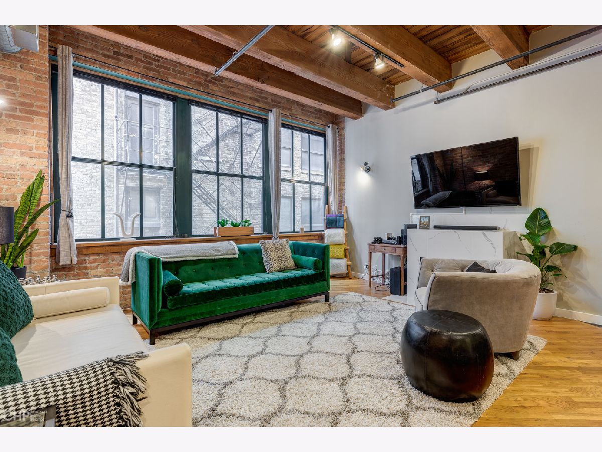 Expansive 1 bedroom timber loft loaded with charm. Timber beams, exposed brick, alcove with custom shelves, ~12 ft ceilings, new custom bedroom door, fully enclosed bedroom, hardwood floors, large windows, gas fireplace, stainless steel appliances, w/d in unit, open kitchen. Walk to CTA, Grant Park, restaurants, Roosevelt Collection, and more. Garage rental parking available.