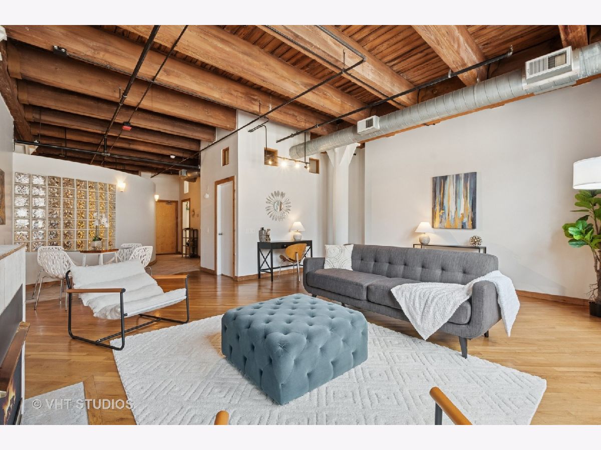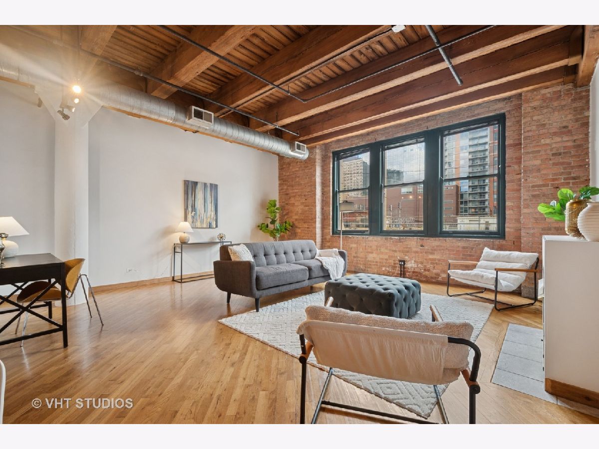 WALK TO ALL THAT THE SOUTH LOOP/PRINTERS' ROW HAVE TO OFFER INCLUDING SOUTH LOOP ELEMENTARY SCHOOL, THE LAKE, ROOSEVELT COLLECTION, DEARBORN STATION, RETAIL & RESTAURANTS ON CLARK AND PUBLIC TRANSPORTATION (REDLINE/METRA) FROM THIS LARGE 1BD/1BTH EXTRA WIDE (20FT) TIMBER LOFT LOCATED IN ALL BRICK/LIMESTONE BOUTIQUE ELEVATOR HISTORIC BUILDING, FORMER PRINTING PRESS. GRACIOUS FOYER LEADS TO MASSIVE GREAT ROOM (LIVING ROOM, DINING AREA AND BONUS OFFICE NOOK) WITH GAS FIREPLACE AND HUGE EAST FACING WINDOWS WITH CITY VIEWS. CRISP WHITE KITCHEN WITH AMPLE STORAGE AND COUNTER SPACE. LARGE BATH WITH TAILORED VANITY AND SOAKING TUB/SHOWER COMBO. PRIMARY SUITE WITH 2 CLOSETS AND ROOM FOR KING-SIZED FURNITURE. EXPOSED BRICKS, TIMBER BEAMS, TALL CEILINGS (11+) AND HARDWOOD FLOORS THROUGHOUT. RARE LAUNDRY ROOM WITH IN-UNIT W/D. ASSESSMENTS INCLUDE INTERNET, ADDITIONAL STORAGE, PROFESSIONAL MANAGEMENT, PART-TIME DOOR-STAFF AND WATER. RENTAL PARKING NEXT DOOR AVAILABLE AND PERMIT STREET PARKING. SEE THE VIDEO WALK-THROUGH TOUR NEXT TO PHOTOS!!!