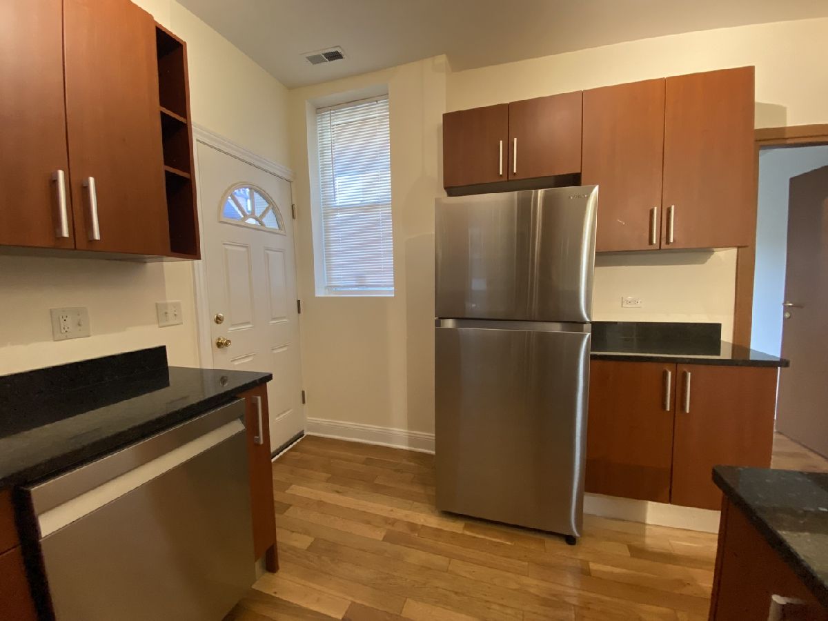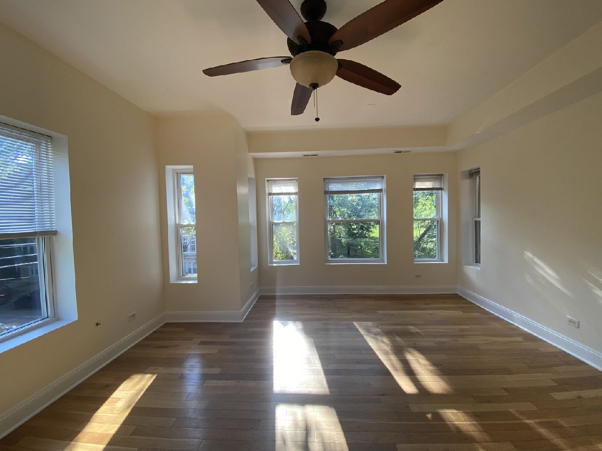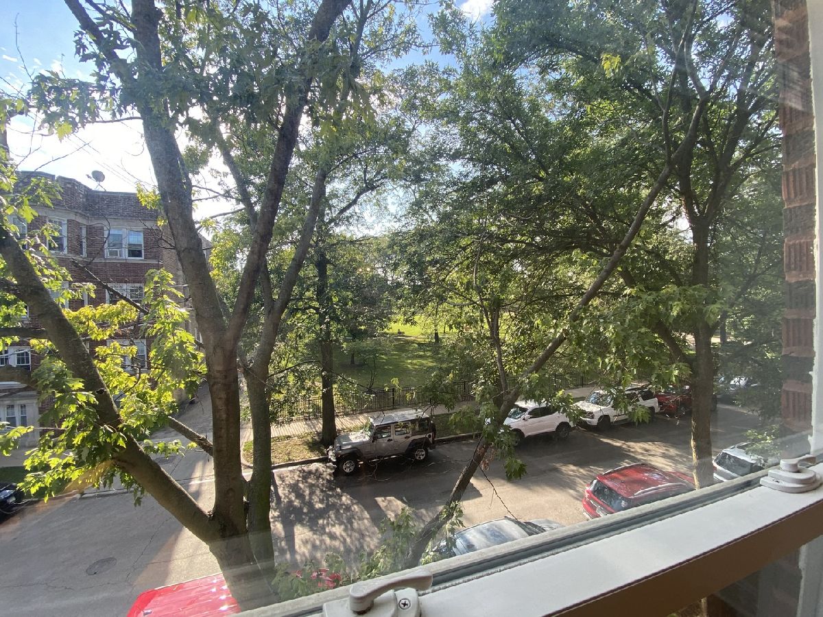 Gorgeous bright corner unit overlooking tree-scaped Touhy Park. Large 3 bedroom and 1 bath unit with new rehab in 2006 featuring modern cabinetry, granite countertops, and stainless steel appliances. Big living room and dining room combo. In-unit washer and dryer. New electric, plumbing, and windows during rehab. Beautiful hardwood floors throughout. Easy street parking.