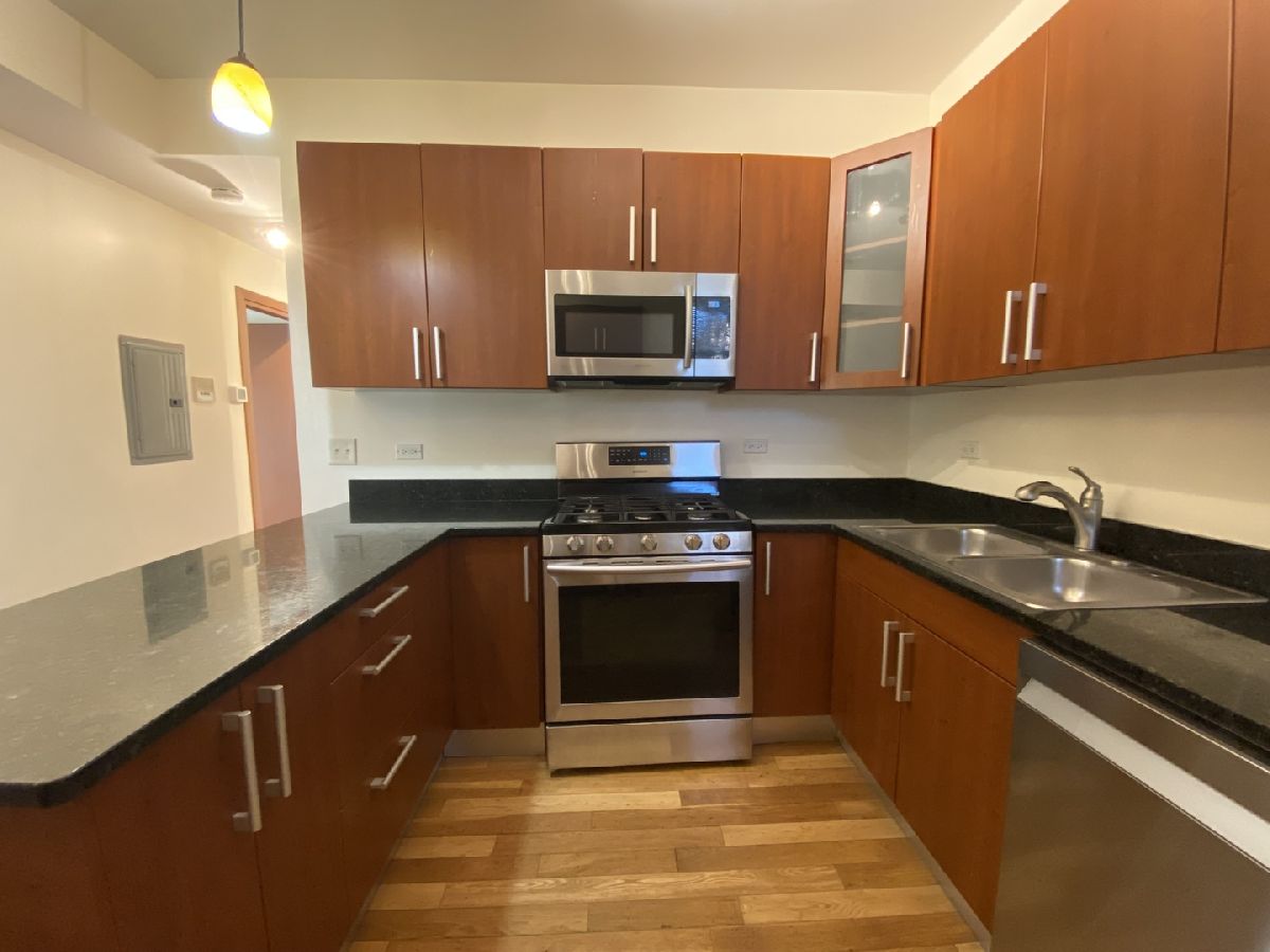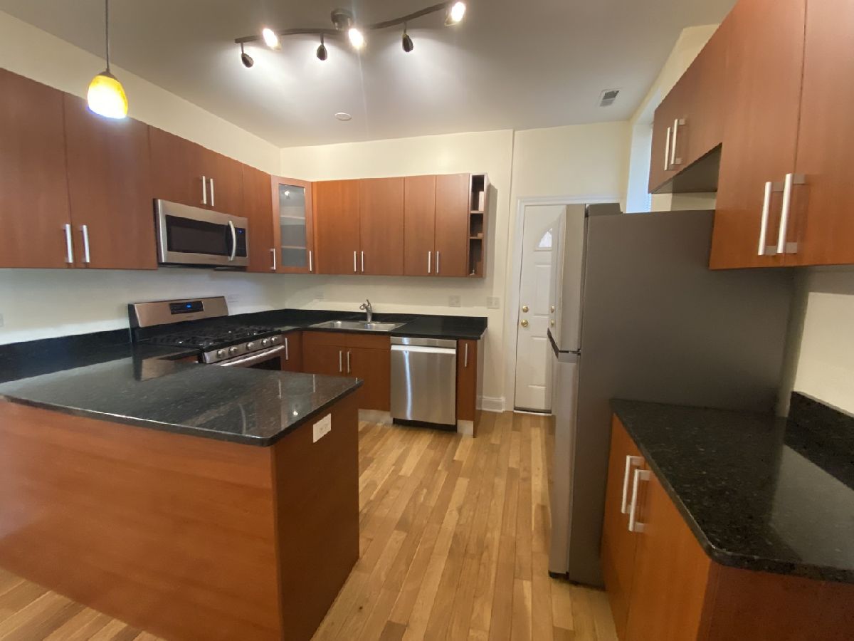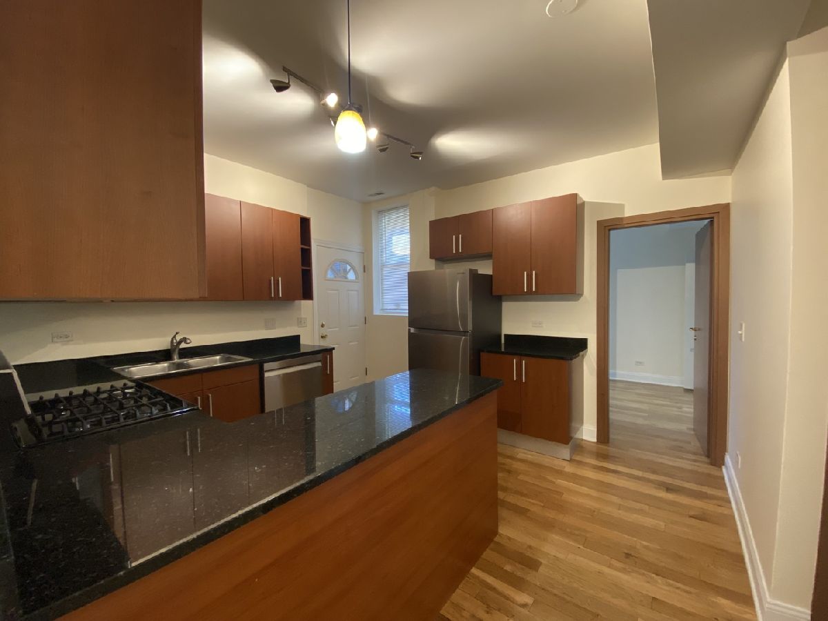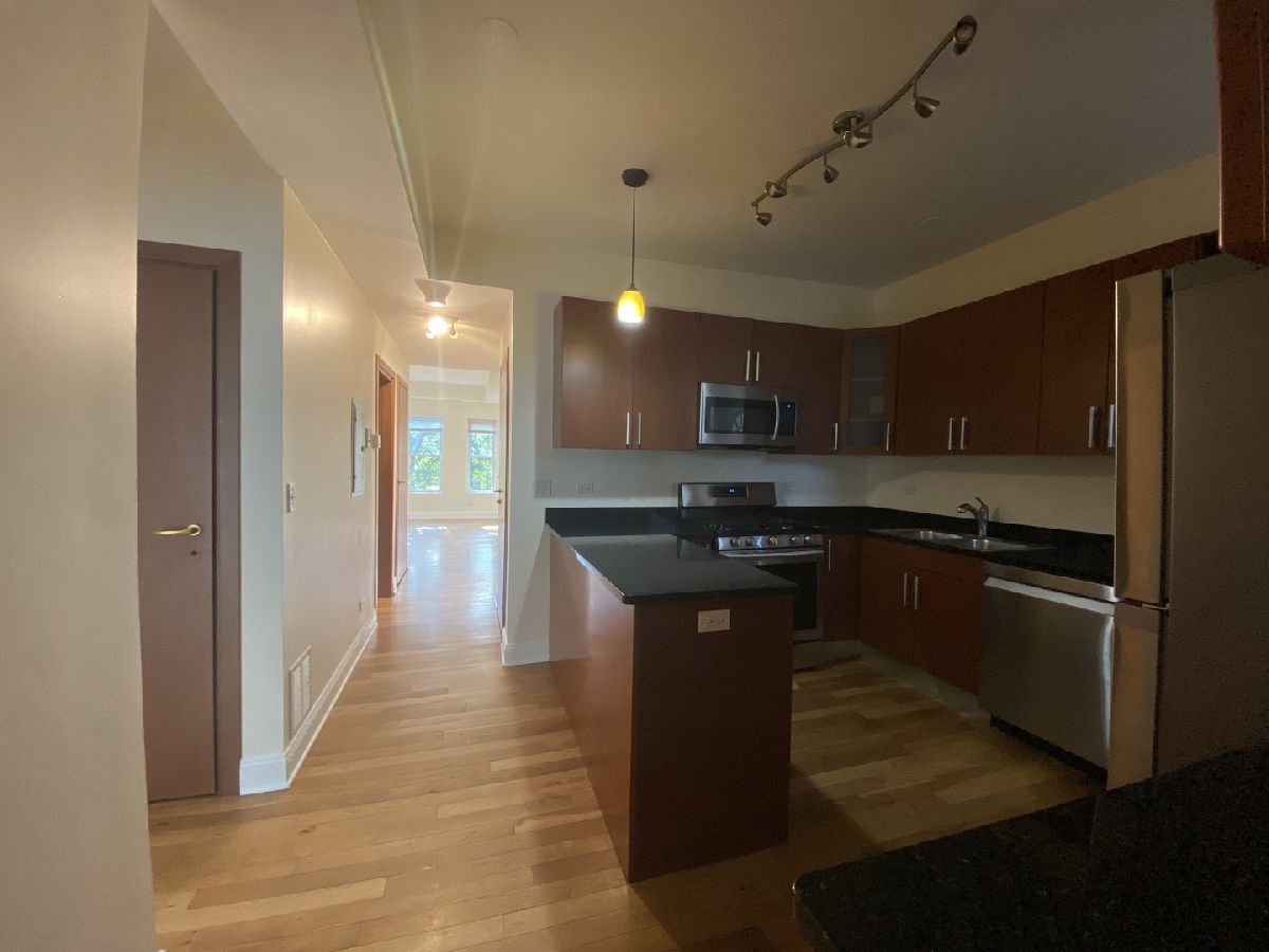 Gorgeous bright corner unit overlooking tree-scaped Touhy Park. Large 3 bedroom and 1 bath unit with new rehab in 2006 featuring modern cabinetry, granite countertops, and stainless steel appliances. Big living room and dining room combo. In-unit washer and dryer. New electric, plumbing, and windows during rehab. Beautiful hardwood floors throughout. Easy street parking.