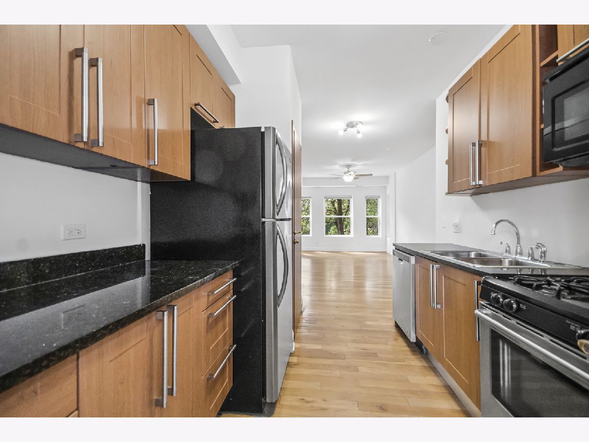 Spacious, Contemporary 2-bedroom plus office with unobstructed view of Touhy Park! This home offers convenience, comfort, and modern finishes that are sure to impress. Step inside and be greeted by fresh paint throughout, creating a bright and inviting atmosphere, making it Move-In Ready. The open concept layout showcases beautiful, gleaming hardwood floors that flow seamlessly from the living areas to the kitchen. The Modern kitchen has Stainless Steel appliances, Italian imported cabinets with plenty of granite counterspace for prepping your gourmet meals. Enjoy the convenience of an in-unit a full-size washer and dryer. The king-sized primary bedroom offers a tranquil retreat, featuring a large closet providing ample storage. A private office nook allows for a dedicated workspace, baby room, or reading area. This condo comes with central air and forced air heating for optimal climate control. Street parking is not too difficult. Rental parking at the CTA lot is 2 blocks away, for 1 night or monthly. Great for guests, too. One of the major highlights of this property is its fabulous location. Some advantages of the location of the condo is the proximity to transportation to downtown, to Evanston, the colleges, and Metra to the north shore and even Milwaukee. Ideally situated across from Touhy Park with Tennis Courts, and field house and often you can enjoy 'movies in the park", too. You can enjoy easy access to Red and Purple Line CTA, Metra trains, cafes, restaurants, grocery stores, Rogers Park Fruit Market and the easy access to the Lake and beach. Be sure to stop by Jarvis Square, and enjoy a bagel and coffee at Charmers or Al Fresco dining at R Public house, or have a cold one at Jarvis Tavern. Don't miss the opportunity to make this condo your own. Remember, It's Always Cooler by the LAKE!