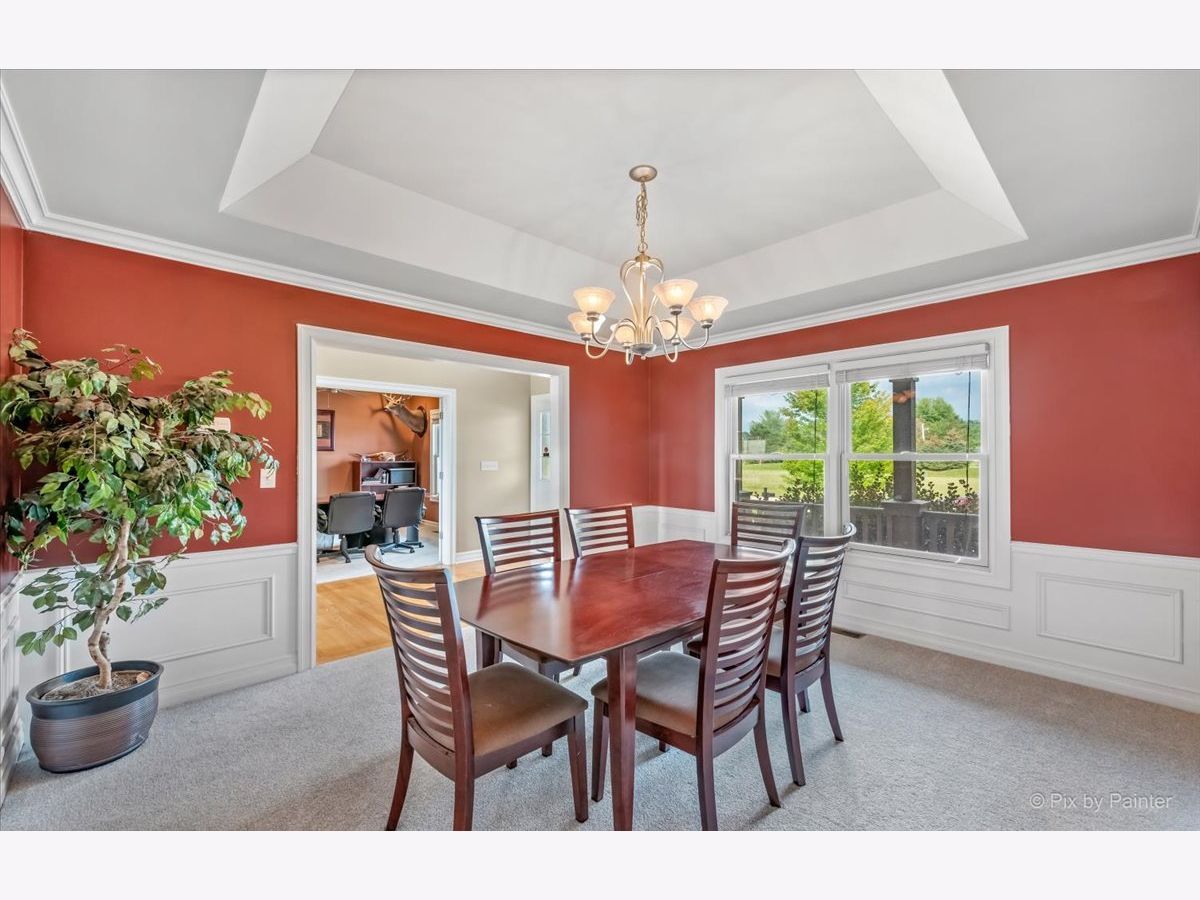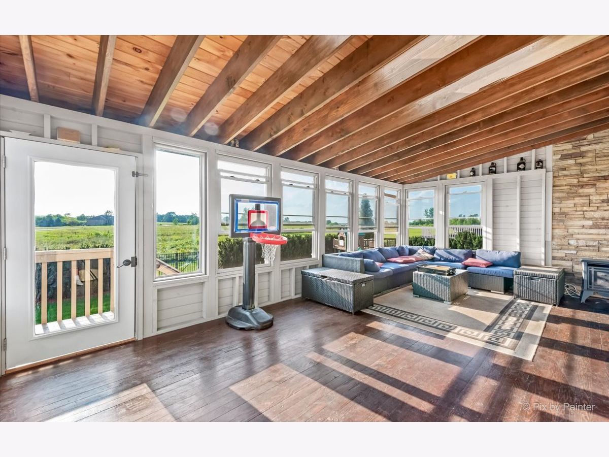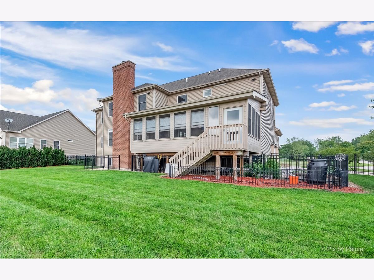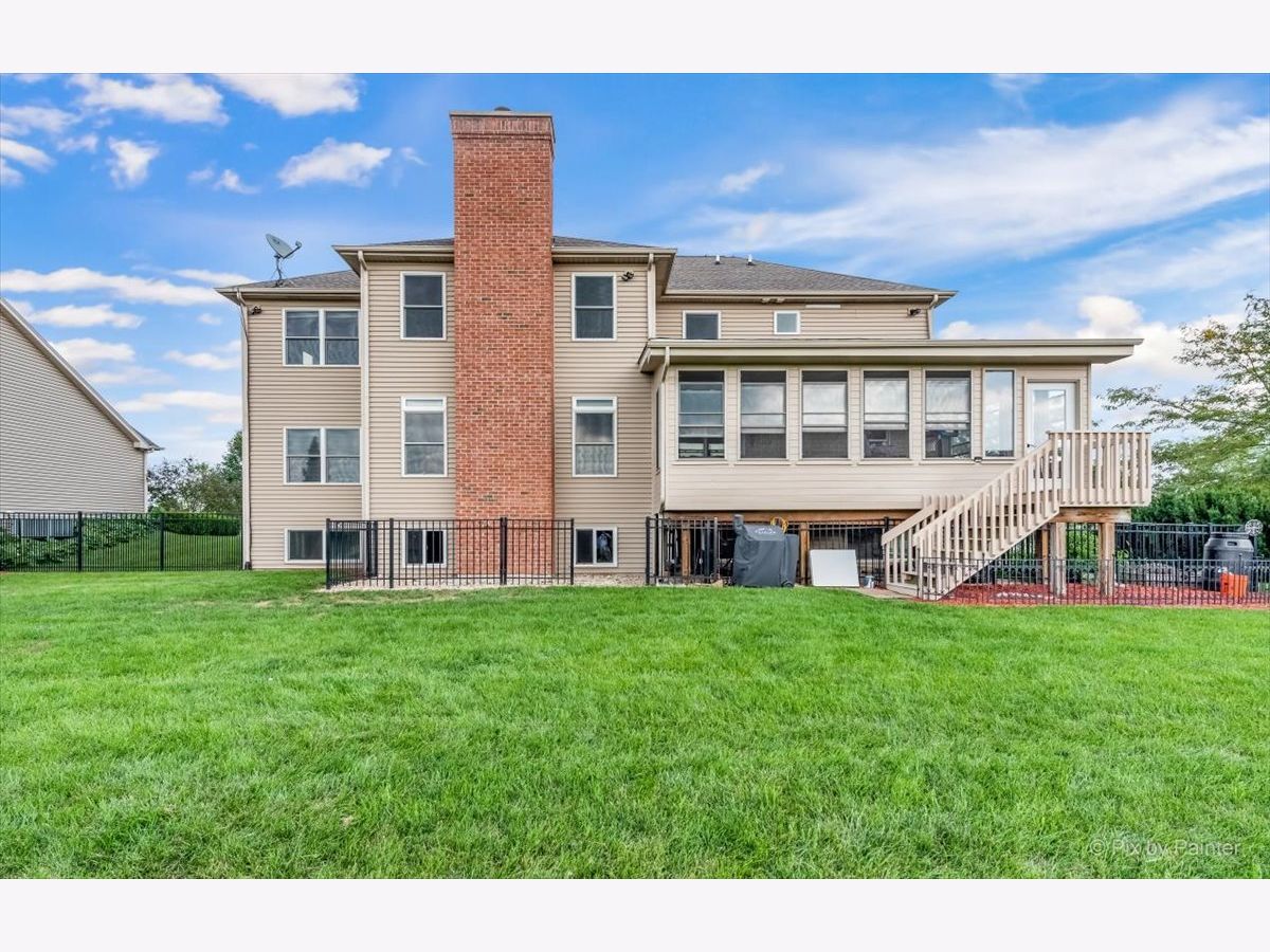 Fabulous 4,200 sq/ft 5 bed, 4 bath semi-custom previous builders model home with finished English basement and fenced yard. Open concept kitchen with ample cabinets, Corian counters, stainless steel appliances, breakfast bar and pantry with sliders to an amazing 3 seasons room and deck area. Incredible two-story foyer and family room with dramatic floor to ceiling stone fireplace, separate dining room with crown molding and tray ceilings, living room with French doors, main level bedroom/office, full bath and mud room off garage. 9' ceilings on main level! Spacious master bedroom with sitting area and dual closets, attached onsuite full bath with jetted tub, walk-in shower and dual sinks. Down the hall is a Jr master suite with onsuite full bath, 2 additional sizeable bedrooms, a full bath and conveniently located laundry room. The English basement is finished with a huge recreation room, additional bedroom and tons of storage space. Inviting front porch that says welcome home! Attached 3 car garage for all your toys and huge fully fenced yard with dog run. Dual zoned heat/a/c. Country living at it's best yet only minutes to I90.