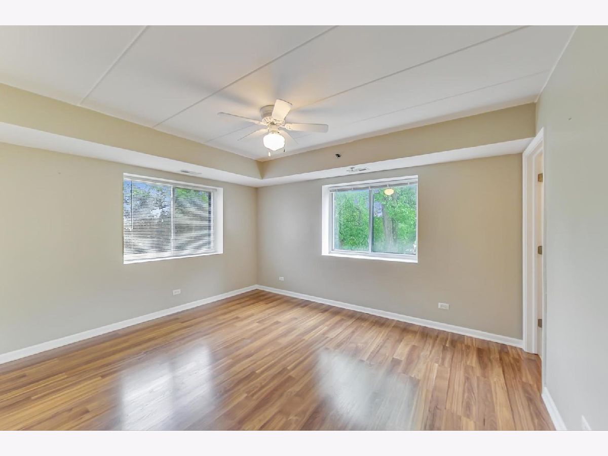 Unit 4D is meticulously maintained and has a peaceful view overlooking the forest preserve! Enjoy the outdoors from your private balcony! Includes two covered parking spots in the building! Wood laminate floors throughout! Neat, clean and ready to move right in or even rent out if desired. Spacious living room, dining room and kitchen with open concept. Primary bedroom has its own full bath and nice walk-in closet, second bedroom is spacious and has easy access to additional hall bath. In-unit laundry and tons of storage including a personal storage unit. Assesments include everything except electric/cable. Convenient elevator for easy access to your unit, storage unit and lower level parking. Great location close to everything including shopping, restaurants, highways, splash park and so much more! These units go quick!