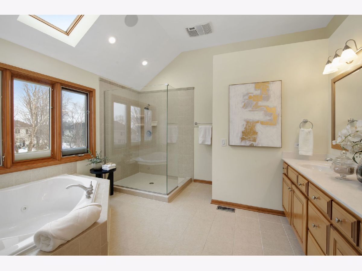 Custom brick front estate in Batavia's highly sought-after Prairie Trails South, just steps from Wind Energy Park and minutes from Batavia's acclaimed shopping, dining, and entertainment, with convenient access to I-88 and top-rated District 101 schools. From the moment you arrive, the welcoming front porch and professionally landscaped grounds set the tone for this refined yet inviting residence. Inside, the stunning two-story foyer with hardwood floors opens to a spacious, freshly painted main level (2026), filled with natural light from energy-efficient Pella windows throughout. Flanking the foyer are formal living and dining rooms, both highlighted by transom windows. The elegant dining room features detailed millwork, a tray ceiling, and a sun-filled bay window, while the formal living room offers French doors and plush new carpet (2026) that connect seamlessly to the family room. The gourmet kitchen is thoughtfully designed with freshly painted white cabinetry (2026), brand new backsplash and light fixtures (2026), a large island with seating, stainless steel appliances, and a butler's pantry. The adjacent eat-in area offers picturesque backyard views and flows effortlessly into the inviting family room, where a brick fireplace creates a warm gathering space and a large bay window fills the room with natural light. A convenient first-floor bedroom, full bath, and laundry room complete the main level. Upstairs, the luxurious primary suite boasts a tray ceiling, a sitting area, and a large walk-in closet with custom built-ins. The spa-like ensuite bath features a dual vanity, whirlpool tub, new oversized walk-in glass shower (2025), and a skylight. Three additional spacious bedrooms with walk-in closets share a full bath with dual vanity and tub/shower combination. The fully finished lower level expands the home's living and entertaining options with an expansive theater room, a custom wet bar with granite counters, built-ins, and a wine fridge, and an adjacent game area. A versatile bonus room, perfect for a fitness suite, pairs well with the luxurious full bath featuring a steam shower, body jets, and rain head. Set on a spacious, professionally landscaped lot, the backyard showcases a new brick paver patio perfect for entertaining, abundant open green space for outdoor recreation, and mature trees that provide exceptional privacy. Smart home features include voice-activated automated shades and lighting, Ecobee thermostats, Lutron lighting controls, and professional wiring for whole-house audio with built-in speakers and pre-wired TV locations connected to a central A/V rack. Recent updates include a new Rheem HVAC system with a 10-year warranty (2025), whole-house humidifiers and air cleaners, and new door knobs (2026). This exceptional 5-bedroom, 4-bath home with an attached 3-car garage delivers a premier location paired with peaceful, private living and easy access to Batavia's vibrant amenities, nearby parks, and I-88.