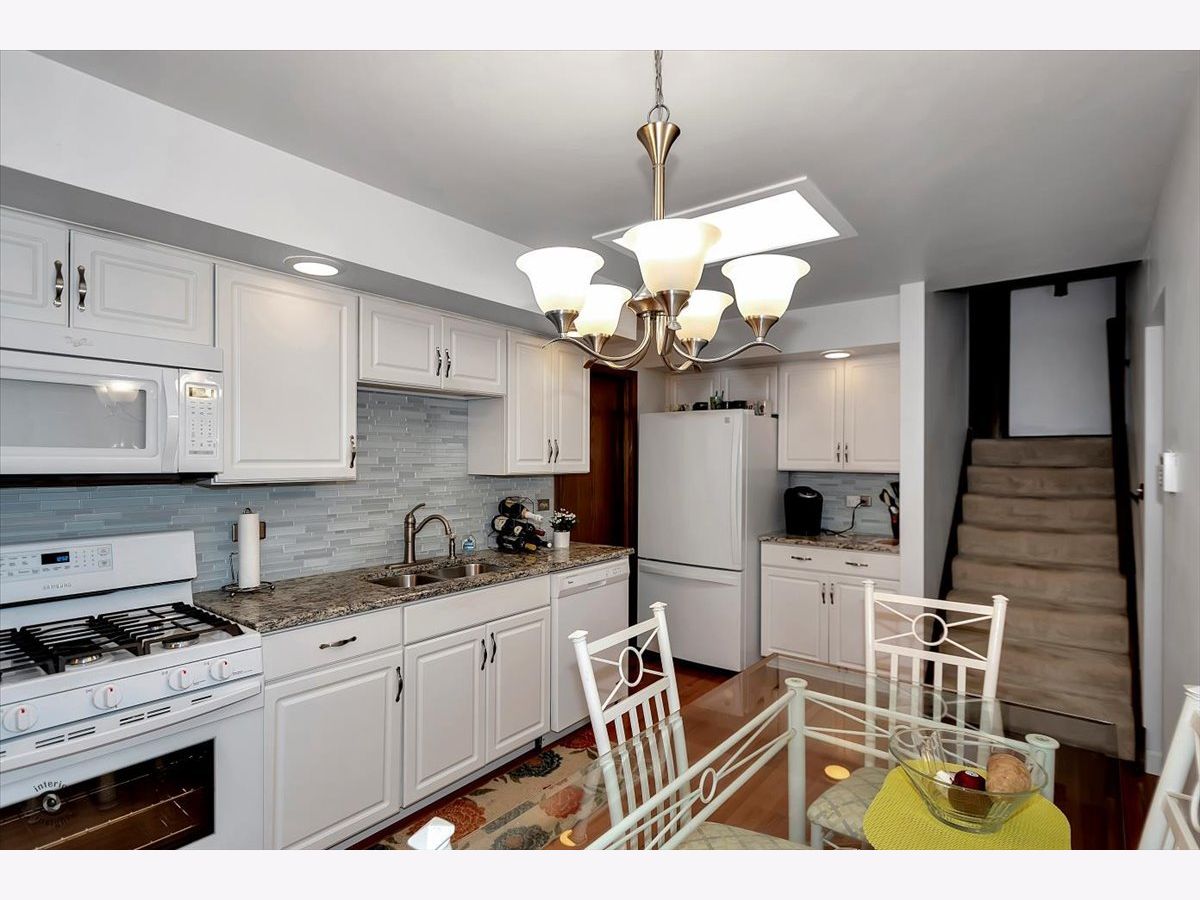 Beautiful hardwood floors on main level. Gorgeous updated white kitchen has glass tile backsplash, granite tops, open to large formal dining room. Step up to 2 good size bedrooms and fresh updated full bath. Lower level family room had fireplace and large family room. Huge laundry room for plenty of storage and access to oversized 2 car garage. Neutral decor . Move in ready! Great location close to may restaurant's, and nature walking/bike trails. Quiet well kept area.