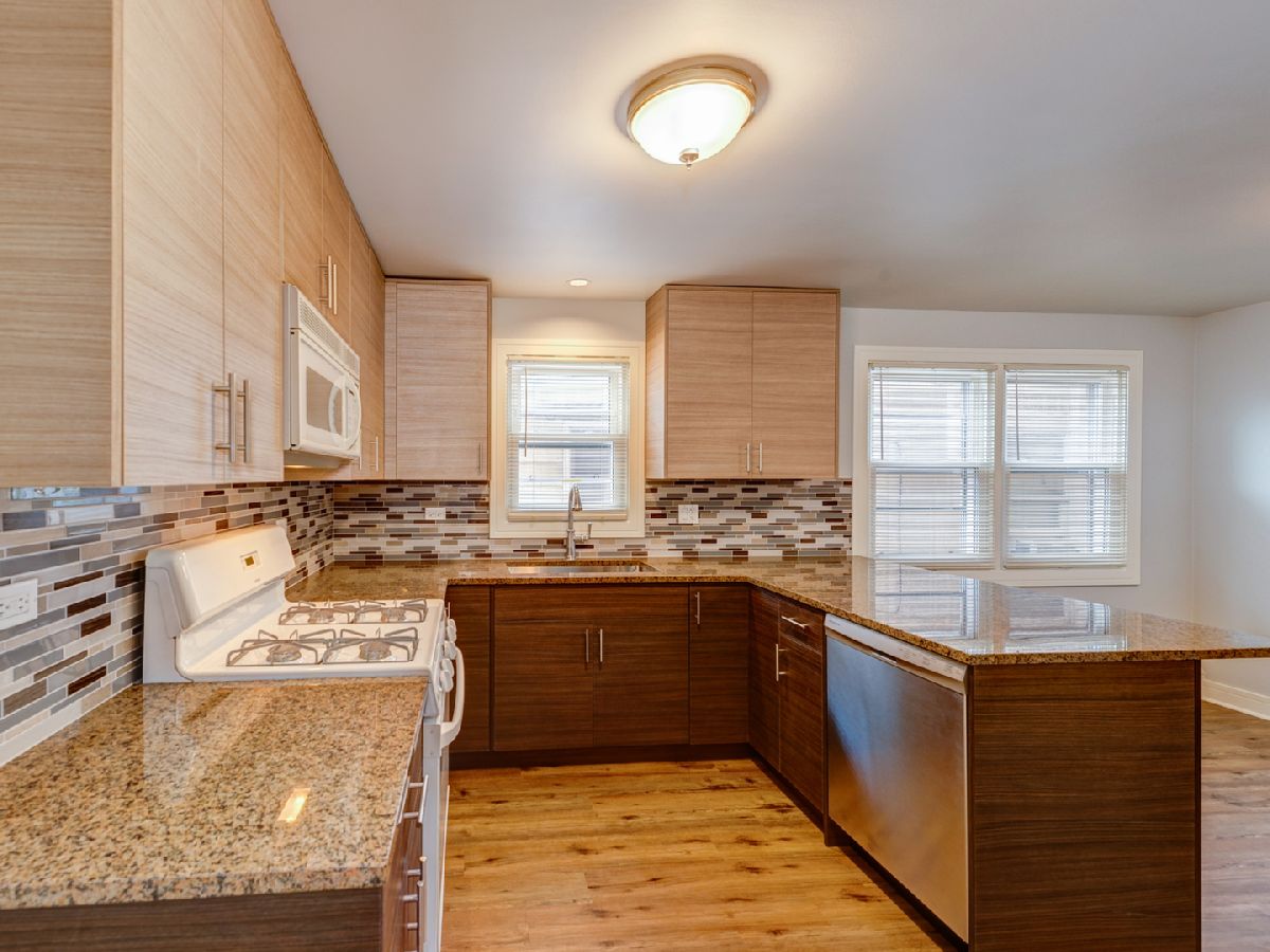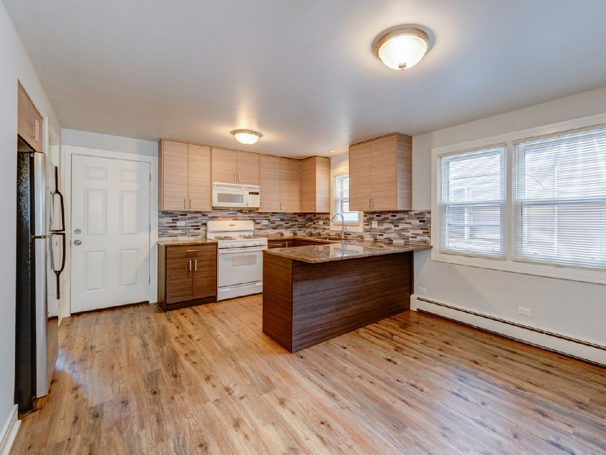 Incredible opportunity to own this beautiful, newly renovated, solid brick 2 flat with garden apartment! The top floor is a large 3 bedroom/1 bath apartment with high end finishes! Eat-in-kitchen with slick and modern dark cabinetry, quartz countertops, glass mosaic tile backsplash, new stainless-steel appliances, spacious living room with large windows, durable wood laminate flooring throughout, new white doors and trims, new windows, bright and fully remodeled bathroom. First floor unit is an identical layout to the top floor unit. Features 3 Bedroom/1 bath, modern kitchen with two-ton cabinetry, granite countertop, newer appliences, SS dishwasher and fridge, durable wood laminate flooring throughout, new bathroom, new windows. Garden Apartment with 2 bedrooms, 1 full bathroom, kitchen and spacious living room with recess lights, new laminate flooring, new white trims and doors, new windows, completely renovated bathroom. Building features a shared laundry in the basement, spacious backyard plus oversized 2 car detached garage. GREAT INVESTMENT!