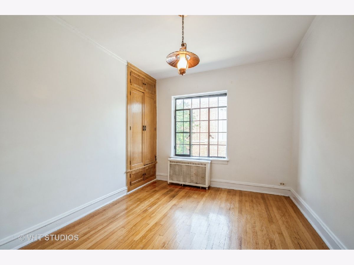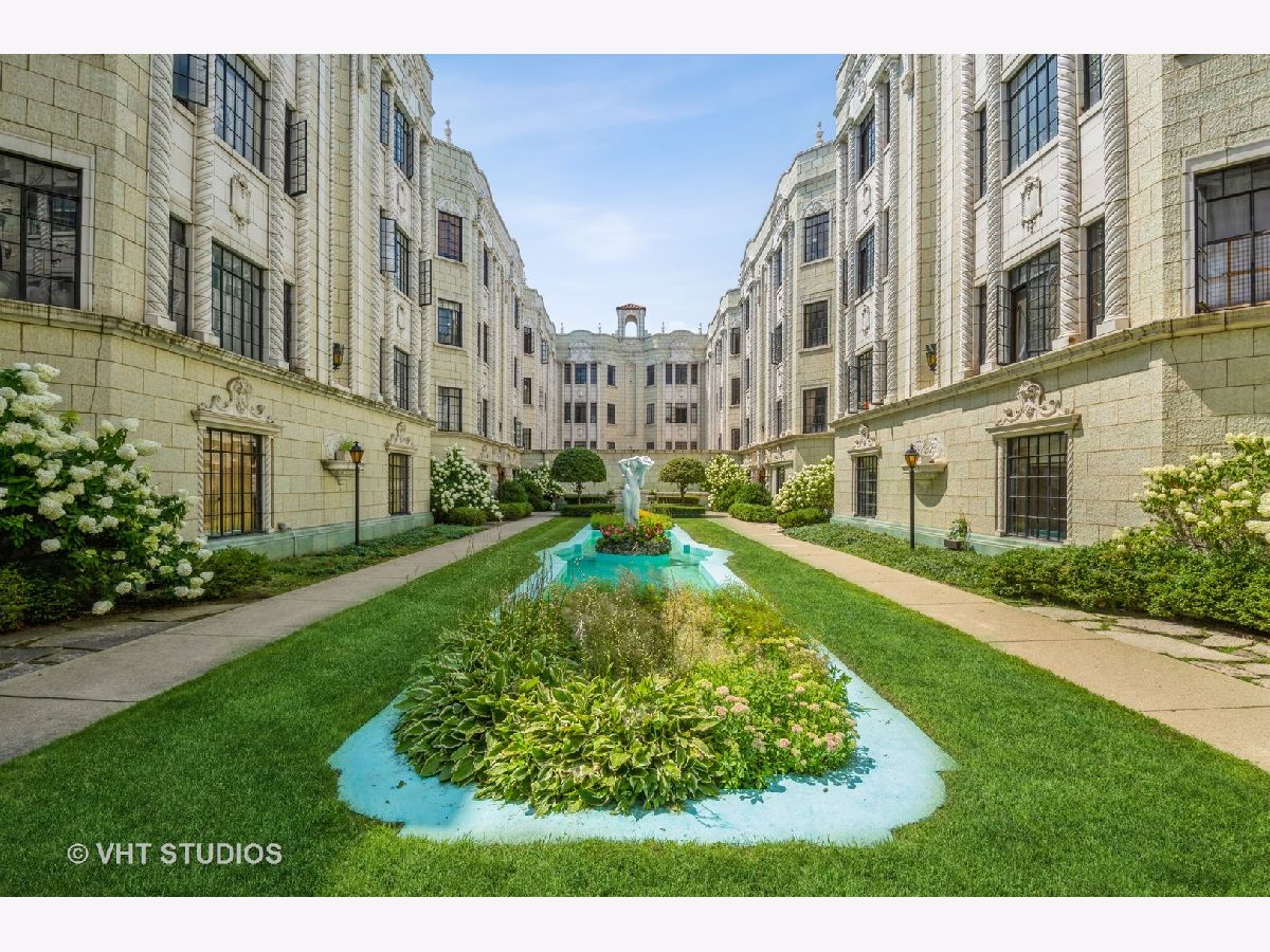 **Rarely Available Architectural Gem--Unit 21B ** Stunning Spanish Renaissance Revival structure built during an era when extra time was invested creating intricate detailing and carvings. Sixty-six units are arranged to maximize natural light and cross-breezes via oversized windows, this U-shaped courtyard building is frosted in white terra-cotta and adorned with the ornamentation of masters from the late 1920s. Still vibrant today due to the vigilance of the homeowners and dedicated maintenance professionals, Casa Bonita is a stunning place to call home. The beauty of the landscaped courtyard and fountain set the stage for what lies inside the doors--exquisite terrazzo floors, heated indoor swimming pool, sauna, steam room, workshop, and billiard room on the main floor draw residents together and pamper them with amenities beyond the scope of most buildings. A staircase with a window leads you up to #21B, and you enter into a spacious 1200 foot unit drenched in southern light through the multiple metal casement windows in the living room. This home still has the living room ringed with thick cove molding and multiple sconces. The ornately carved decorative fireplace anchors the room while leaving ample room for two distinct sitting areas. Past the spacious entryway is a narrow room masquerading as a walk-in closet, but could easily be an office space if needed, or just keep it as an over-achieving closet. The primary bedroom easily holds a king-sized bed and two nightstands on the far wall and leaves room for a double dresser. The primary bedroom has its own door to the full bath which has a fantastic neutral color tile and room for additional storage if desired. The dining room is enormous and can fit an oversized rectangular table making hosting friends and family a pleasure. The second bedroom still has the original built-in clothing cupboard in its natural wood finish and a sunny window that looks out to the trees. The kitchen has room for a bistro table or free-standing kitchen storage cabinet, double casement windows, an original nook, and a door to the back porch. Building runs much higher reserves than other condo buildings which is evident in the exquisite maintenance of the building from the personalized backdoor trash pick up to the award-winning terracotta maintenance. No neglect here! This pet-friendly home is a true two bedroom with oversized living and dining rooms and amenities to match. Close proximity to the culinary delights of Howard & Clark Streets, two gorgeous area parks, the Ravenswood Metra train line, and the express Western bus. Parking is available next door for $125 a month. Do not miss this rare architectural gem designed in 1928 by Alexander Capraro and Morris Komar. Pride of ownership is evident. Schedule to see it now before another architecture buff makes it theirs.