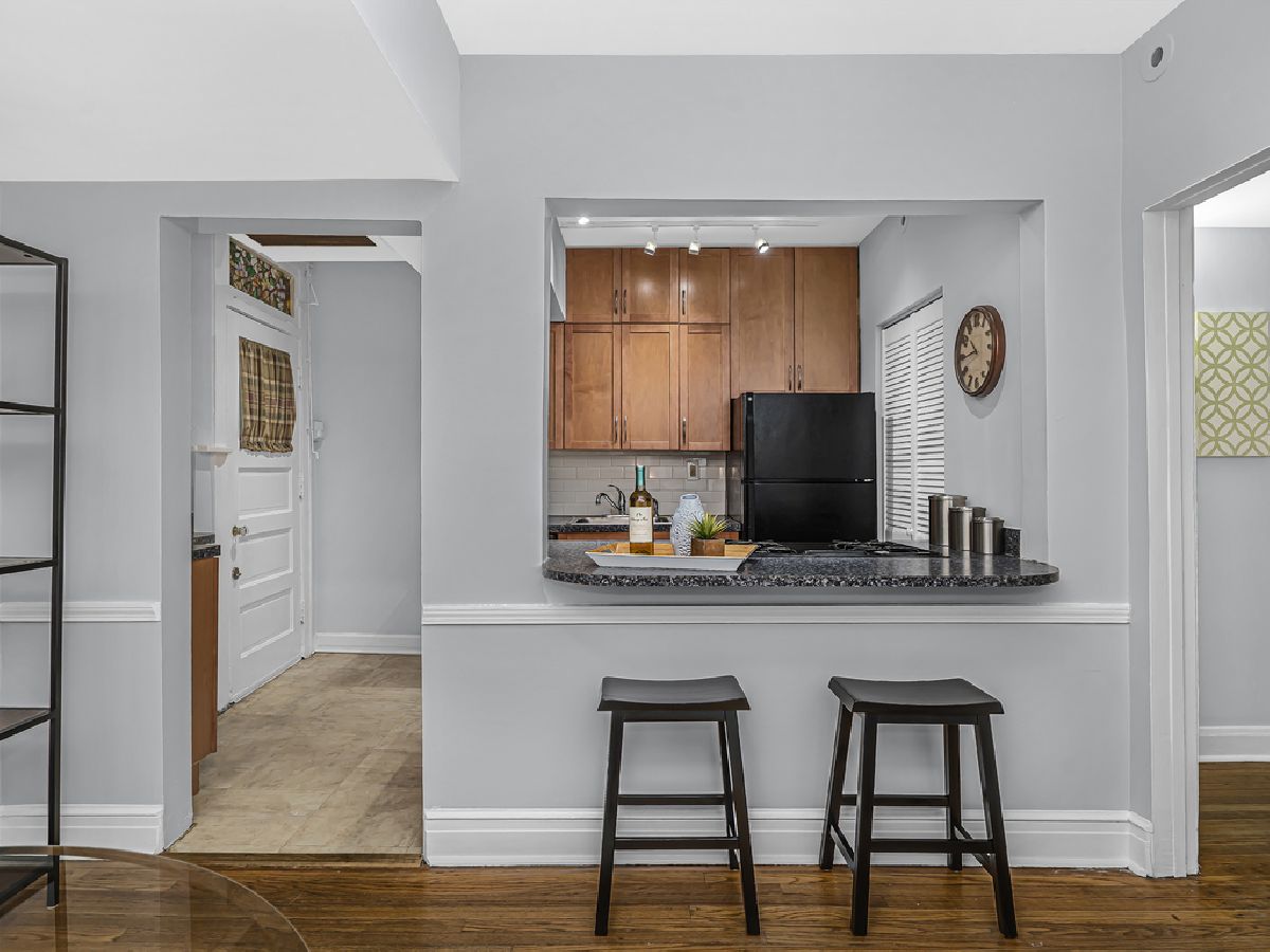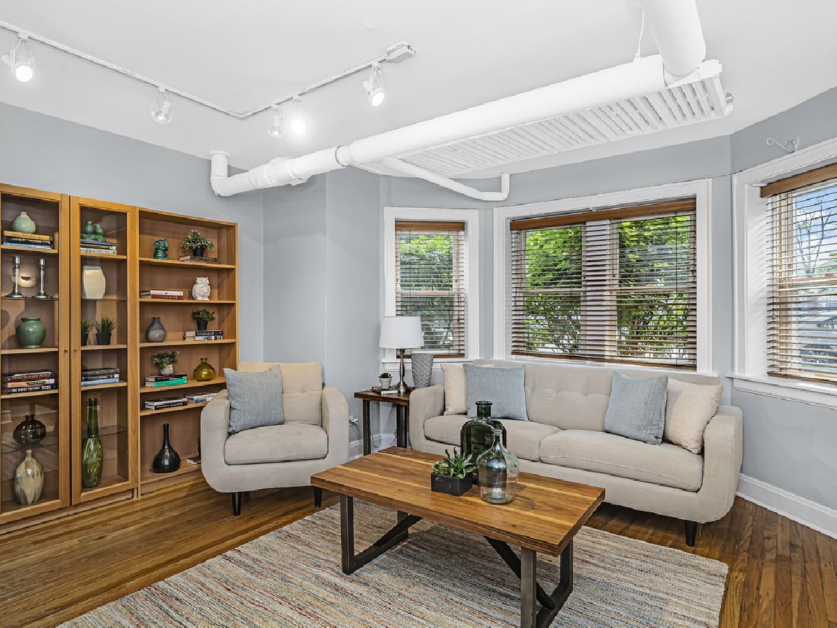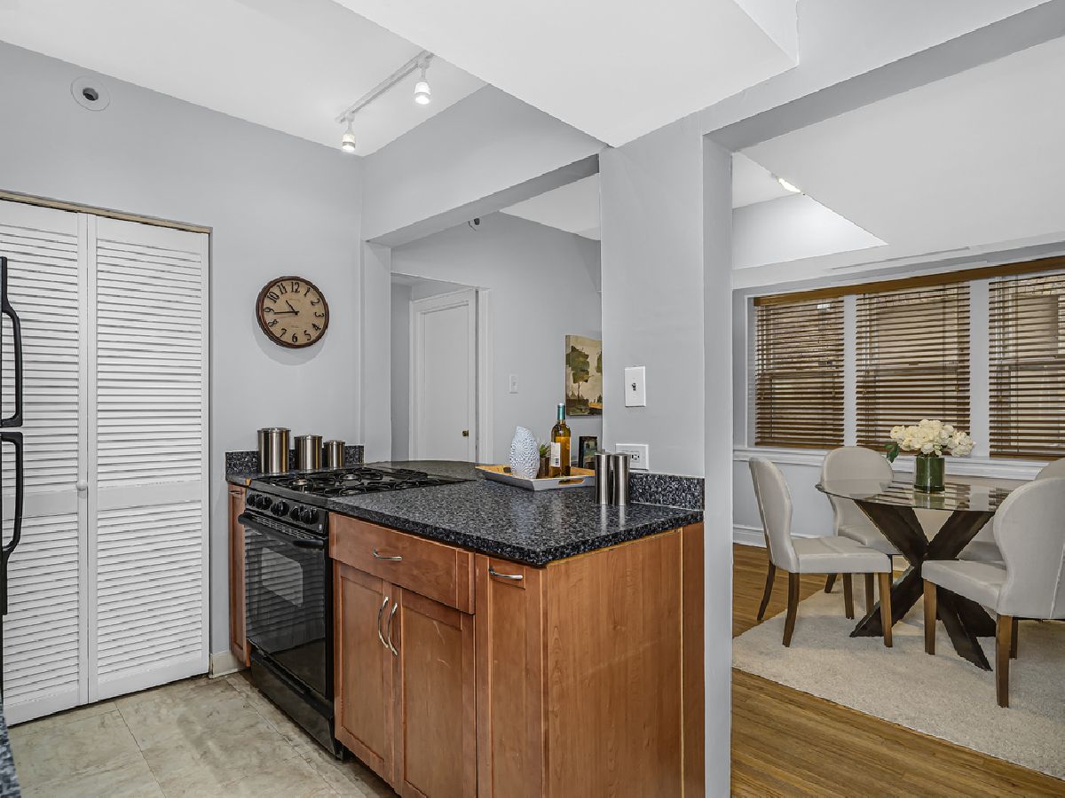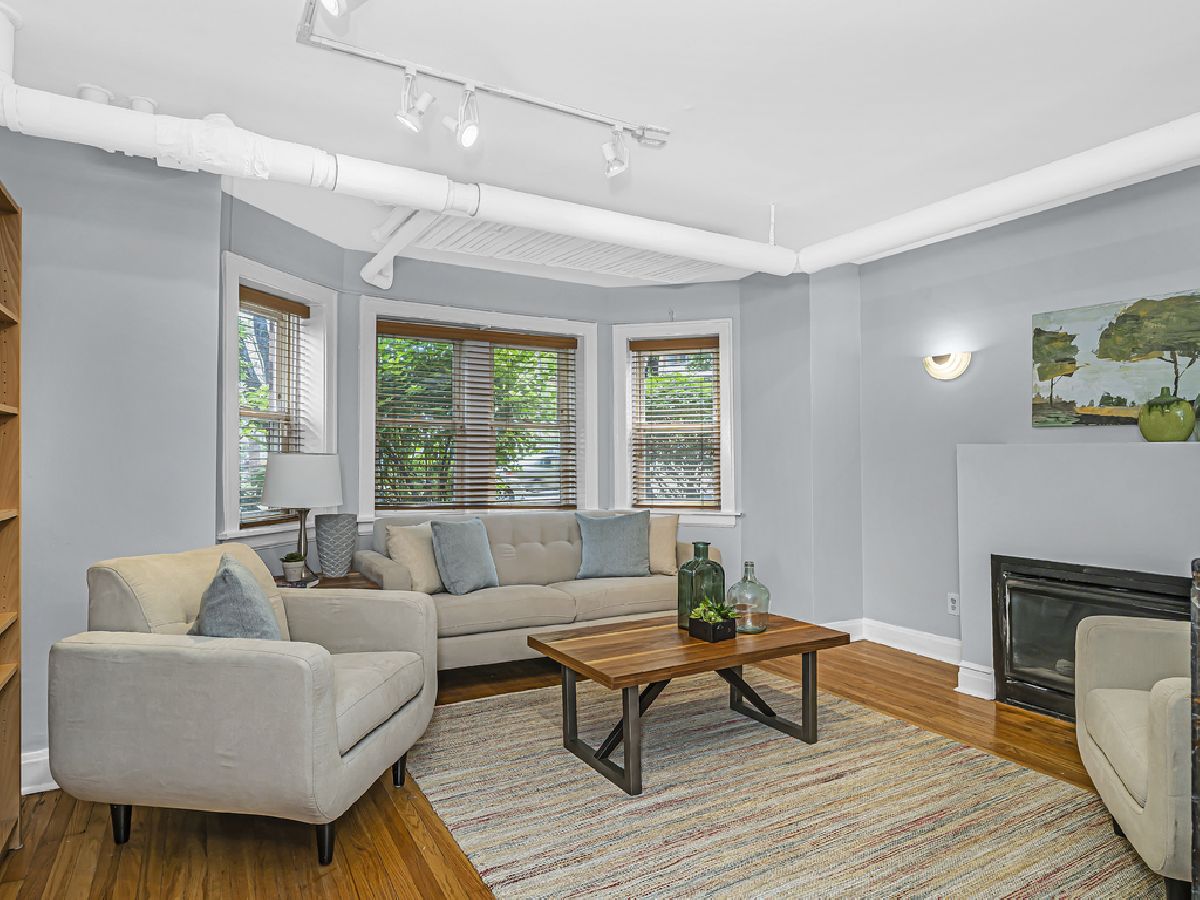 Welcome to this spacious and bright vintage with a modern flair unit in the midst of River Forest & Oak Park's downtown areas! This freshly painted unit features hardwood floors, stylish wood like blinds, central air conditioning, a long foyer with closet for coats/etc, a huge living room with gorgeous light filled bay windows overlooking the garden, an inviting gas fireplace, a large bedroom able to accommodate a queen or king bed, an updated bathroom with refinished tub and additional closet for linens/etc, an open concept kitchen with gorgeous maple cabinets, black appliances, breakfast bar, in unit laundry, a flex room for a dining area and/or in home office space and all leading to a huge common backyard for outdoor enjoyment! The unit comes with a storage locker in the common area and is a short distance to trains, buses, expressway, parking, shops, restaurants, movie theatre, parks & more!