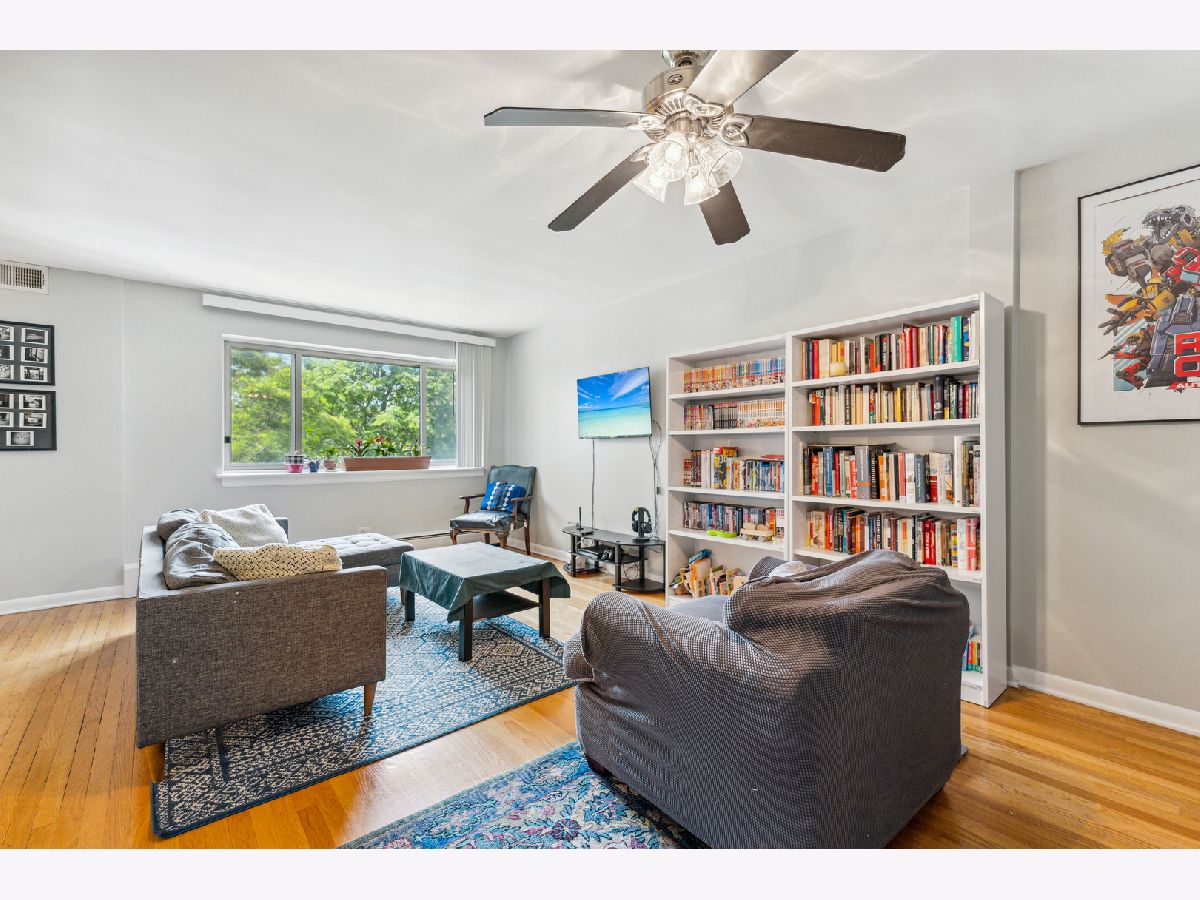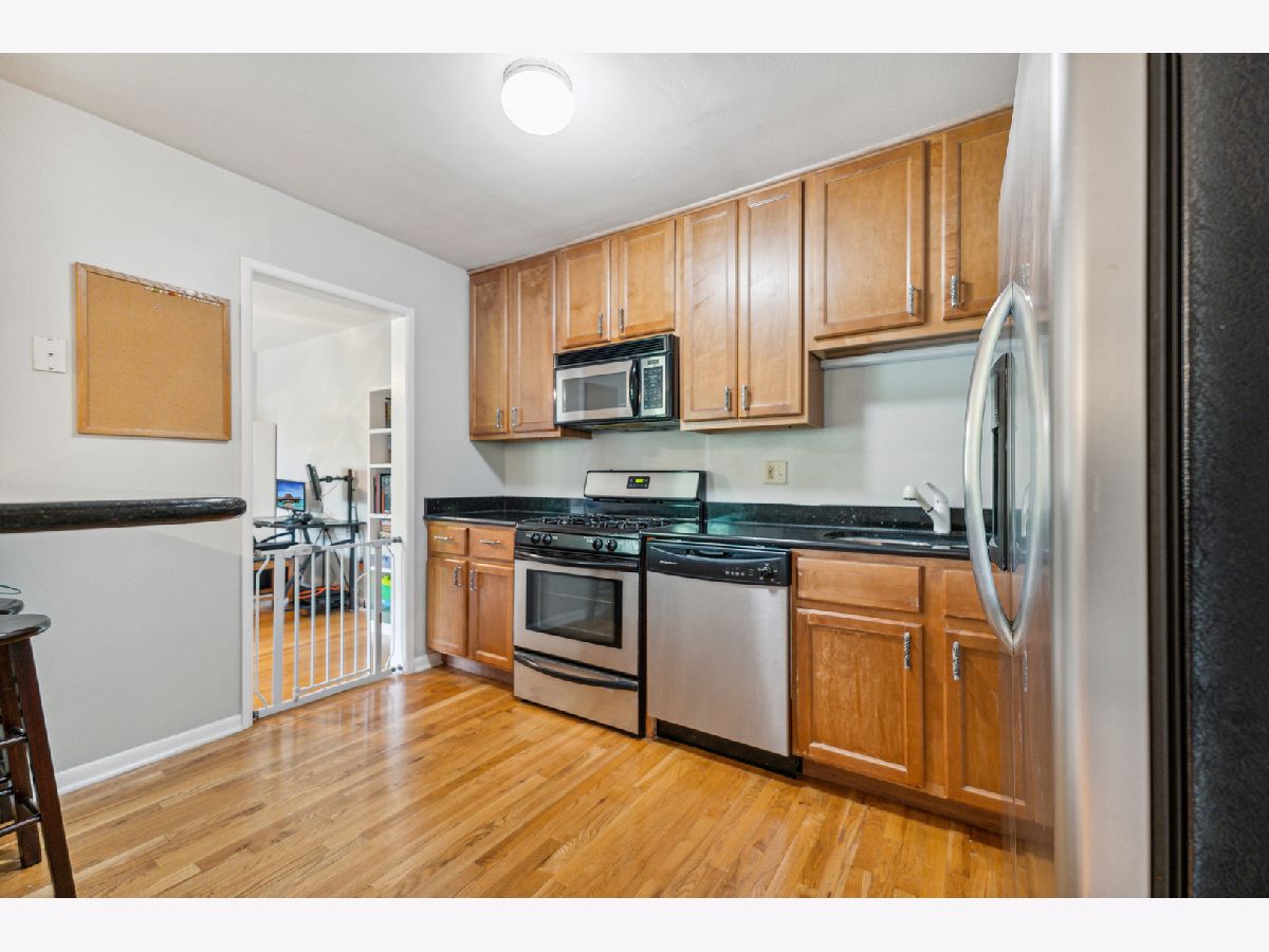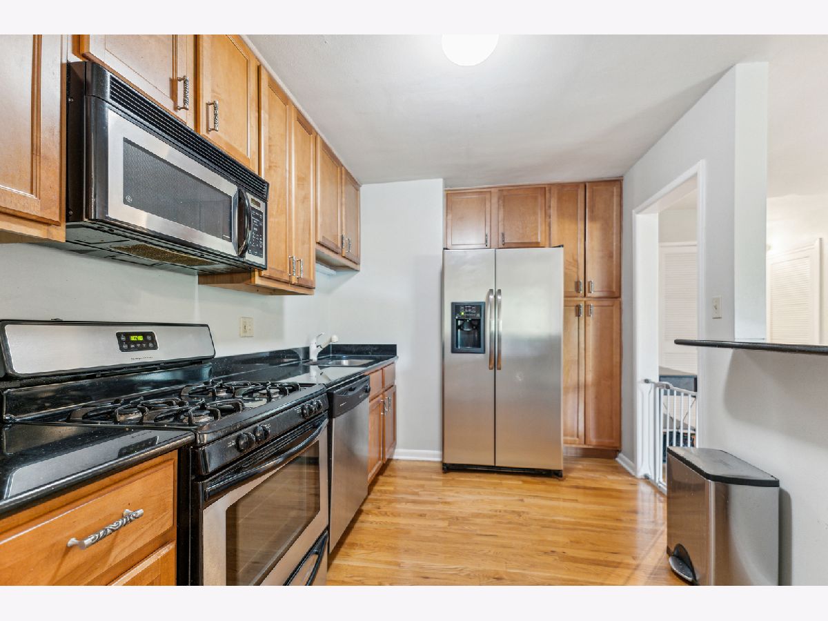 Multiple offers. Best and final Sunday 5 pm. Welcome to this spacious Evanston condo. The kitchen features 42-inch wide maple cabinets to the ceiling, granite counters, and stainless steel appliances. The living room is sunny, and the dining area can seat up to 8, making it perfect for gatherings. Master bedroom with full, updated bath, walk-in closet, and additional storage. The unit has hardwood floors throughout. In-unit laundry is allowed, but the multiunit laundry room in the building is free. The condo has extensive storage, including two separate storage units. New a/c and heat was installed in 2020 throughout the building! Heat, a/c, cooking gas, and more are included in your monthly assessment, adding to the condo's affordability. New plate-glass windows, updated electric w/ new box, and hot water risers were recently updated. This elevator building is located on a lovely residential street, with a park next door. Just blocks to Purple Line, Metra, restaurants, shops, and other amenities. Rental arrangements are permitted after two years of owner occupancy.