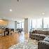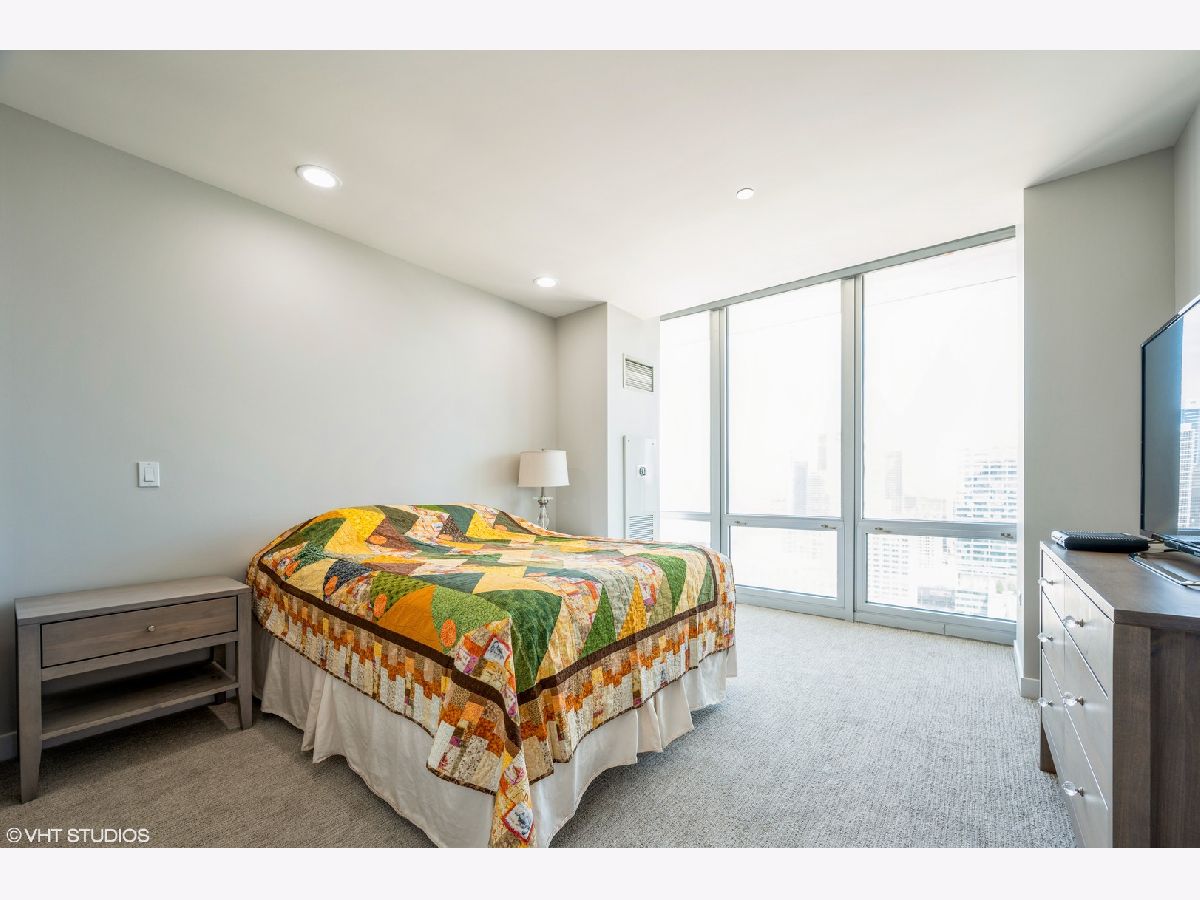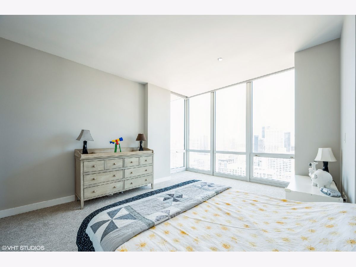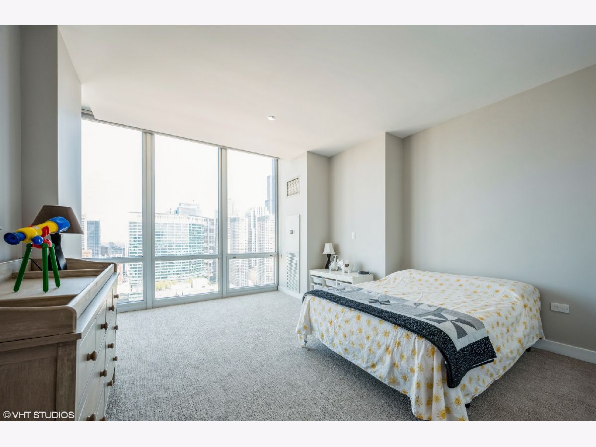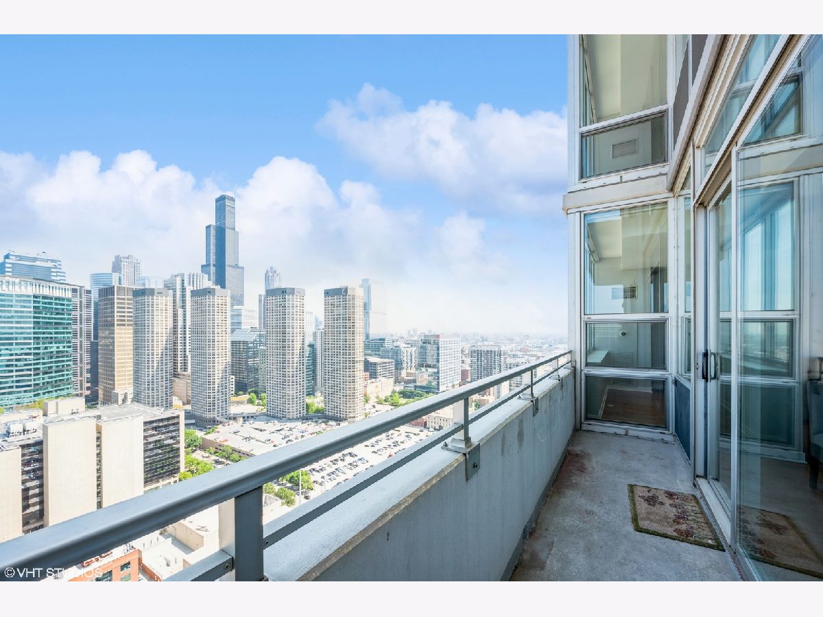 Stunning East facing 2 Bed/ 2.5 Bath rare duplex at Skybridge in the West Loop w/gorgeous, unobstructed panoramic city skyline views from all rooms. Freshly painted with neutral custom colors, custom window treatments and hardwood floors throughout living areas. 1st level has open concept living space with dining room off of kitchen (perfect for entertaining) updated kitchen with 42" cabinets, granite countertops, island, private balcony and powder room. 2nd floor has new carpet and features a spacious en-suite master with large closet and modern bath. Good sized second bed w/modern hall bath. Both bedrooms have panoramic city views. Fabulous unit, will not disappoint. Additional storage unit. Full amenity building with 24 hr doorperson, sundeck (amazing views of the lake and skyline - can be rented for nominal fee for private events), fitness center, on-site management. Building has direct lower level access to Whole Foods. Walk to Randolph and Fulton District restaurants and nightlife. Assessments include, heat, a/c, water and basic cable.
