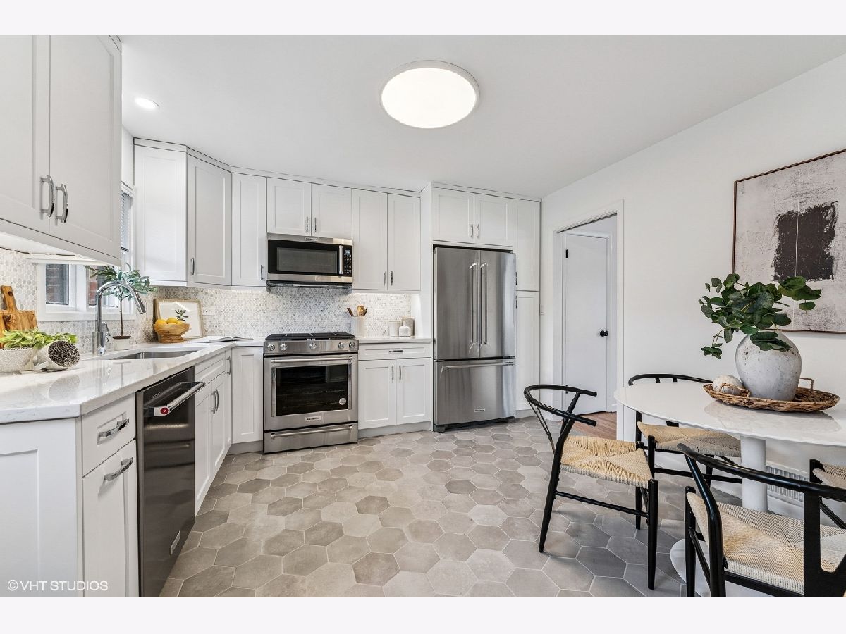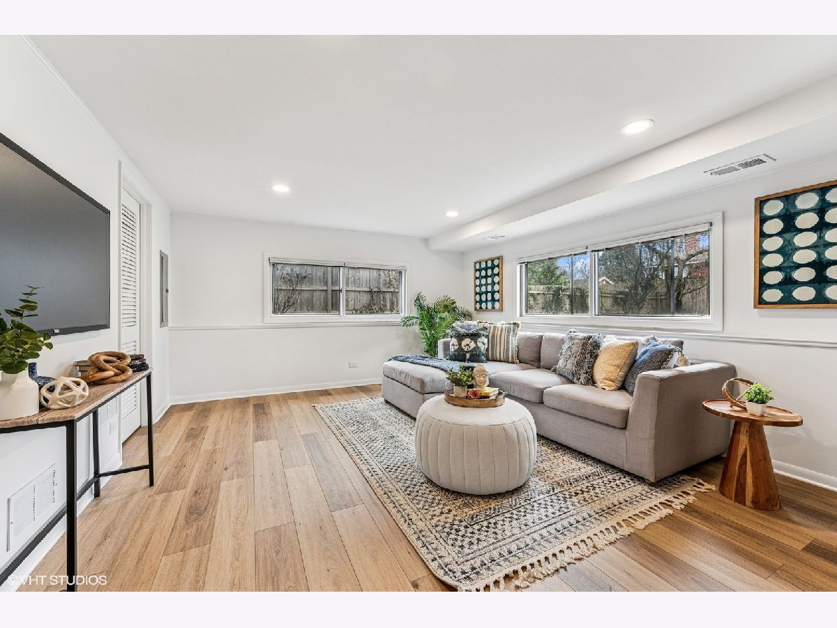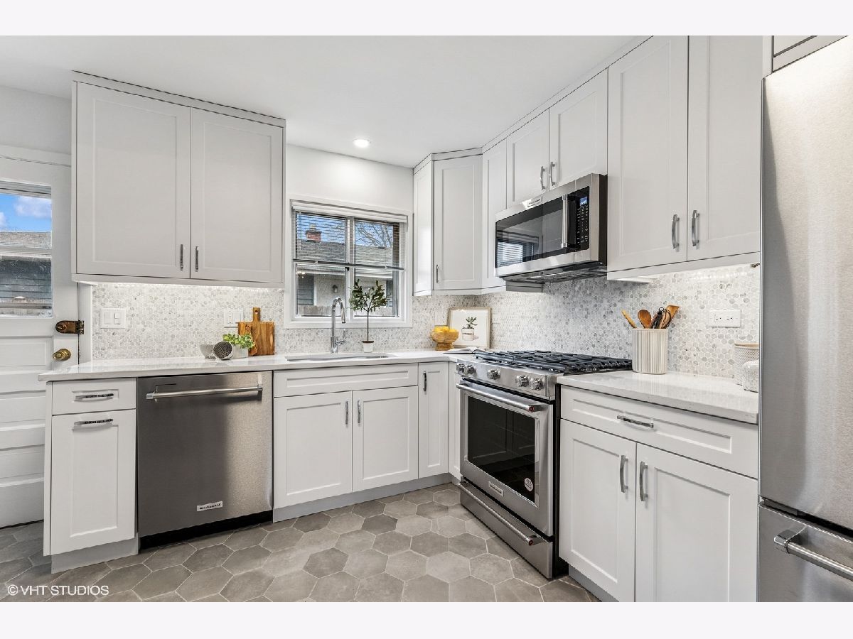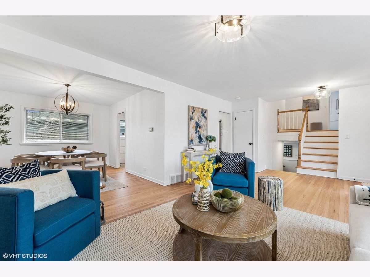 Welcome to this stunning, completely renovated (2024) home located in the award-winning Wilmette School District 39 and New Trier High School system! With 4 bedrooms and 2.5 baths, this sun-filled home blends modern luxury with classic style. You will be greeted by an open floor plan that seamlessly integrates the living and dining rooms. The beautiful living room features a wood burning fireplace with new mantle and hearth. It graciously flows into the spacious dining room, perfect for entertaining. The first floor boasts an open, airy feel, enhanced by hardwood floors, abundant natural light, as well as sleek can lighting. The brand-new chef's kitchen is a showstopper-featuring custom cabinetry, quartz countertops, high-end KitchenAid appliances, a gorgeous tile backsplash, and new tile flooring. Upstairs, the beautiful new bathrooms showcase elegant tilework, new cabinetry, designer faucets, and stylish showers & bath. The primary bedroom includes a walk-in closet for ultimate convenience. Three other family bedrooms complete the second floor. The expansive lower level features a bright and inviting family room, along with a versatile room that can serve as an office or playroom, enhanced with a full wall of built-in bookshelves. All new flooring and renovated powder room add to the appeal of the lower level. Outside, enjoy a large, fully fenced, landscaped backyard with a patio ideal for friend and family gatherings. An attached two-car garage adds convenience. Wonderful Cunliff Park with all its amenities can be found at the end of the block and Harms Woods walking trails are nearby. Just a few minutes from public transportation and downtown Glenview, this home offers both tranquility and connectivity. With so much brand-new and move-in ready, along with a coveted location, this home is waiting for you!