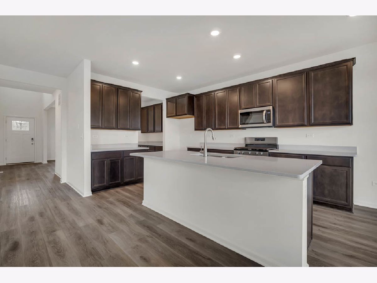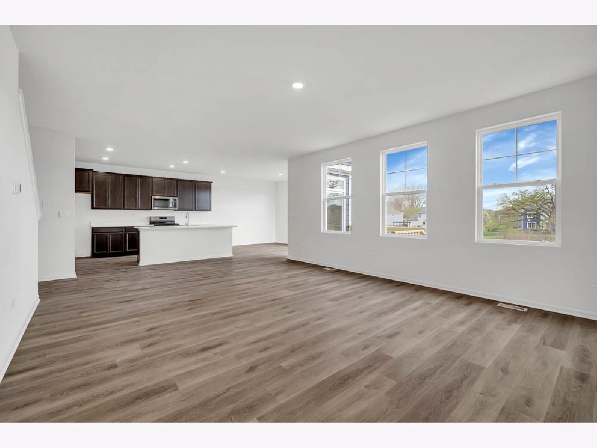 Discover yourself at 739 Kentshire Circle in Elgin, Illinois, a beautiful new home in our Highland Woods community. This home is ready for a quick move in! This large, scenic homesite includes a front porch with railings and fully sodded yard and Look out basement. This Emerson plan offers 3,044 square feet of living space with a flex room, 5 bedrooms, and 3 baths. As you enter the home you are greeted by a 2- story entry way and 9-foot ceilings throughout the first floor. This home features a versatile flex room that offers limitless potential for use. The room includes a convenient pass-through leading to a butler's pantry and walk-in pantry, providing ample storage. Entertaining will be easy in this open-concept kitchen and family room layout with a large island with an overhang for stools, 42-inch designer flagstone cabinetry with crown molding and soft close drawers and doors. Additionally, the kitchen features modern stainless-steel appliances, quartz countertops, and easy-to-maintain luxury vinyl plank flooring. On the main level you will also enjoy a bedroom with adjacent full bathroom, a perfect space for out-of-town guests or multi-generational living. The Emerson plan also features a full basement and a 3-car garage which provides ample storage for the entire home. More flexible space is waiting upstairs in the 2nd floor loft. The main bedroom suite has a large walk-in closet and private bath featuring a raised dual bowl vanity, luxury vinyl plank floors, quartz vanity top, large shower with tiled walls, and a linen closet. Convenient walk-in laundry room, 3 additional bedrooms with a full second bath and a linen closet complete the second floor. All Chicago homes include our America's Smart Home Technology, featuring a smart video doorbell, smart Honeywell thermostat, Amazon Echo Pop, smart door lock, Deako smart light switches and more. All our homes include a tankless hot water heater which provides continuous hot water for your family and an ERV furnace system that circulates fresh air into your home. Photos are of similar home and model home. Actual home built may vary.