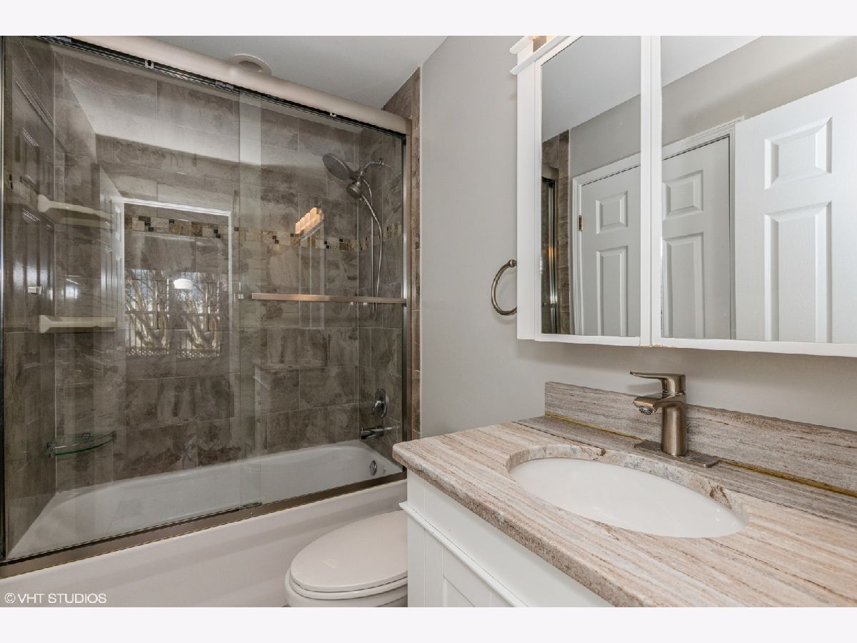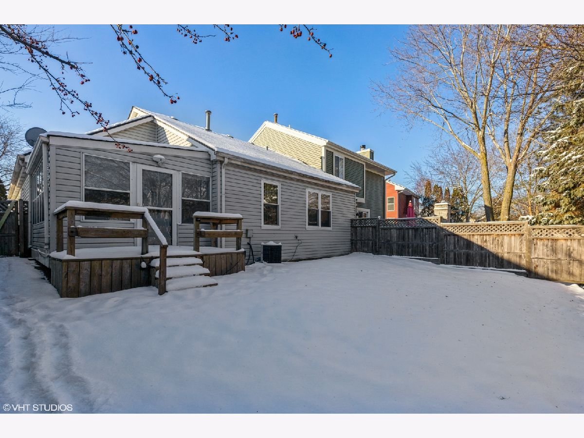 Why rent when you can own this fabulous duplex with terrific location in sought after neighborhood and no association fee! So many updates made by current homeowners - Entire home freshly painted in soft, neutral colors (2021), completely remodeled kitchen (2019) with all new appliances, new cabinets, new counters, new backsplash & new floors, new washer & dryer (2019), completely remodeled master bath (2018), all new windows (2017), new furnace (2015), new hot water heater (2015), new walk-in closet in master bedroom with custom organizer, new sliding patio door, fenced yard, and so much more! Home boasts skylights for loads of natural light, and bright, open floor plan. Wonderful sunroom with new carpet (2021) with access to deck and beautiful fenced yard. Two climate controlled large attics perfect for additional storage! Walk to neighborhood park, tennis courts, and bike paths. All award-wining Vernon Hills schools.