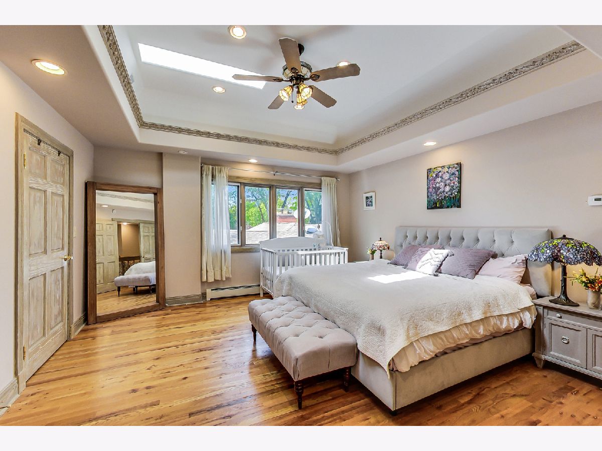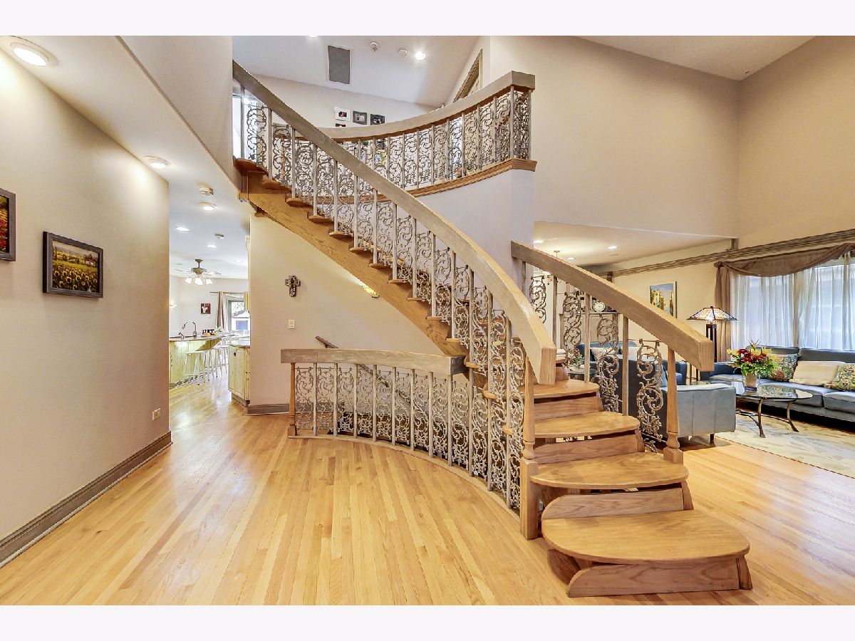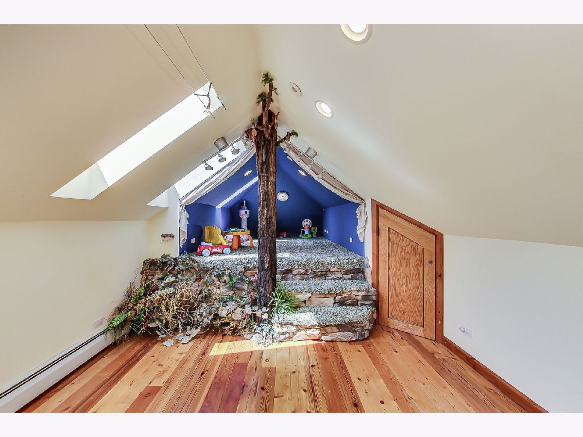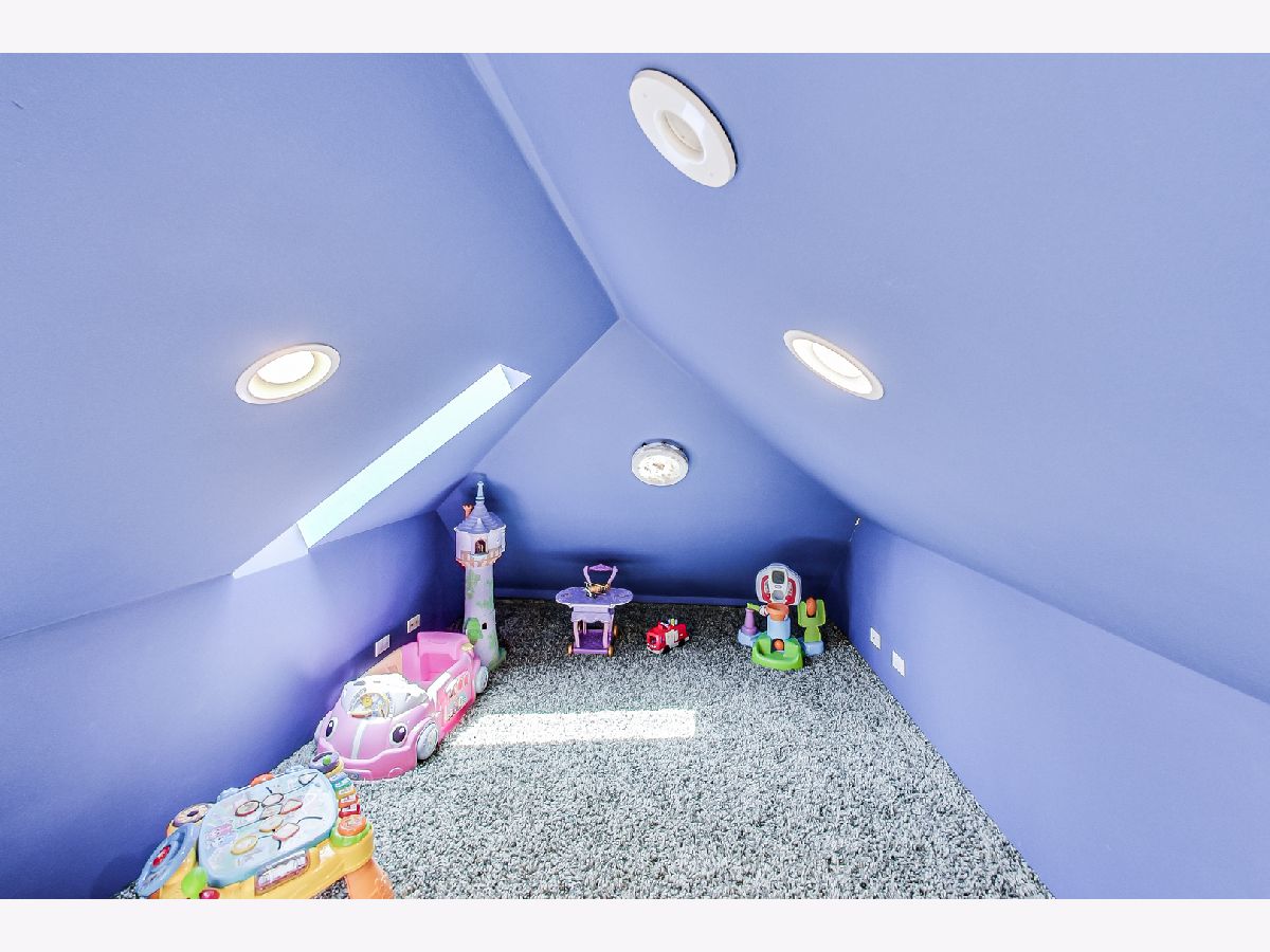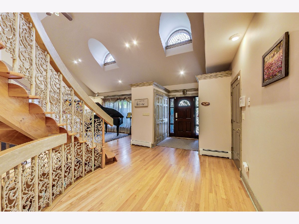Luxurious, large 4 bed/4.5 bath home beautifully designed and built by a previous architect owner, using only top-quality finishes. This fabulous home has cathedral ceilings, multiple bright skylights (flooded with natural light), tiffany glass windows, and hardwood floors throughout. The first floor features a large living room, a kitchen/dining area, a family room, 2 bathrooms, and a bedroom, perfect for guest/in-law (currently being used as a home office). The family room comes with a wood burning fireplace adjacent to the patio door that leads to a beautifully landscaped backyard with a brand new deck. The first floor has surround sound systems throughout. The kitchen has custom carved European-style cabinets with granite/marble countertops and backsplash. The staircases leading to the second floor are custom made and elegantly designed to curve upwards. The second floor features three bedrooms, each with a spacious walk-in closet and skylight, plus additional storage spaces. The master bedroom has vaulted ceilings surrounded by carved floral moulding, an en-suite bathroom with a separate shower and tub, his/her vanity. One bedroom has a staircase that leads to a finished spacious loft/attic, currently used as a workout area and a playroom. The lower level adds an additional 1375 sq ft to the already large living space. The beautiful hand-carved wood staircase leading to the finished full basement was made by a European artisan. The basement has a stone floor throughout, a granite countertop wet bar, a spacious recreation zone with a built-in home theater, a full bathroom, a laundry room, additional storage area, and a den with a walk out door to the backyard. This stunning home has a multiple-zone heating and cooling system: basement, first floor, second floor, attic/loft, and garage (heater only). 2.5 car tandem garage. All interior doors are custom-made and finished with multiple layers to create a unique look. Exceptional quality and move in ready. Fantastic location: Near Metra, highways, airport, Maine Park, forest preserves, Oakton Golf Center, and award-winning schools. **Please check out the 3D tour and floor plan.**