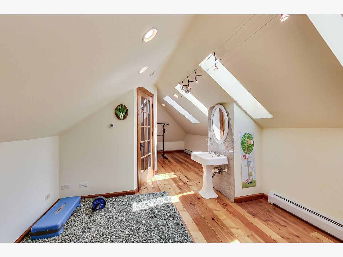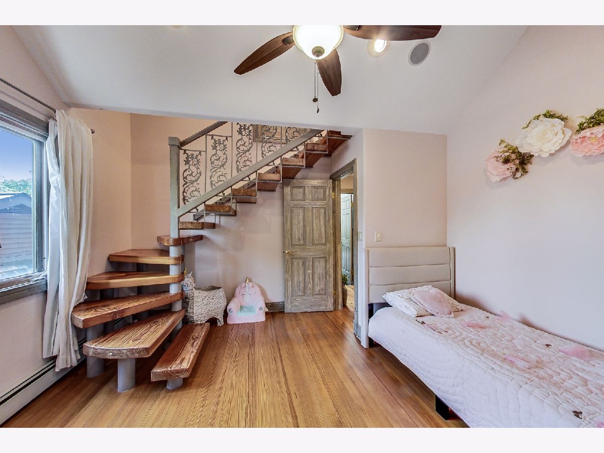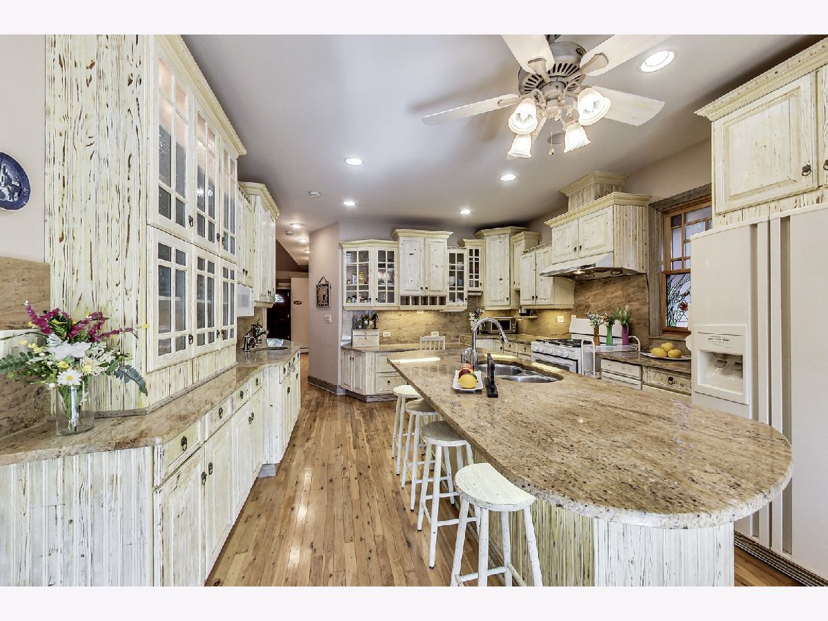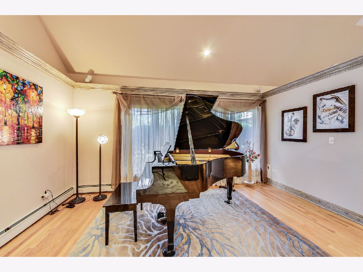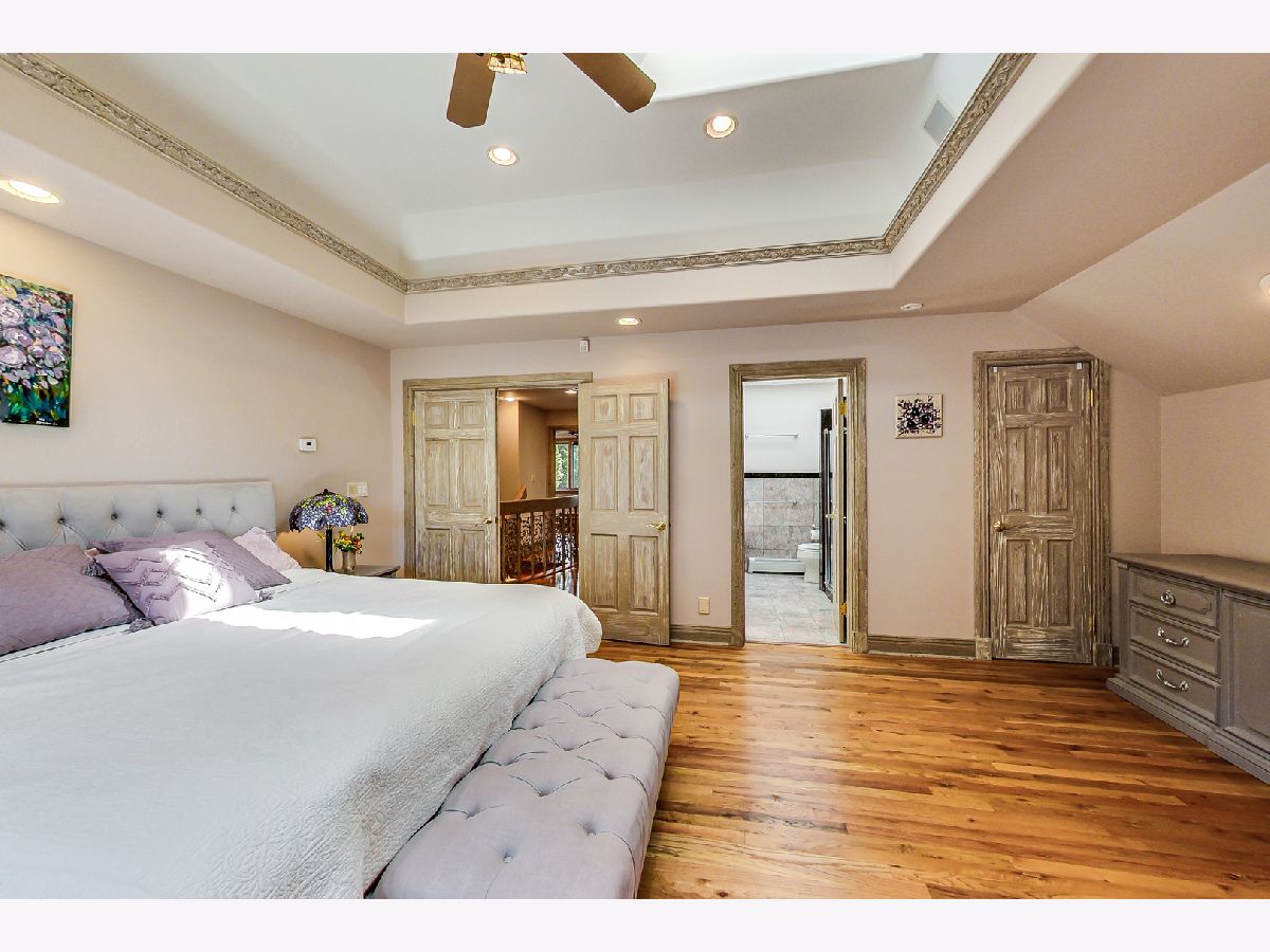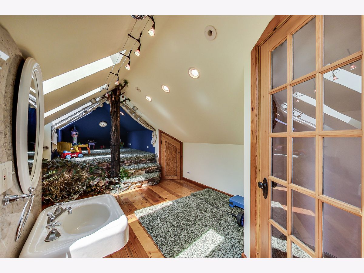 Luxurious, large 4 bed/4.5 bath home beautifully designed and built by a previous architect owner, using only top-quality finishes. This fabulous home has cathedral ceilings, multiple bright skylights (flooded with natural light), tiffany glass windows, and hardwood floors throughout. The first floor features a large living room, a kitchen/dining area, a family room, 2 bathrooms, and a bedroom, perfect for guest/in-law (currently being used as a home office). The family room comes with a wood burning fireplace adjacent to the patio door that leads to a beautifully landscaped backyard with a brand new deck. The first floor has surround sound systems throughout. The kitchen has custom carved European-style cabinets with granite/marble countertops and backsplash. The staircases leading to the second floor are custom made and elegantly designed to curve upwards. The second floor features three bedrooms, each with a spacious walk-in closet and skylight, plus additional storage spaces. The master bedroom has vaulted ceilings surrounded by carved floral moulding, an en-suite bathroom with a separate shower and tub, his/her vanity. One bedroom has a staircase that leads to a finished spacious loft/attic, currently used as a workout area and a playroom. The lower level adds an additional 1375 sq ft to the already large living space. The beautiful hand-carved wood staircase leading to the finished full basement was made by a European artisan. The basement has a stone floor throughout, a granite countertop wet bar, a spacious recreation zone with a built-in home theater, a full bathroom, a laundry room, additional storage area, and a den with a walk out door to the backyard. This stunning home has a multiple-zone heating and cooling system: basement, first floor, second floor, attic/loft, and garage (heater only). 2.5 car tandem garage. All interior doors are custom-made and finished with multiple layers to create a unique look. Exceptional quality and move in ready. Fantastic location: Near Metra, highways, airport, Maine Park, forest preserves, Oakton Golf Center, and award-winning schools. **Please check out the 3D tour and floor plan.**