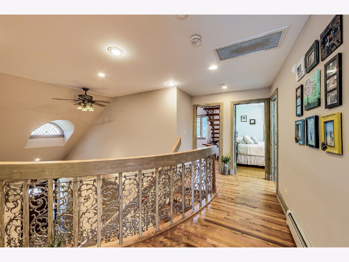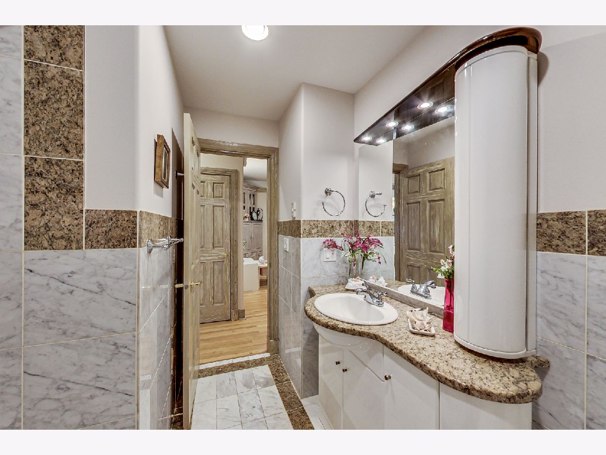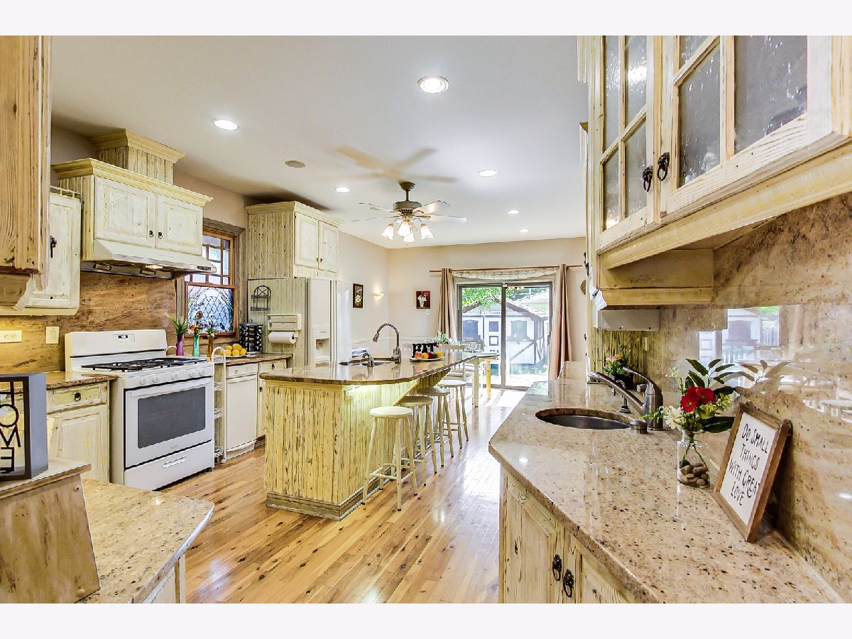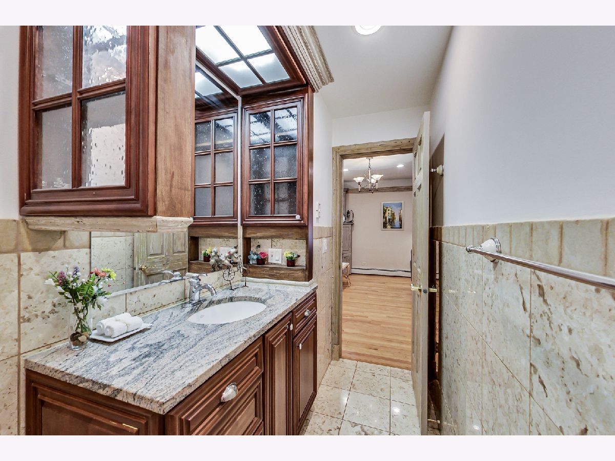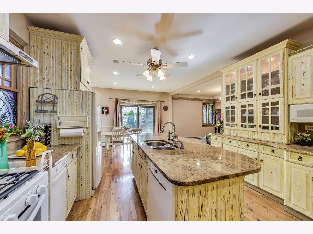Luxurious, large 4 bed/4.5 bath home beautifully designed and built by a previous architect owner, using only top-quality finishes. This fabulous home has cathedral ceilings, multiple bright skylights (flooded with natural light), tiffany glass windows, and hardwood floors throughout. The first floor features a large living room, a kitchen/dining area, a family room, 2 bathrooms, and a bedroom, perfect for guest/in-law (currently being used as a home office). The family room comes with a wood burning fireplace adjacent to the patio door that leads to a beautifully landscaped backyard with a brand new deck. The first floor has surround sound systems throughout. The kitchen has custom carved European-style cabinets with granite/marble countertops and backsplash. The staircases leading to the second floor are custom made and elegantly designed to curve upwards. The second floor features three bedrooms, each with a spacious walk-in closet and skylight, plus additional storage spaces. The master bedroom has vaulted ceilings surrounded by carved floral moulding, an en-suite bathroom with a separate shower and tub, his/her vanity. One bedroom has a staircase that leads to a finished spacious loft/attic, currently used as a workout area and a playroom. The lower level adds an additional 1375 sq ft to the already large living space. The beautiful hand-carved wood staircase leading to the finished full basement was made by a European artisan. The basement has a stone floor throughout, a granite countertop wet bar, a spacious recreation zone with a built-in home theater, a full bathroom, a laundry room, additional storage area, and a den with a walk out door to the backyard. This stunning home has a multiple-zone heating and cooling system: basement, first floor, second floor, attic/loft, and garage (heater only). 2.5 car tandem garage. All interior doors are custom-made and finished with multiple layers to create a unique look. Exceptional quality and move in ready. Fantastic location: Near Metra, highways, airport, Maine Park, forest preserves, Oakton Golf Center, and award-winning schools. **Please check out the 3D tour and floor plan.**