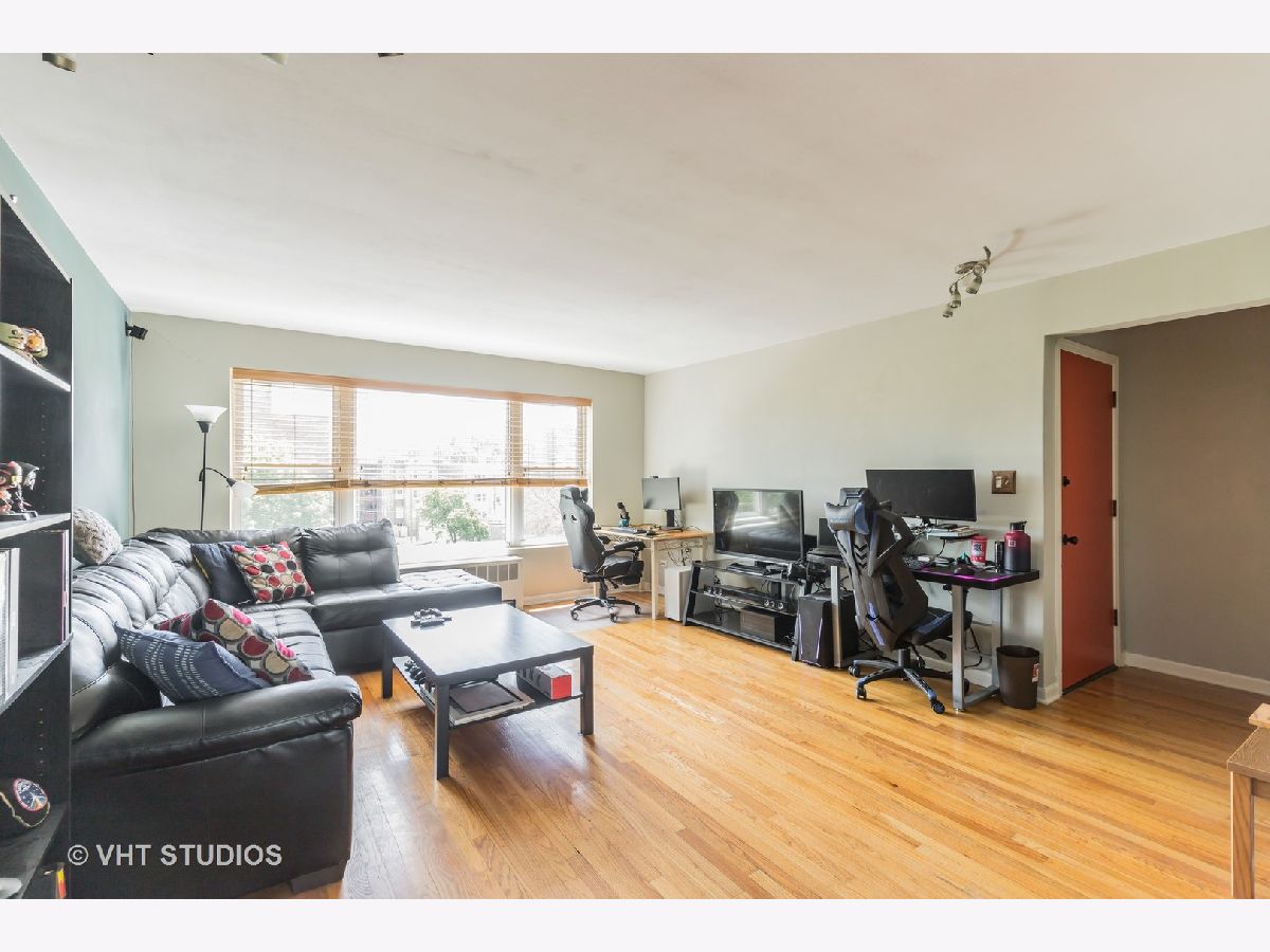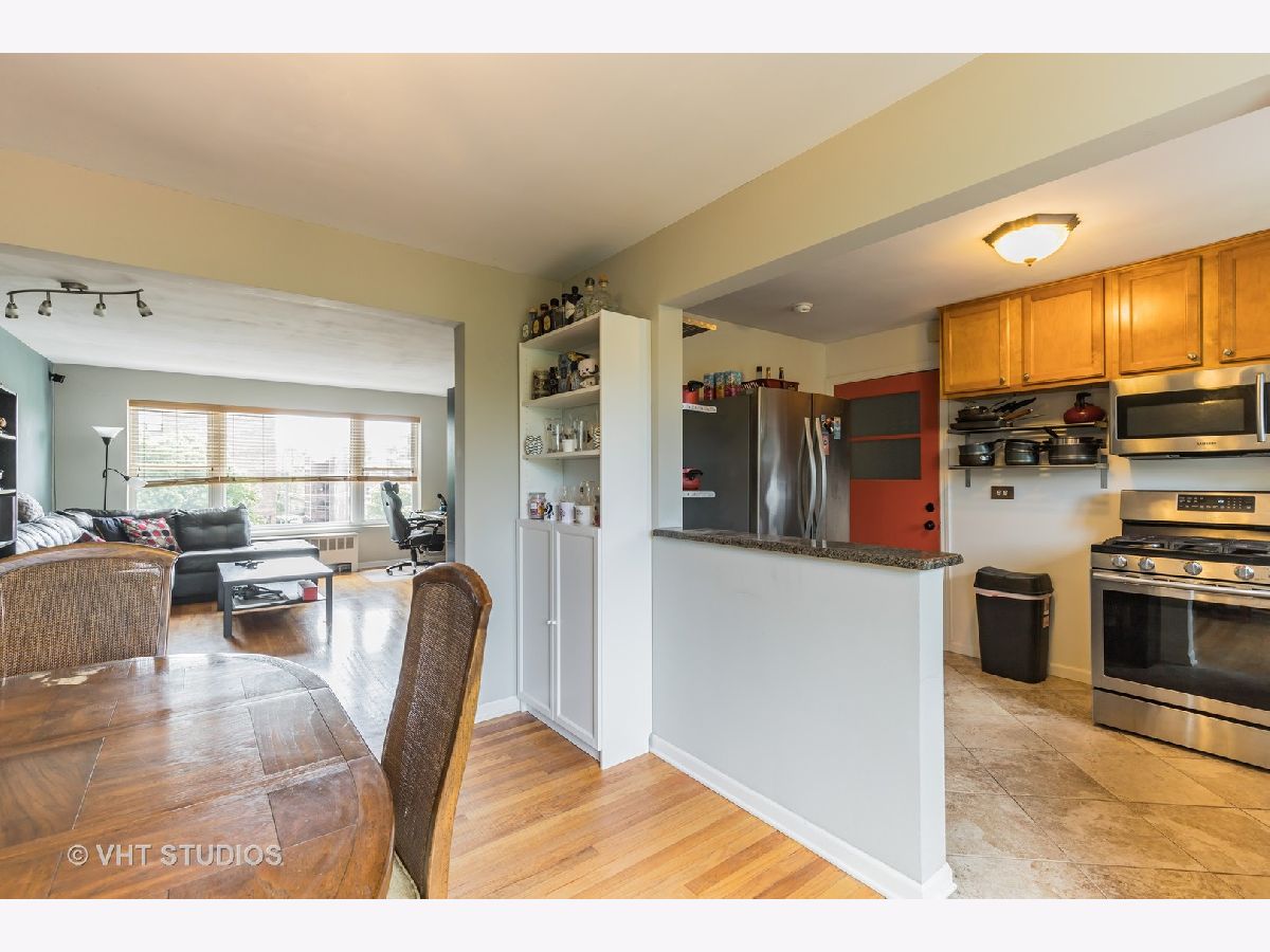 City living at its best! Light filled top floor corner unit sitting among the trees and offering unobstructed views from all rooms. This adorable 2 bedroom 1 bath condo is move in ready! Great layout with hardwood flooring throughout. Spacious living room, separate dining room and open to the kitchen. Comfortable open floorplan but still a warm and cozy space. Nice kitchen with great use of space with granite counters and newer stainless steel appliances. Bathroom was updated with new vanity, medicine cabinet and fixture. Heat is included in the assessment with laundry and storage on site. Well run building with newer windows and roof. Convenient location just 2 blocks from the Jarvis Redline stop and Jarvis square and 1 block west of the lake! Garage parking available for $130. per month just one block away on Sheridan.