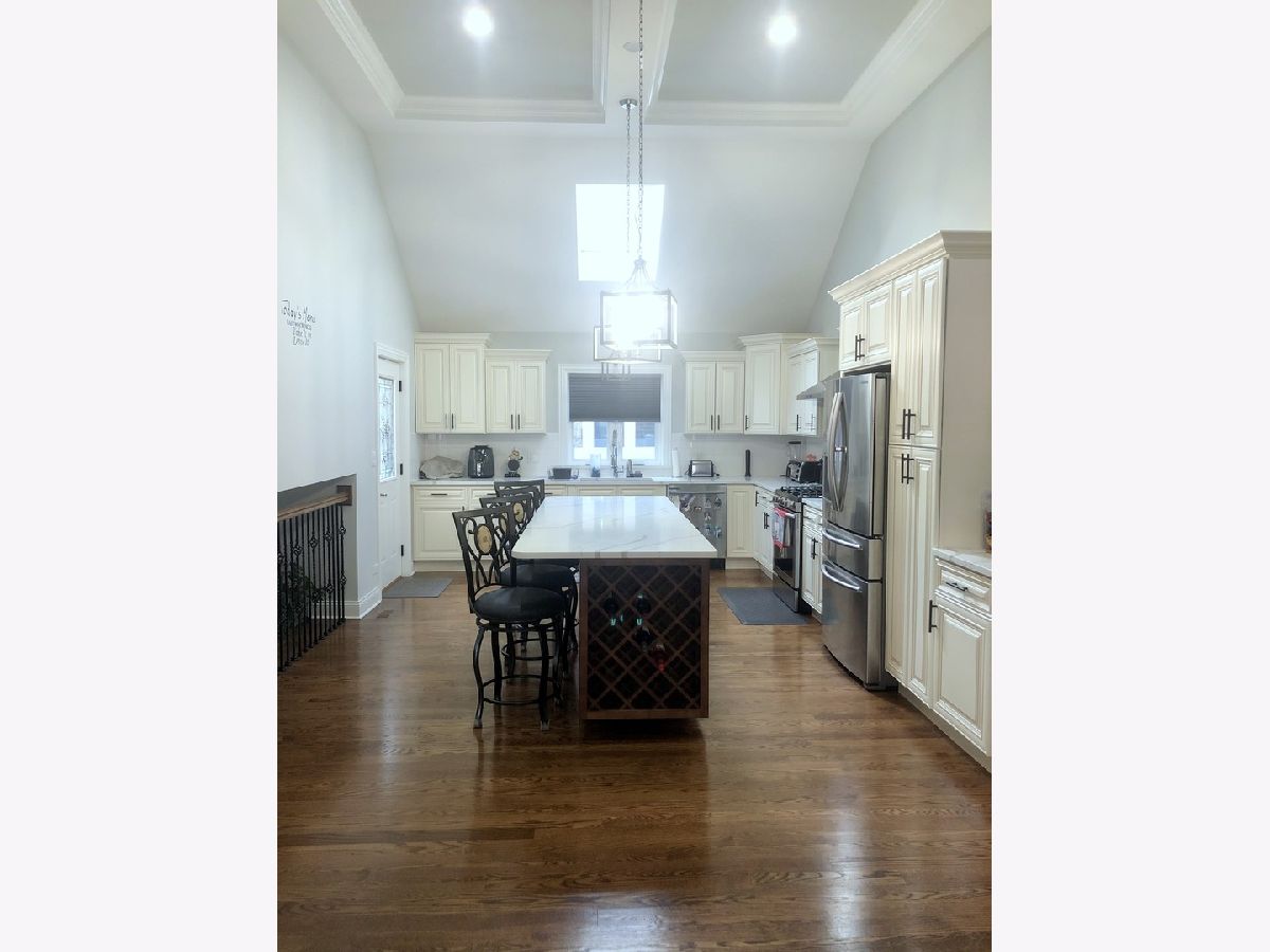 Wow! Discover this beautiful New Construction 4 bedroom 3 bath split-level Home with attached 2-Car Garage on Wide Double Lot with Private Driveway! You will love the Modern open floor plan featuring Hardwood floors and towering Cathedral Ceilings; with beautifully crafted custom molding throughout. Designer kitchen features custom cabinets, Stainless Steel appliances, and incredible coffered ceiling with Skylight. The modern quartz island overlooks a formal dining room and lower level family room with fireplace - creating the perfect space for entertaining. Lots of windows bring in tons of natural light. The Master bedroom has walk-in closet with Custom remote control window treatments and attached bathroom suite features designer finishes and huge shower with rain shower head guaranteed to make this your relaxation sanctuary. 2nd and 3rd bedrooms located on upper level, while 4th bedroom is conveniently located on lower level which would also make this the prefect Office Work Space. Large open back yard with brand New Vinyl Privacy Fence, brick paver patio and shed. Closets have custom closet organizers. Additional upgrades include custom 2-Car Screened Doorway creating exterior entertaining area! Storage Galore above the Garage and in Lower Level. Must see to appreciate! Easy access to Metra station and I-294. Easy to show.