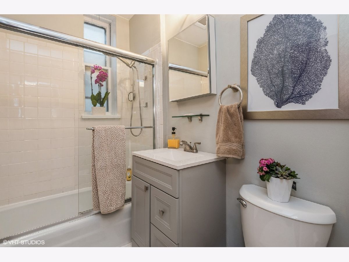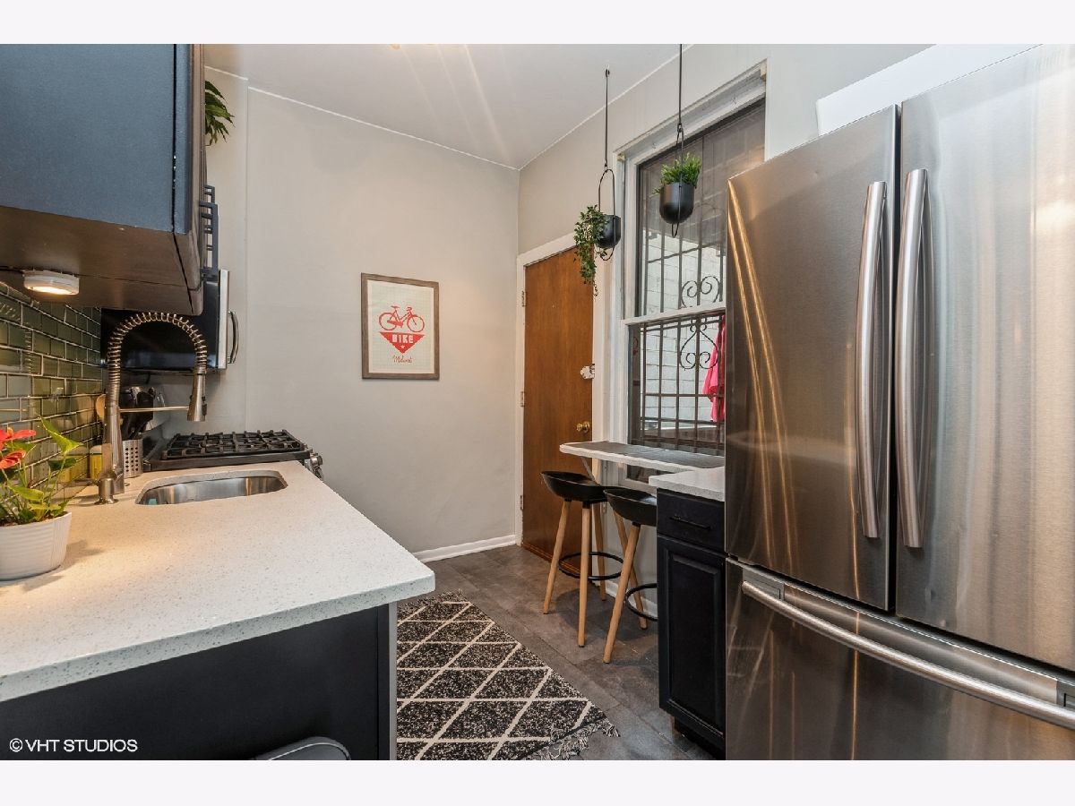 Beautiful two bedroom vintage home with modern kitchen boasting white quartz countertops, stainless steel appliances, elegant glass backsplash and under mount sink. Enjoy morning coffee at the eating bar overlooking the deck. In the heart of Lakeview steps from shopping, nightlife and transportation. Unit features 9ft ceilings, Wood burning fireplace, hardwood floors, on site laundry and maintenance, porch area and intercom security. Located near Belmont and Halsted