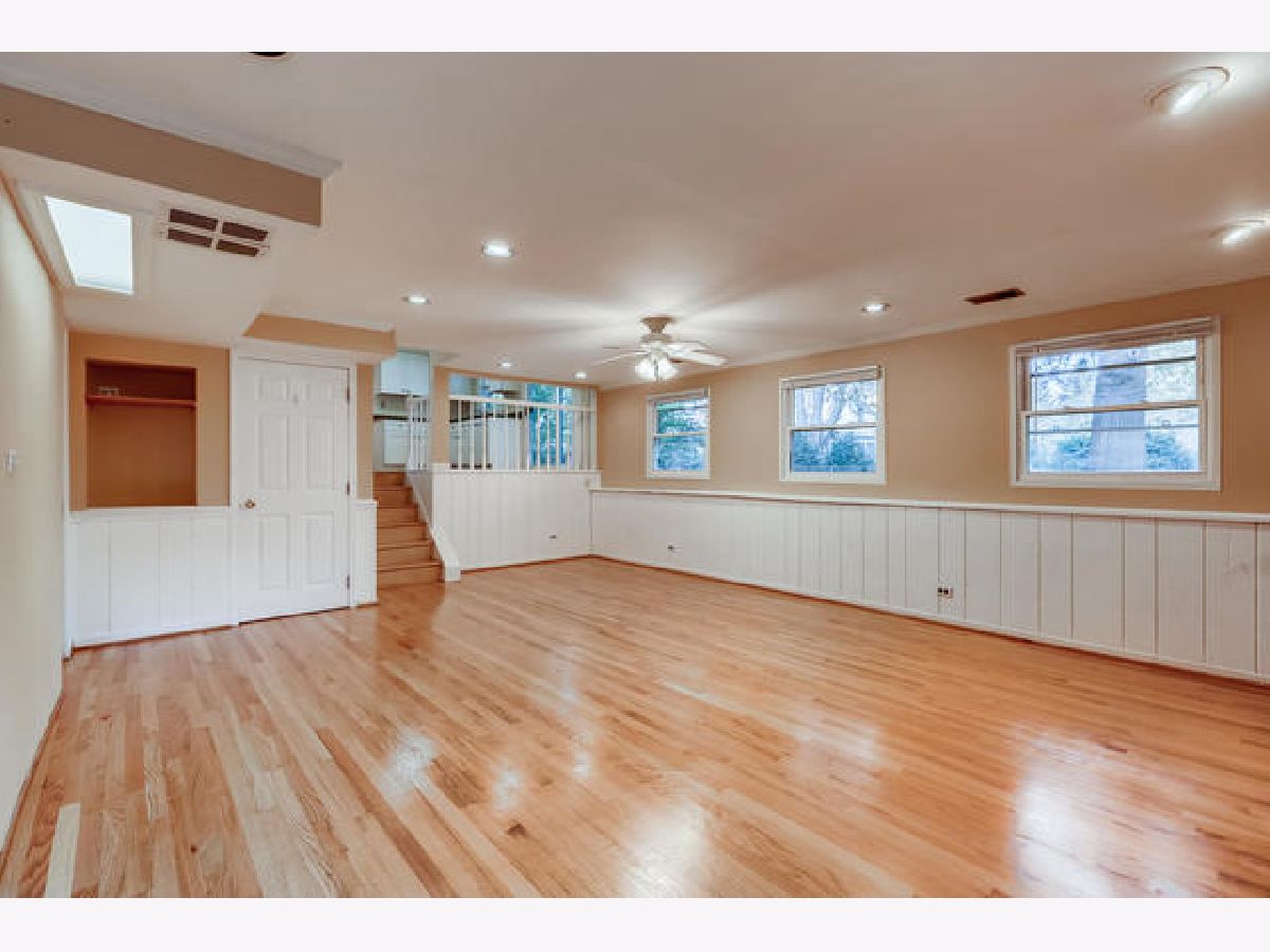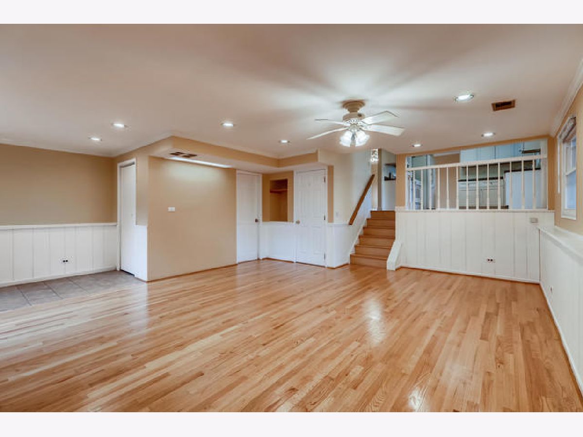 Excellent split level home with finished sub basement set on a fenced landscaped lot. Hardwood floors throughout. Redone kitchen white cabs and Overlooks lower level family room. Brick wood burning fireplace. Entrance to 2 car gar. Blinds, ceiling fans and recessed lites thru out. Newly painted light and bright. Updated baths. Rec rm w/ tons of storage. Great area & home in the great Stevenson High school district.